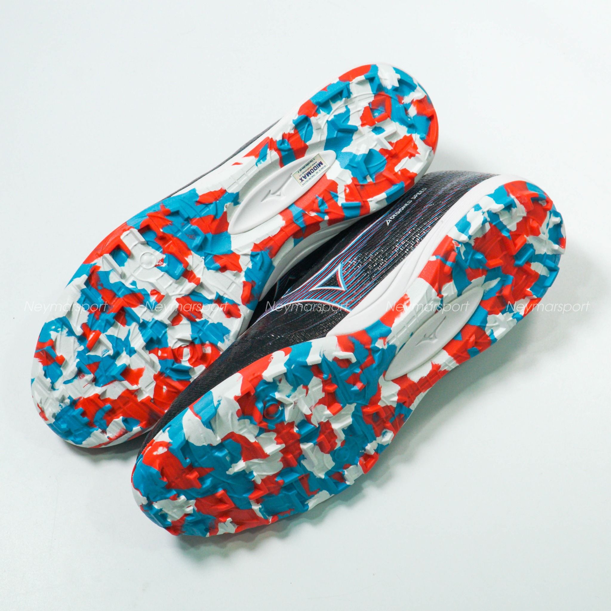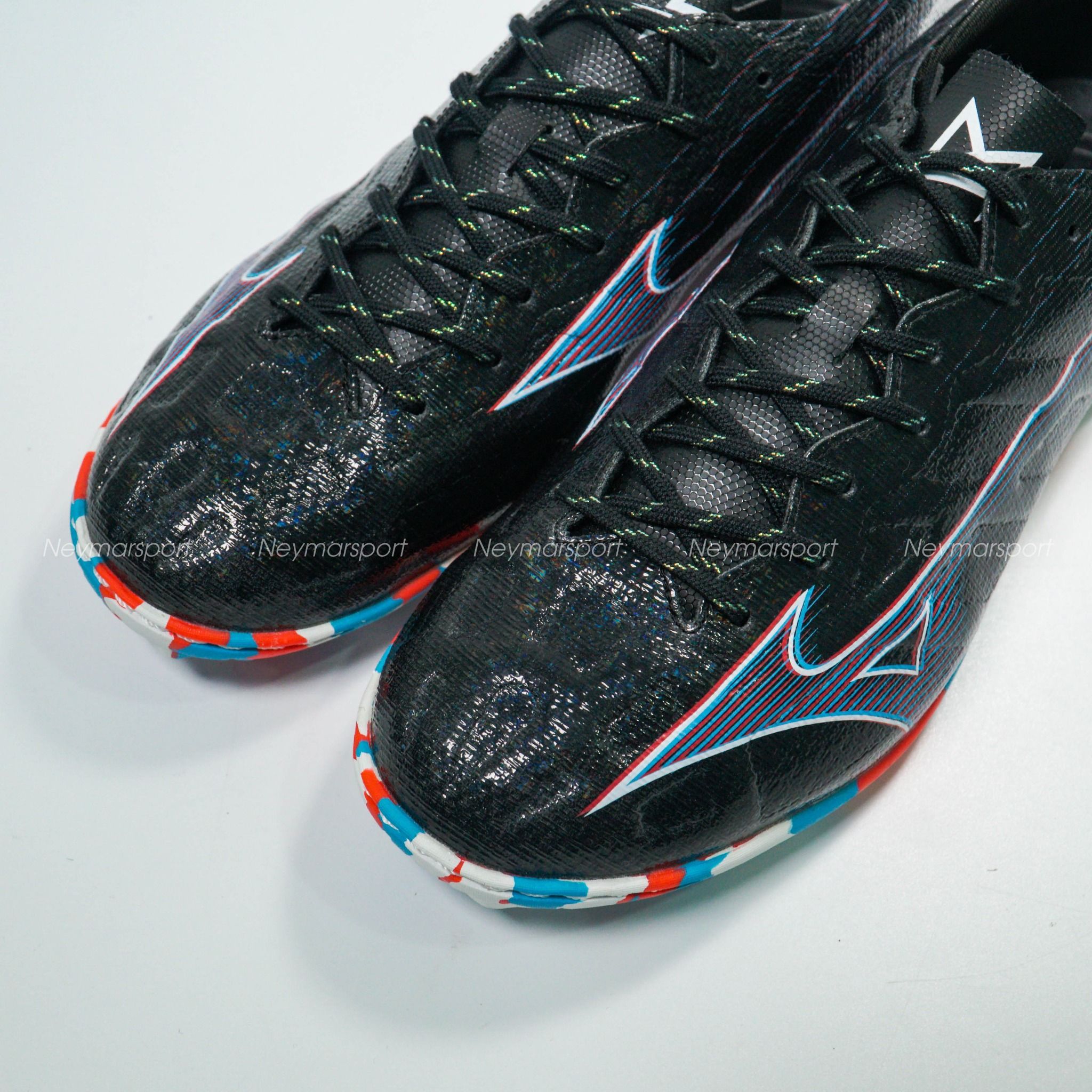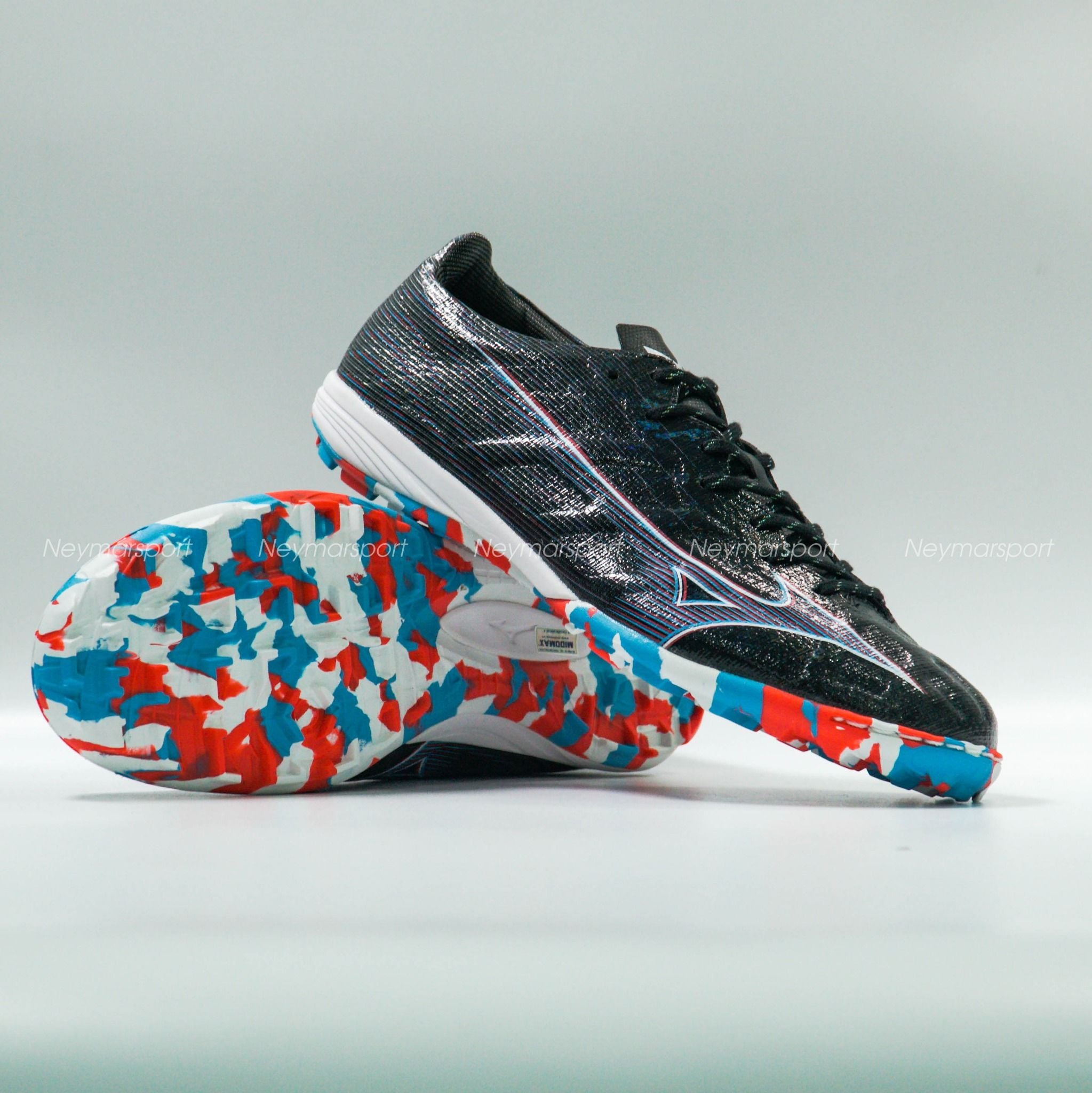Mẫu giày đá bóng Mizuno Alpha lần này được phối bởi các gam màu Black/Purple/Red. Trên nền màu đen, logo của Mizuno được làm nổi bật bởi sự kết hợp màu tím và màu trắng, sau đó sử dụng đồ họa để phổ ra các vệt màu nhạt chạy dần về phía gót giày. Thiết kế độc đáo này mang đến cảm giác tốc độ sẵn sàng bùng nổ trong những đường chạy bóng bứt phá.