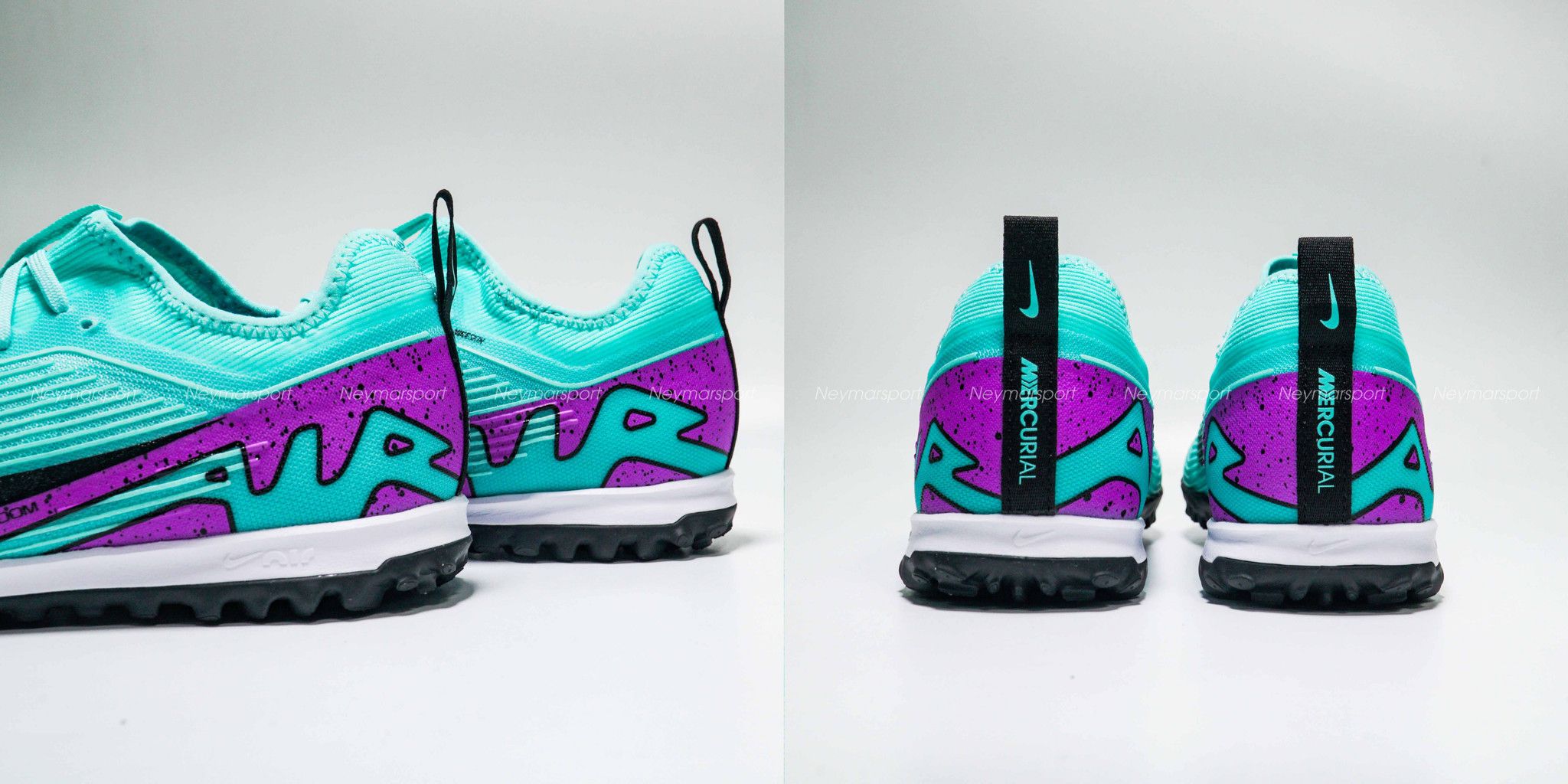 Nike Air Zoom Mercurial Vapor 15 Pro TF Peak Ready - Hyper Turq/Fuchia Dream Black/White là mẫu giày cao cấp dành cho sân cỏ nhân taọ 5-7 người. Nike Air Zoom Mercurial Vapor 15 Pro TF Peak Ready sở hữu gam màu xanh nổi bật kết hợp cùng biểu tượng Swoosh màu đen, các điểm nhấn màu tím trên thân giày và mặt đế làm nổi bật công nghệ Air Zoom, tạo nên vẻ đẹp độc đáo và cuốn hút, khiến cho đôi giày trở thành tâm điểm chú ý trên sân cỏ.