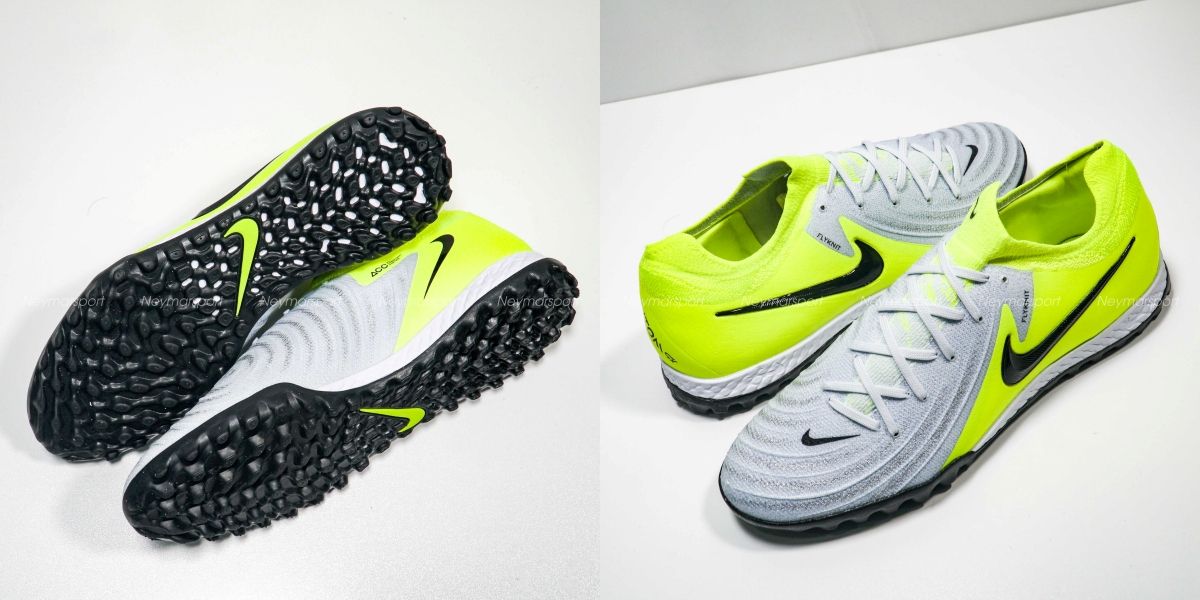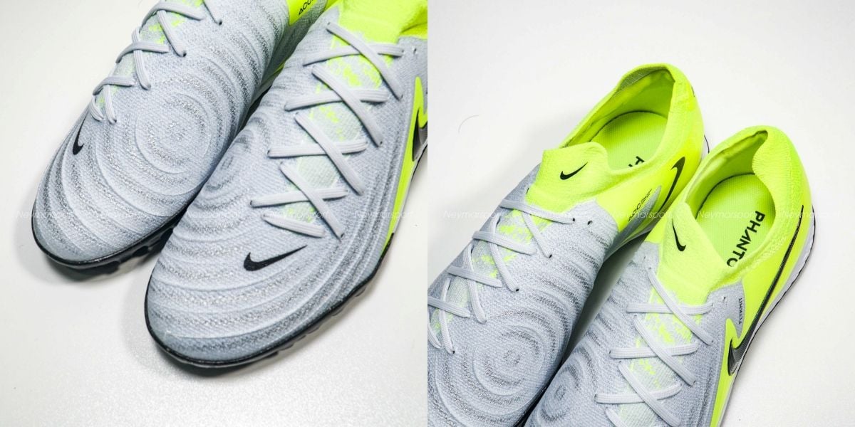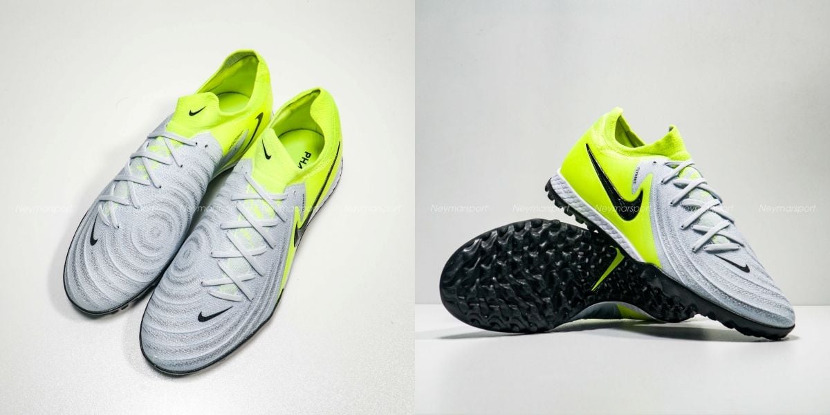 Giày đá bóng Nike Phantom GX II Pro TF Mad Voltage - Metallic Silver/Black/Volt FJ2583-003 là mẫu giày phân khúc cao cấp dành cho mặt sân cỏ nhân tạo 5-7 người. Màu bạc được sử dụng ở phần mũi giày nhằm làm nổi bật phần upper xoắn ốc, trong khi gót giày được bao phủ bằng màu vàng volt đầy năng lượng giúp tạo nên điểm nhấn nổi bật. Và cuối cùng, logo Swoosh với sắc đen tương phản càng làm đôi giày thêm ấn tượng.