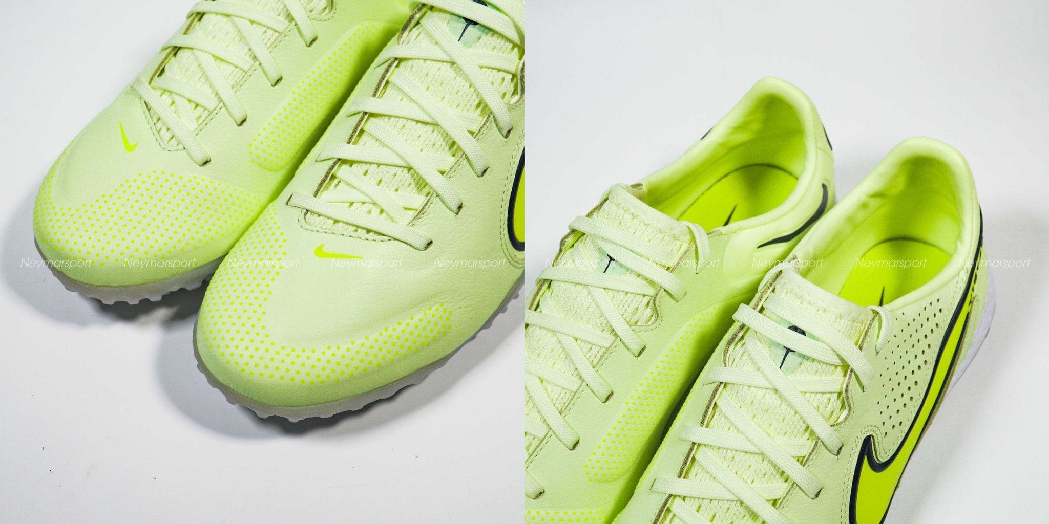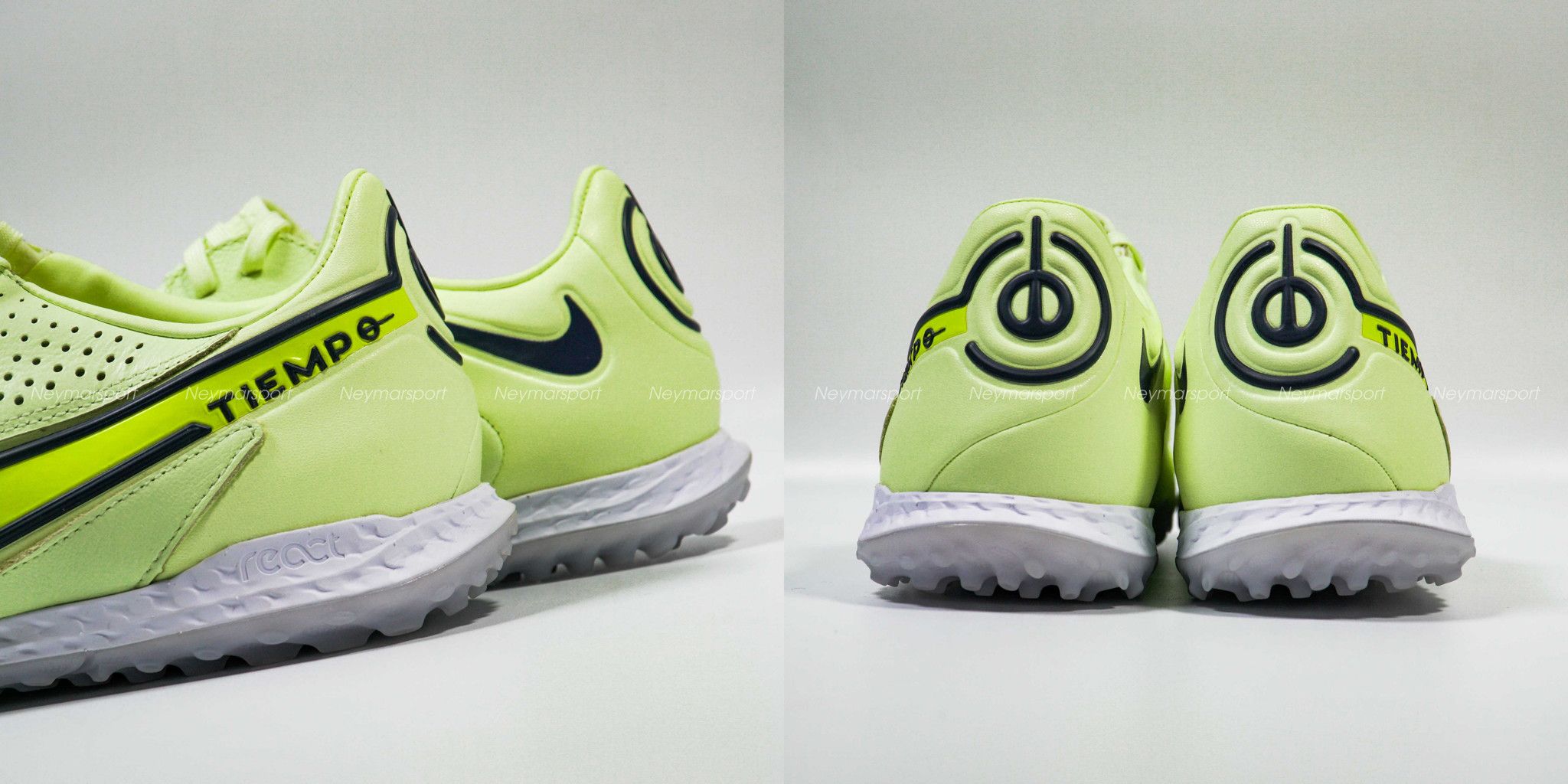 Nike Tiempo React Legend 9 Pro TF Luminous - Barely Volt/Volt/Summit White là mẫu giày cao cấp dành cho sân cỏ nhân taọ 5-7 người. Tiempo là dòng sản phẩm da tự nhiên duy nhất của nhà NIKE, phù hợp cho các vị trí thiên về kiểm soát và chuyền bóng như trung vệ, tiền vệ trung tâm. Phiên bản giày đá banh Tiempo Legend IX không pha lẫn màu sắc nổi bật nào khác, giao diện của silo hoàn toàn là một màu xanh volt tươi mát, Nike chỉ sử dụng màu đen và một màu xanh lục đậm hơn trên Swoosh để tạo điểm nhấn.