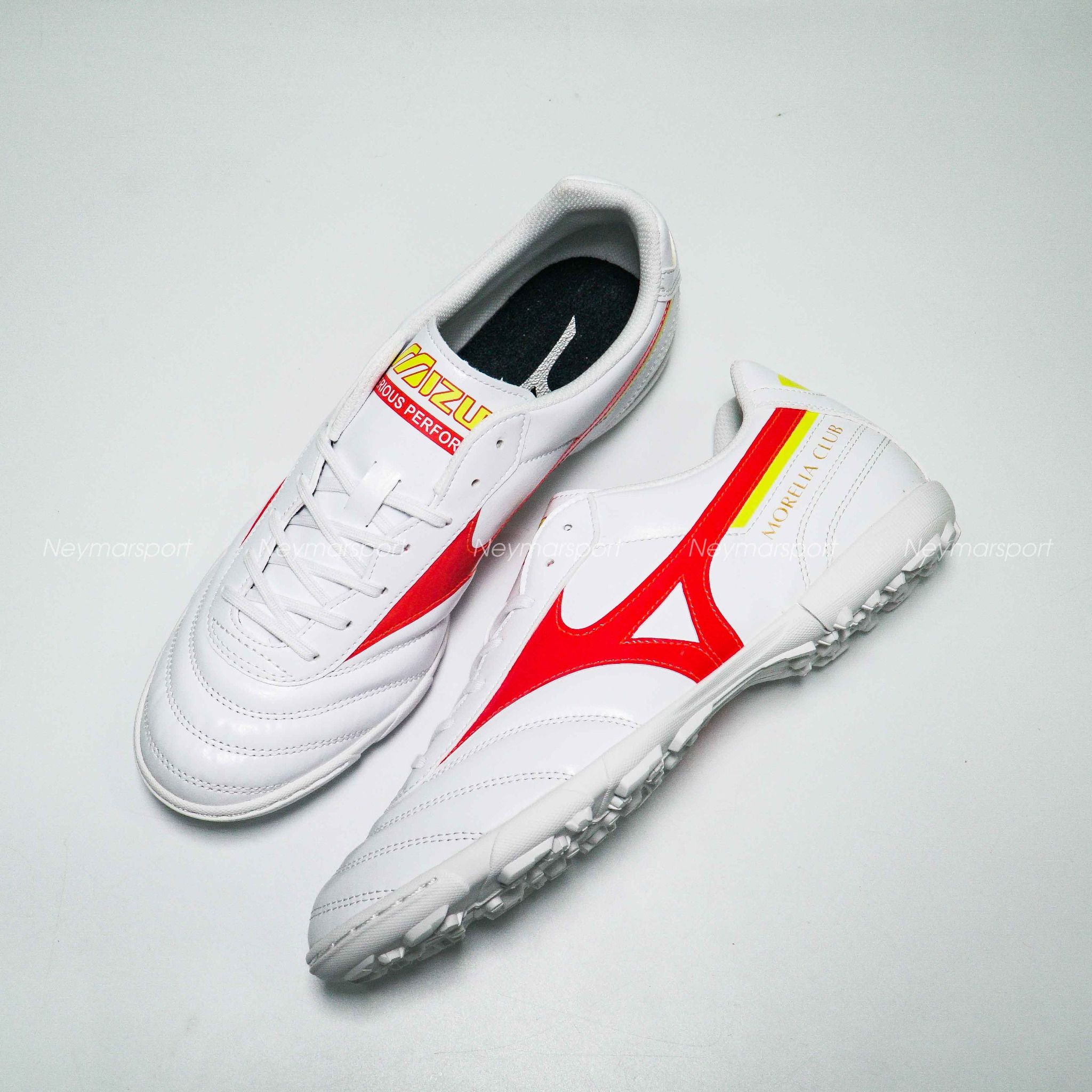 Mizuno Morelia II Club AS TF - White/Red/Yellow là mẫu giày phổ thông dành cho mặt sân cỏ nhân tạo 5-7 người. Với thiết kế truyền thống kết hợp những hoạ tiết hiện đại, Morelia II Club AS thực sự là một lựa chọn ấn tượng trong phân khúc tầm trung. Nếu bạn đang tìm kiếm một mẫu giày bóng đá sân cỏ nhân tạo có sự bền bỉ, chắc chắn và có mức giá hợp lý thì Morelia II Club AS chính là mẫu giày dành cho bạn.