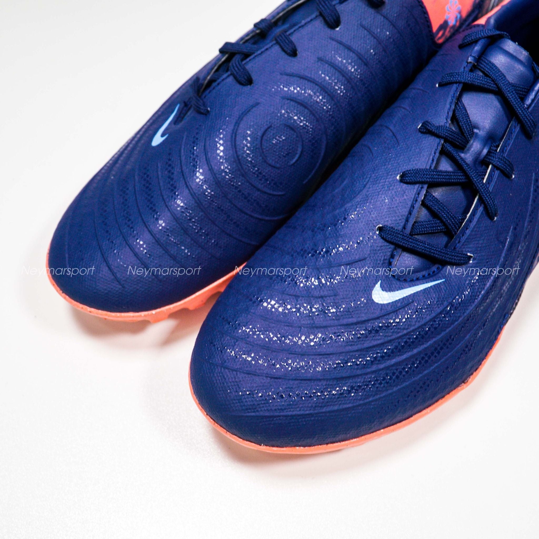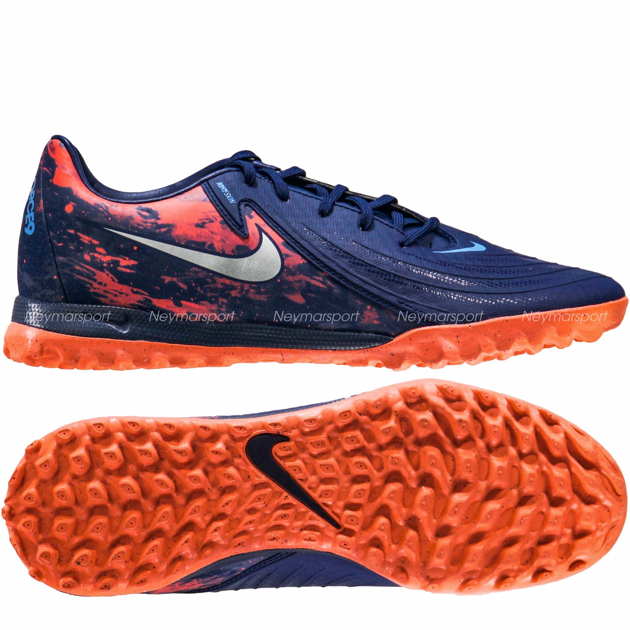 Giày đá bóng Nike Phantom GX II Academy TF Erling Haaland Personal Edition - Blue Void/Chrome LIMITED EDITION HV4069-400 là phiên bản phổ thông dành chuyên cho sân cỏ nhân tạo 5-7 người. Phiên bản Phantom GX 2 Haaland 2025 sở hữu phối màu "Blue Void/Chrome" đầy mê hoặc. Sắc xanh biển đậm ("Blue Void") tượng trưng cho băng giá, kết hợp cùng các chi tiết màu chrome sáng bóng và điểm nhấn màu đỏ rực rỡ, tạo nên một tổng thể vừa mạnh mẽ, vừa tinh tế. Điểm nhấn đặc biệt nằm ở logo Swoosh chrome chuyển dần sang màu đỏ ở phần đuôi, cùng họa tiết "núi lửa" đỏ rực trên thân giày, lấy cảm hứng từ núi lửa Beerenberg – ngọn núi lửa đang hoạt động duy nhất tại Na Uy.