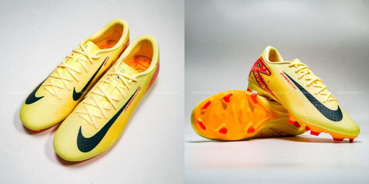 Giày đá bóng Nike Air Zoom Mercurial Vapor 16 Academy MG Mbappé Personal Edition - Laser Orange/Armory Navy FQ8377-800 là phiên bản giày phổ thông dành chuyên cho sân cỏ tự nhiên 11 người. Nike Mercurial Mbappe 2024-25 gây ấn tượng mạnh mẽ ngay từ cái nhìn đầu tiên với phối màu chủ đạo là cam sáng (Lt Laser Orange) kết hợp cùng các chi tiết màu xanh navy đậm (Armory Navy) đầy tinh tế. Sự kết hợp táo bạo này không chỉ mang đến vẻ ngoài nổi bật, thu hút mọi ánh nhìn trên sân cỏ mà còn thể hiện rõ cá tính mạnh mẽ, đầy tốc độ của Kylian Mbappé.