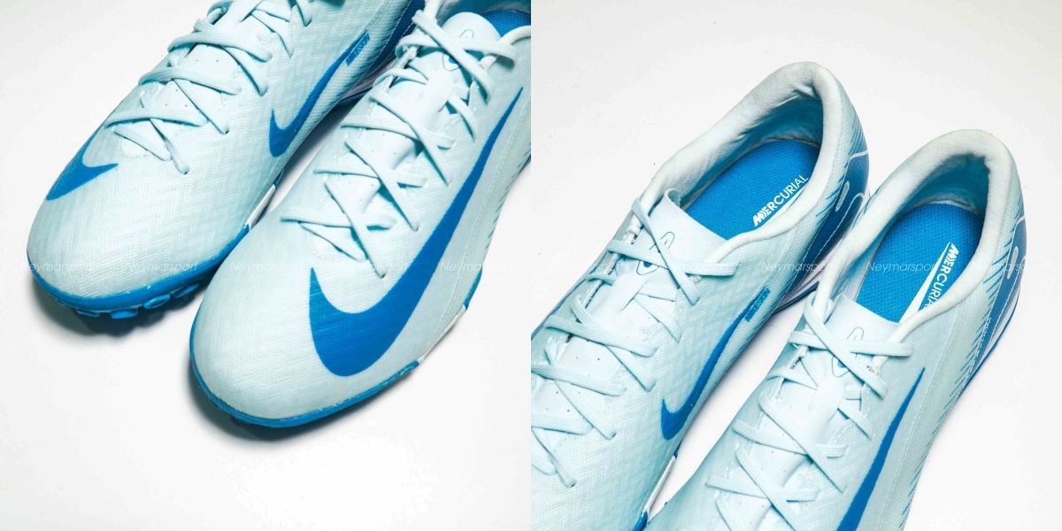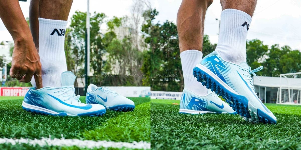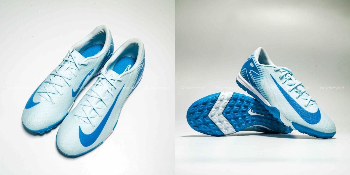 Giày đá bóng Nike Air Zoom Mercurial Vapor 16 Academy TF Mad Ambition - Glacier Blue/Blue Orbit FQ8449-400 là mẫu giày phổ thông dành cho sân cỏ nhân taọ 5-7 người. Giày đá bóng Nike Air Zoom Mercurial Vapor 16 Academy TF Mad Ambition - Glacier Blue/Blue Orbit FQ8449-400 được khoác lên mình màu "Glacier Blue/Blue Orbit", với gam xanh nhạt làm nền và điểm nhấn là gam xanh đậm trên logo Swoosh. Sự kết hợp này tạo nên một diện mạo thanh lịch, đồng thời tôn lên vẻ đẹp tinh tế của đôi giày.
