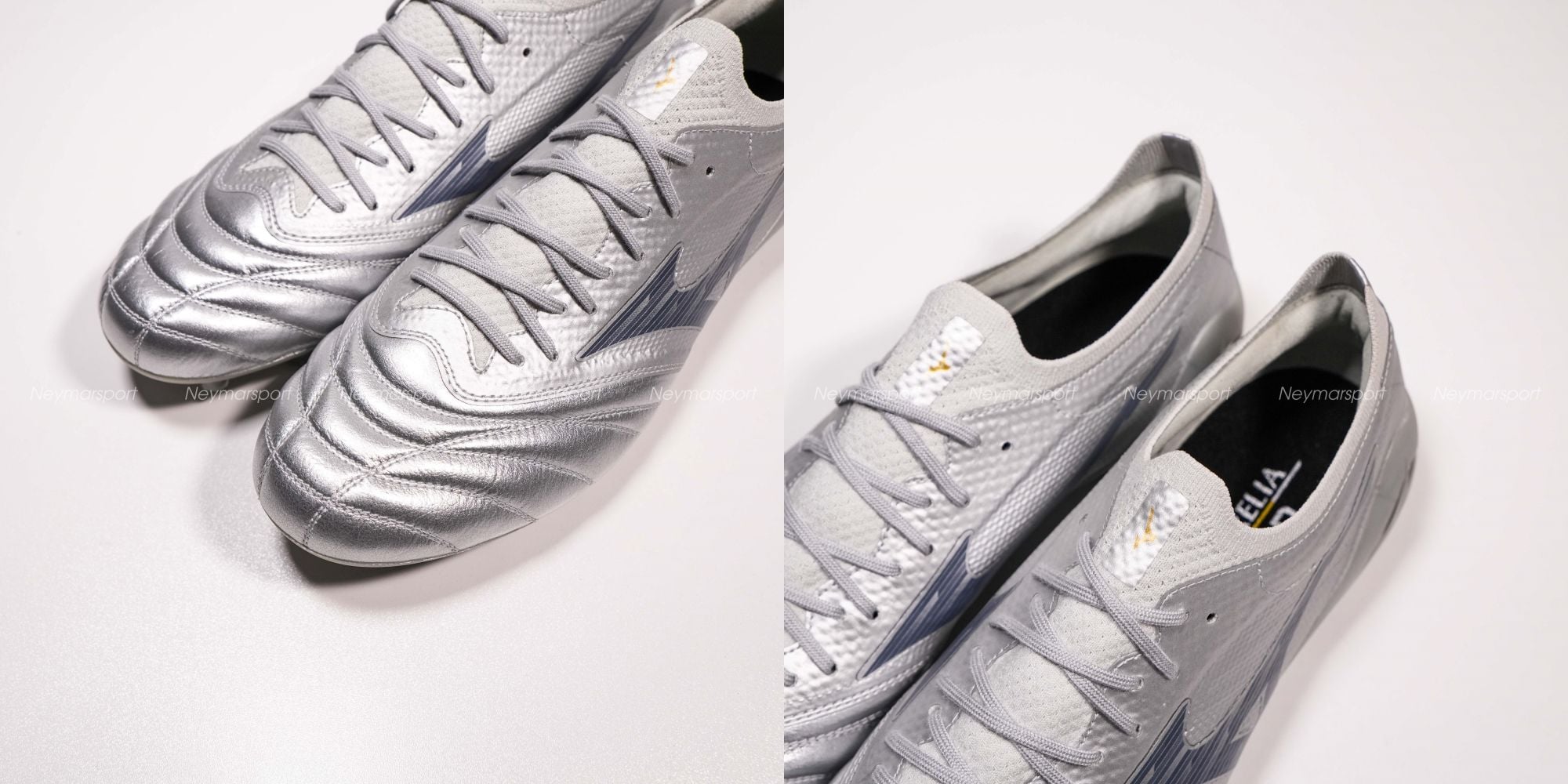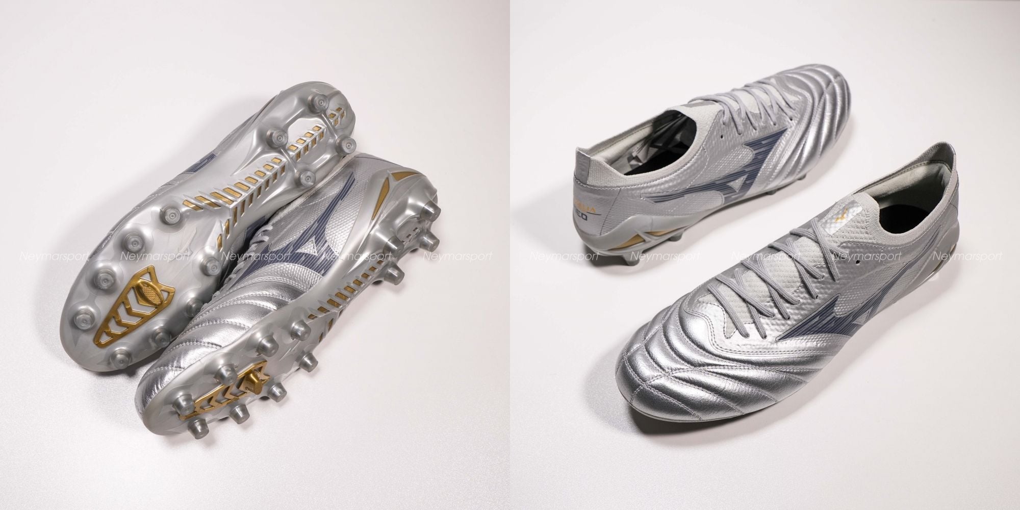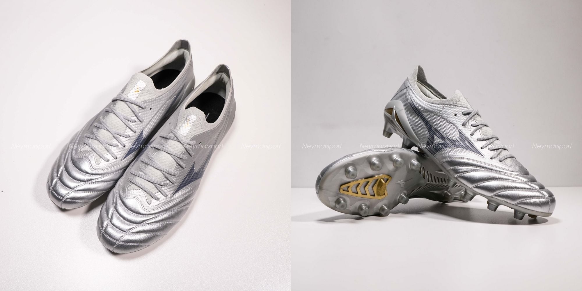 Sau màn ra mắt ấn tượng của Alpha II, Mizuno tiếp tục khuấy đảo thị trường giày đá bóng với bộ sưu tập "Platinum" đầy mê hoặc. Lấy cảm hứng từ vẻ đẹp sang trọng của kim loại quý, bộ sưu tập bao gồm ba mẫu giày nổi bật: Alpha II, Morelia Neo IV và Morelia DNA, tất cả đều được khoác lên mình lớp áo bạc bạch kim lấp lánh cùng những điểm nhấn vàng tinh tế, tạo nên vẻ ngoài vừa hiện đại vừa sang trọng.