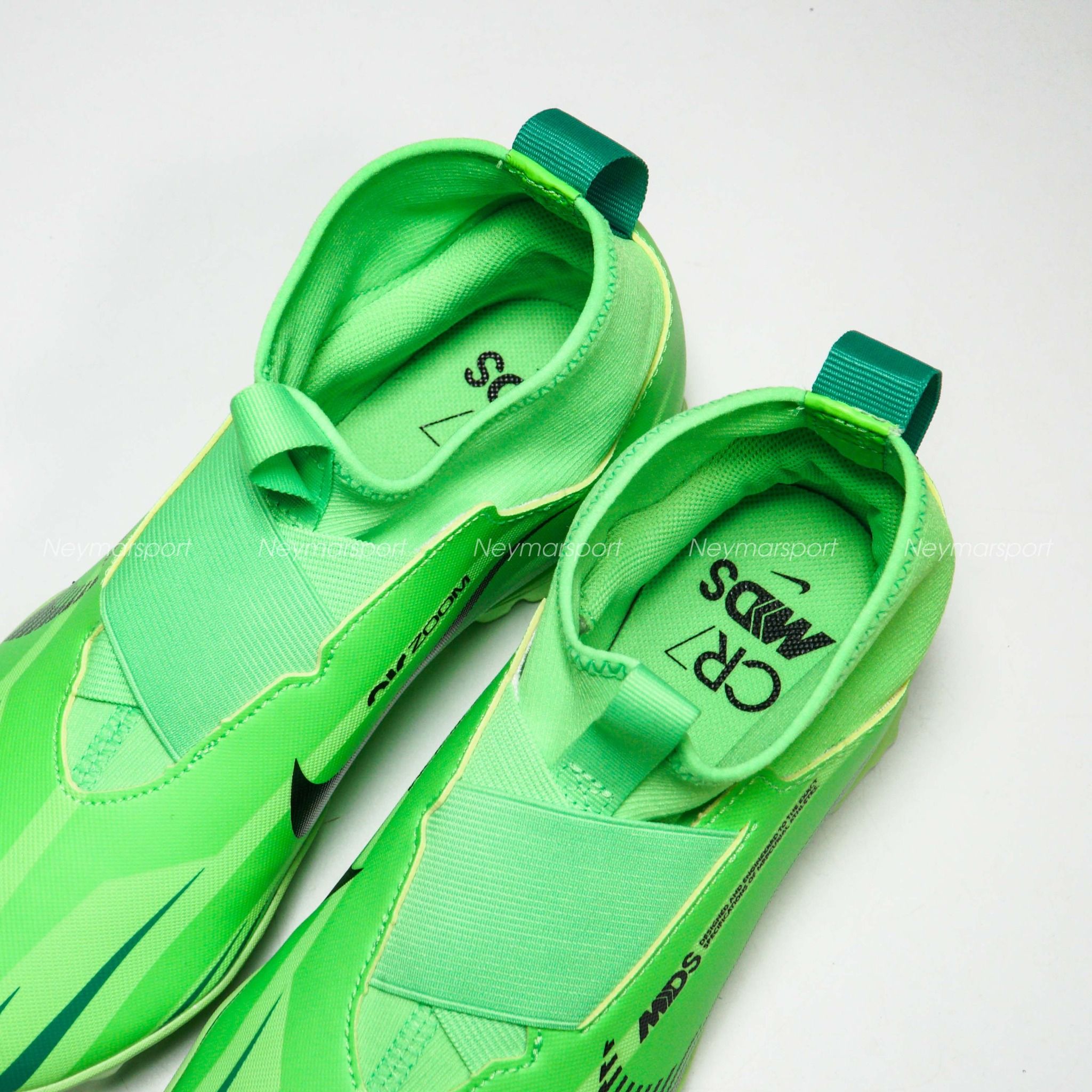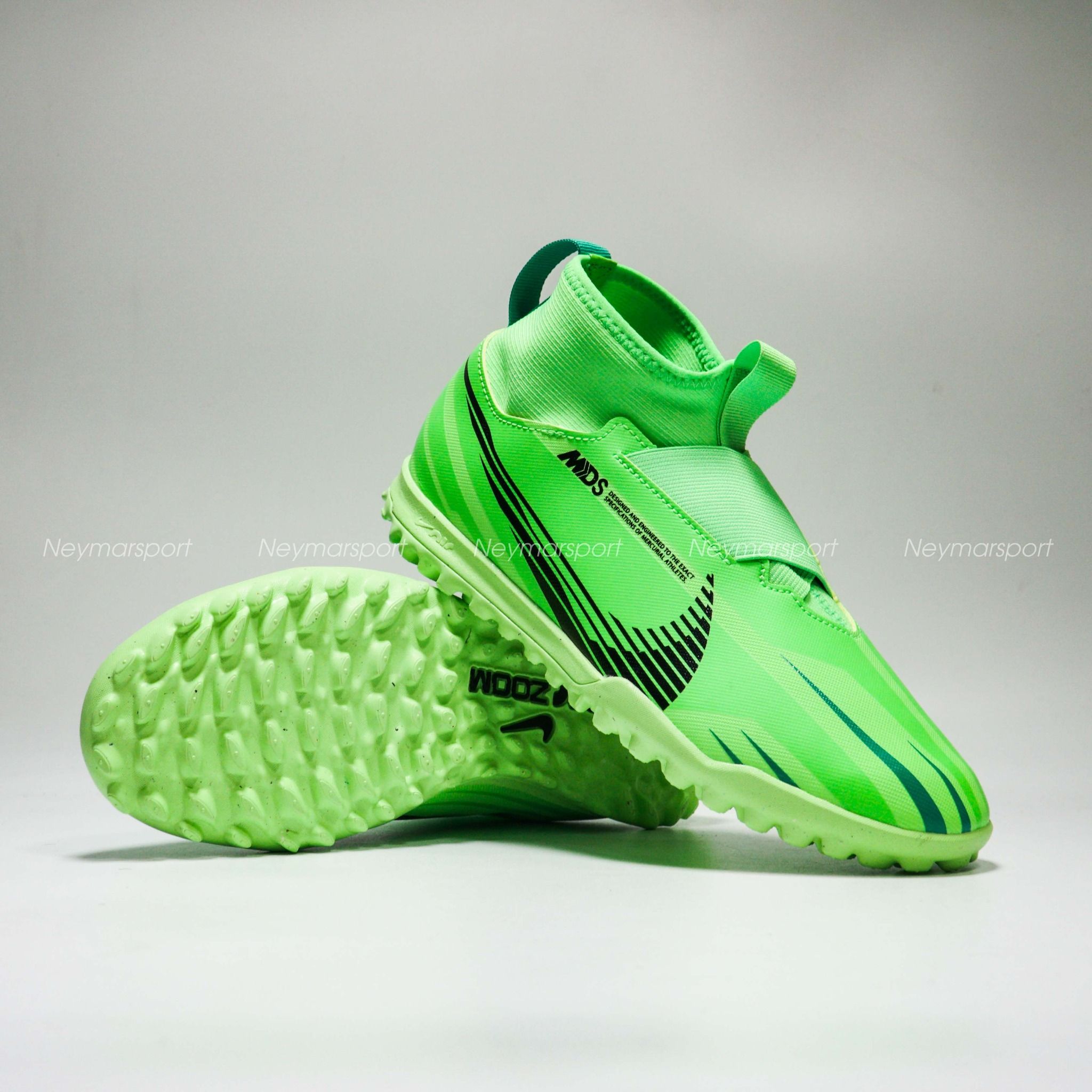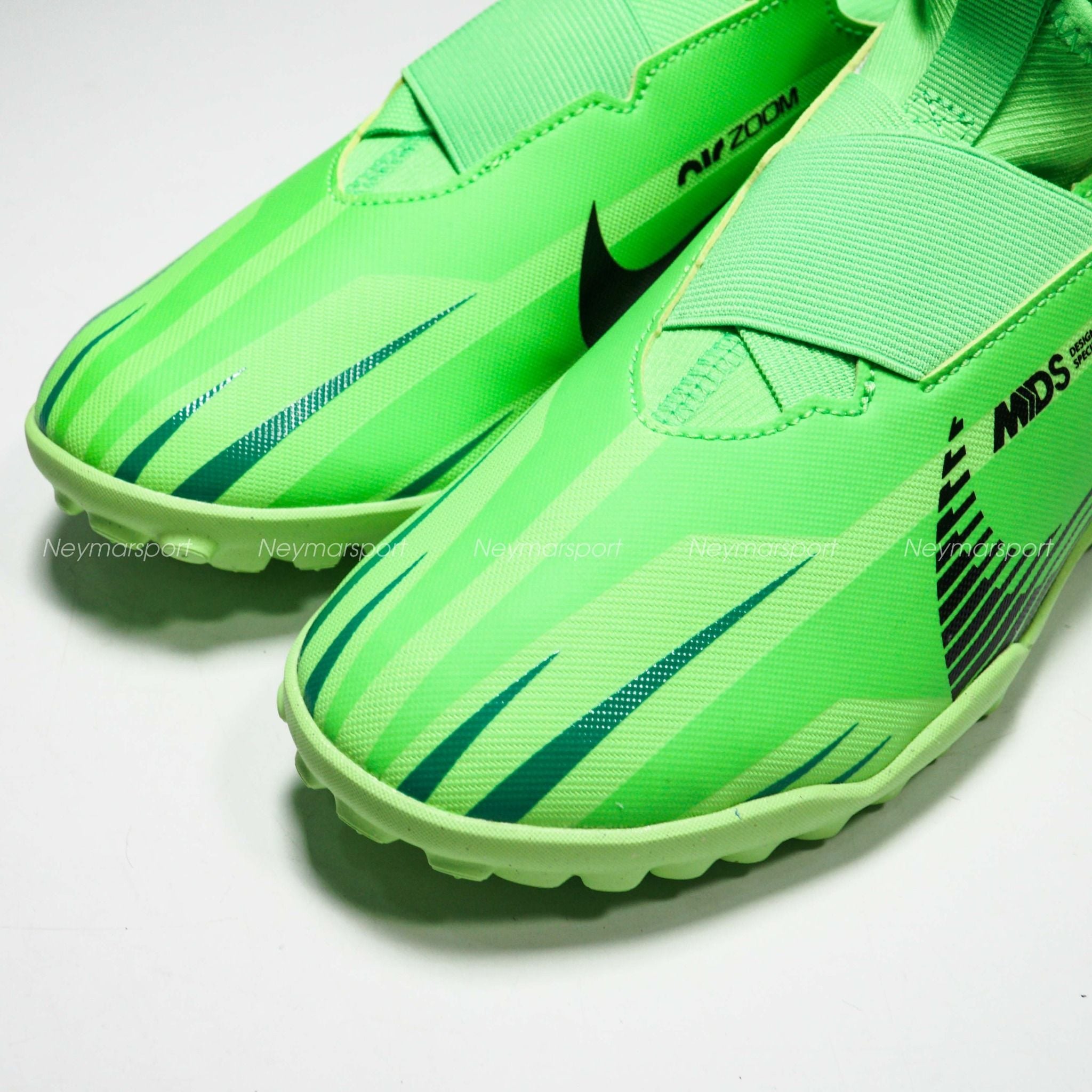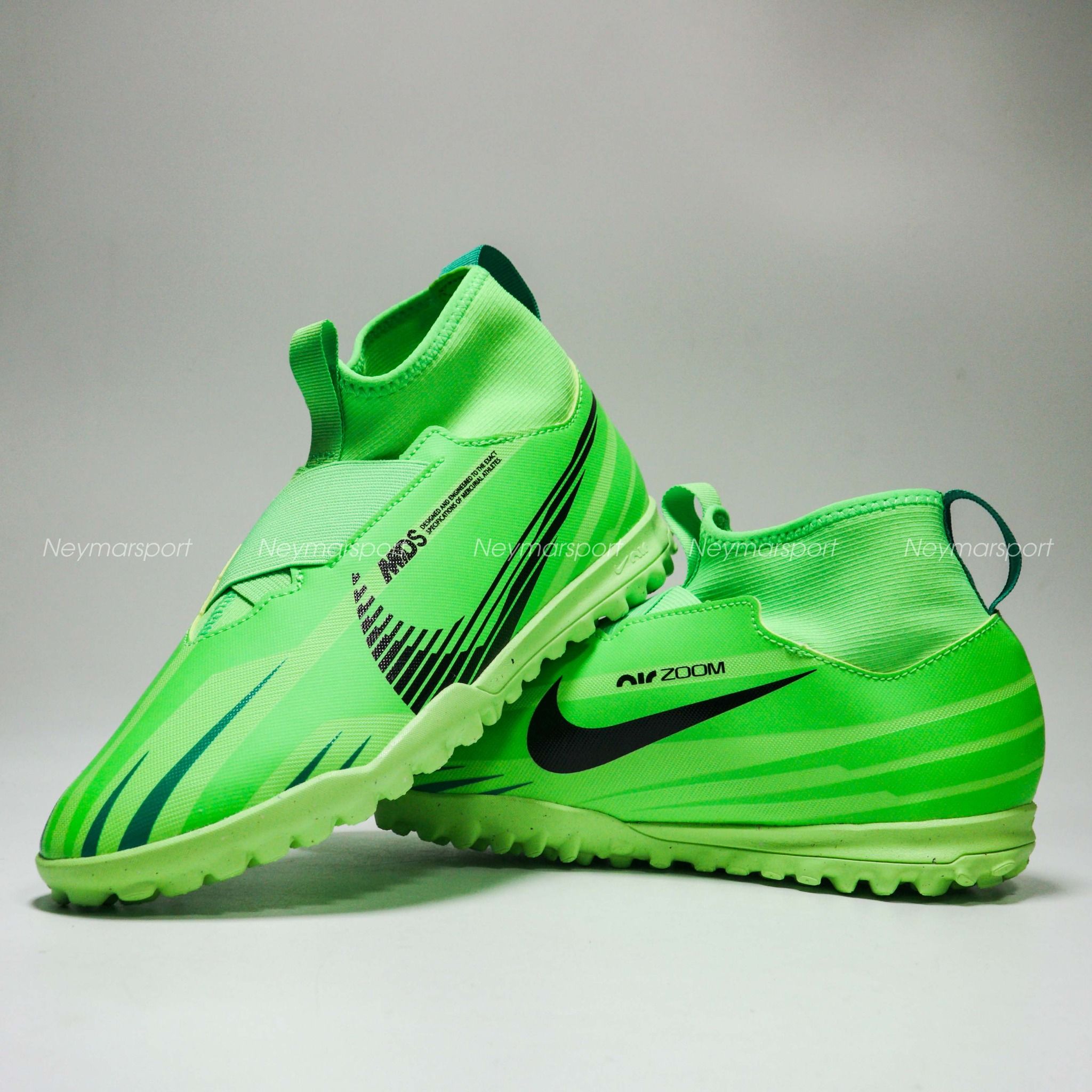 Giày đá bóng Giày đá bóng Nike Air Zoom Mercurial Superfly 9 Academy TF Dream Speed 8 - Green Strike/Black/Stadium Green Kids FJ7195-300 là mẫu giày phổ thông cổ cao dành cho trẻ em thi đấu sân cỏ nhân taọ 5-7 người. Nike Air Zoom Mercurial Vapor 15 Academy TF Dream Speed 8 được thiết kế trên nền xanh chủ đạo, các họa tiết và biểu tượng của thương hiệu được làm nổi bật với gam màu đen cùng với đó là logo Swoosh được phóng to, tạo hiệu ứng thị giác mạnh mẽ. Các sắc thái xanh khác nhau tạo nên hình ảnh mô phỏng tốc độ và chuyển động, chạy dọc từ mũi giày, tô điểm thêm sự năng động và cá tính.