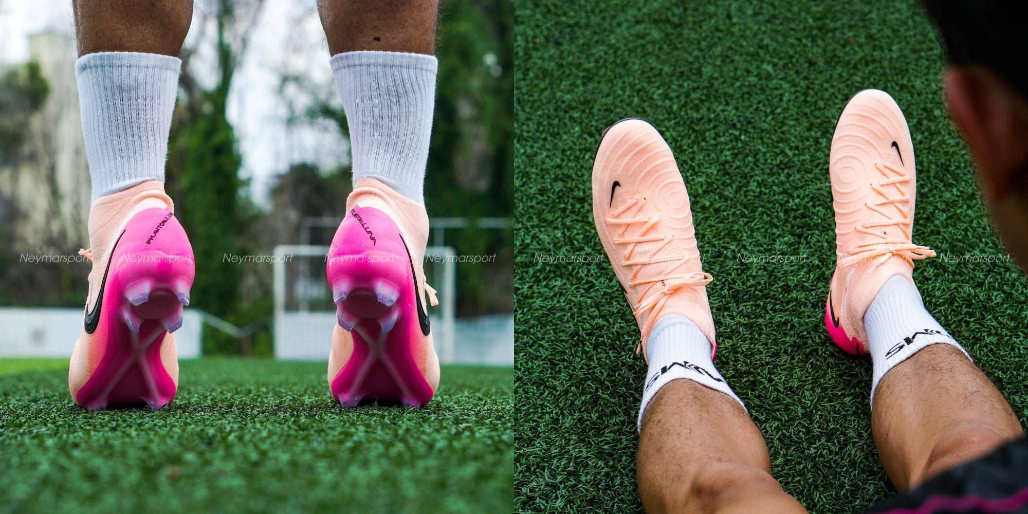 Giày bóng đá Nike Phantom Luna II Elite FG Prism - Crimson Tint/Black/Pink Blast FJ2572-800 là phiên bản cao cấp dành chuyên cho sân cỏ tự nhiên 11 người. Dòng giày được thiết kế dành cho sự chính xác và kiểm soát bóng tuyệt đối, xuất hiện trong Prism Pack với gam màu "Crimson Tint/Black/Pink Blast" đầy quyến rũ và nổi bật. Sắc hồng đào ngọt ngào bao phủ phần upper knit, tạo nên vẻ ngoài trẻ trung, năng động và không kém phần mạnh mẽ.