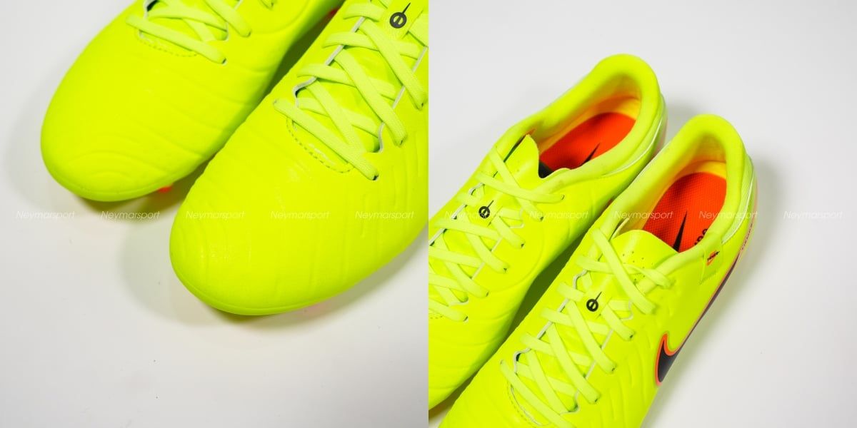 - Đặc biệt, các đường gấp khúc ở đầu mũi giày và một phần đục lỗ ở trên logo Swoosh của Tiempo 9 sẽ bị loại bỏ, Tiempo 10 chỉ giữ lại thiết kế logo Swoosh và cấu trúc của lưỡi giày. Chứng tỏ rằng, giao diện của Tiempo 10 sẽ không có sự thay đổi quá nhiều so với những mẫu giày hiện tại.