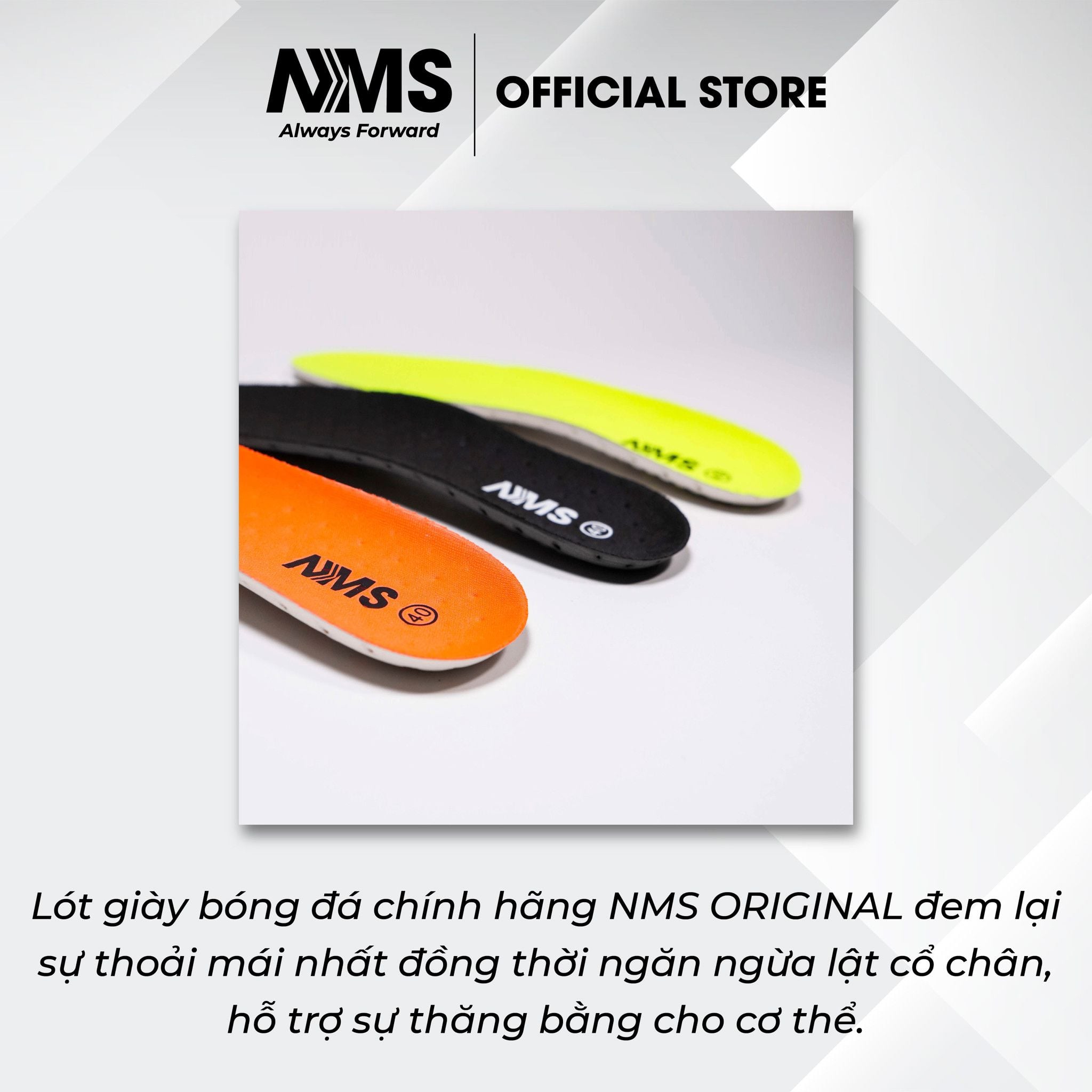 Lót giày bóng đá chính hãng NMS ORIGINAL đem lại sự thoải mái nhất đồng thời ngăn ngừa lật cổ chân, hỗ trợ sự thăng bằng cho cơ thể.