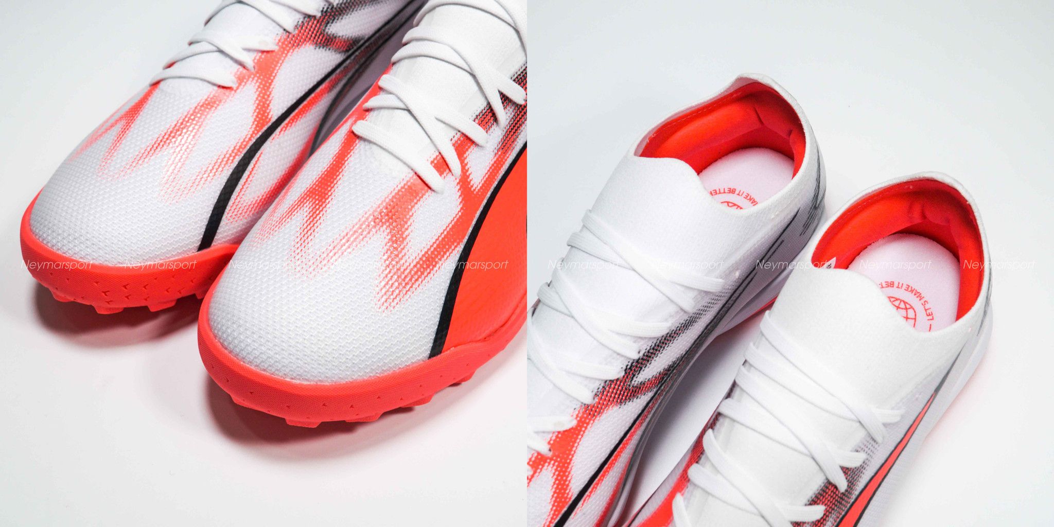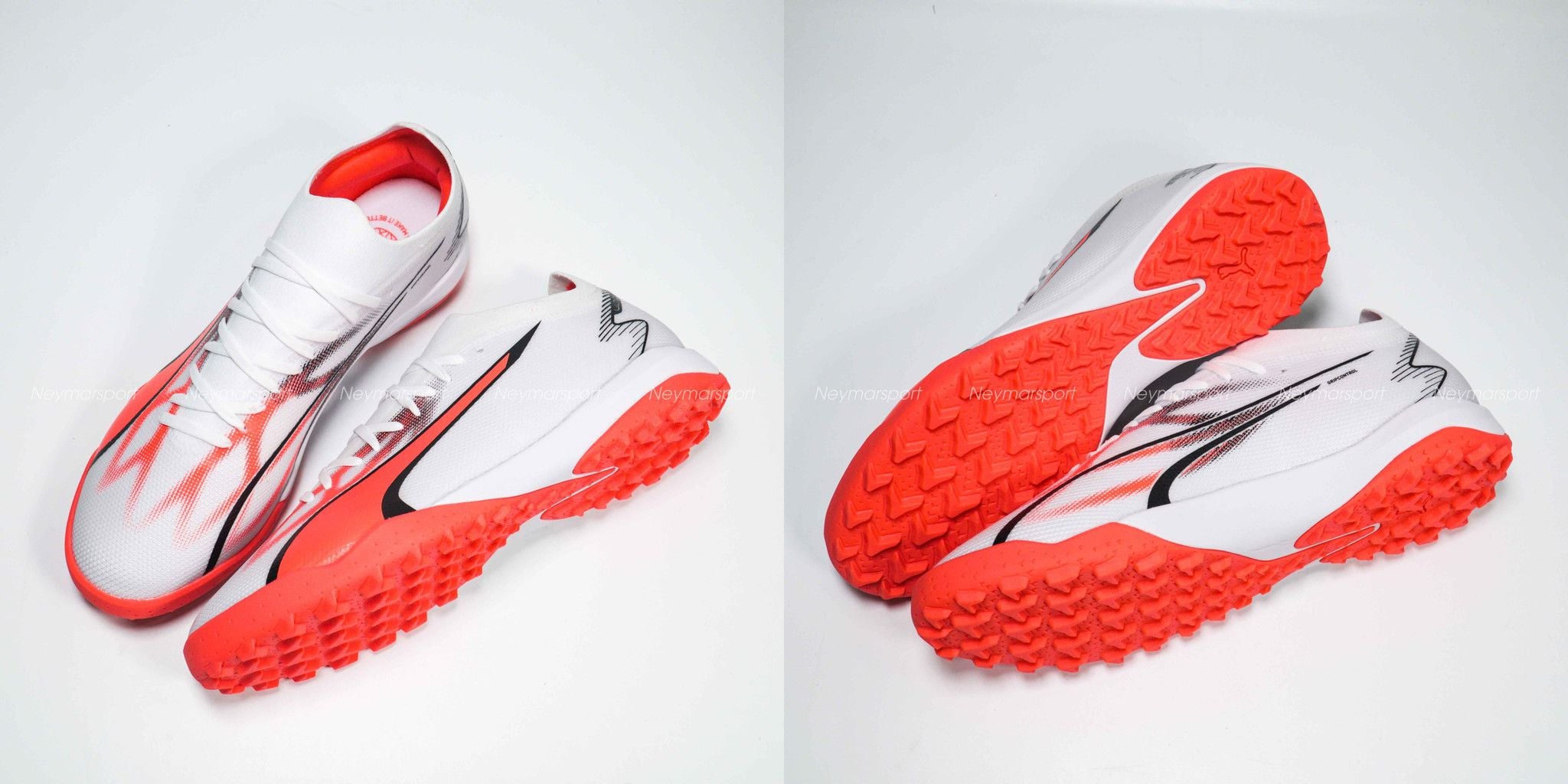 PUMA Ultra Match TT Breakthrough - PUMA White/PUMA Black/Fire Orchid là mẫu giày phân khúc phổ thông của PUMA dành cho mặt sân cỏ nhân tạo 5-7 người. Từ 2023, Puma đã bỏ các phân biệt các phân khúc theo chấm "." thay vào đó họ sẽ đặt tên như sau: Ultimate (cao cấp nhất) - Pro (trung cấp) - Match (phổ thông) - Play (giá rẻ).