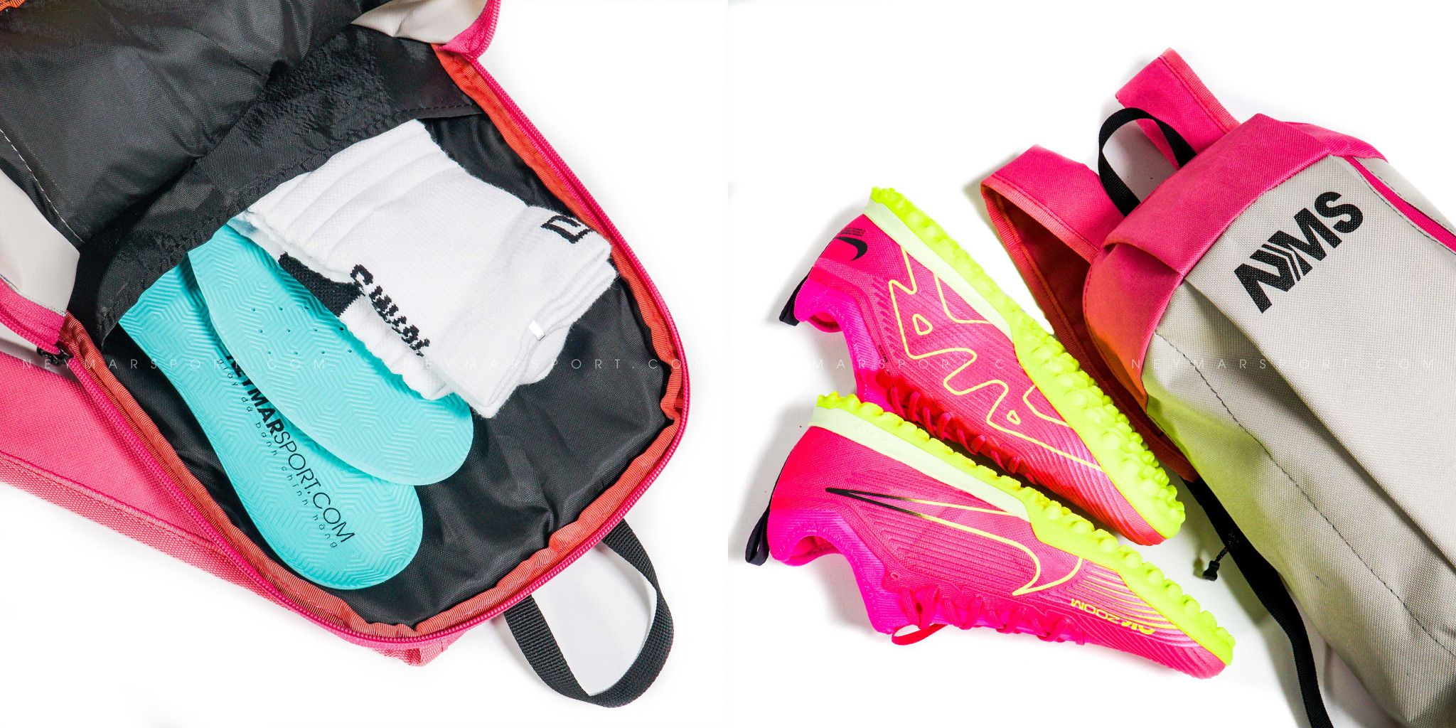 Balo gồm 2 ngăn: một ngăn đựng giày, phụ kiện và một ngăn nhỏ đựng vừa bóp, giấy tờ cá nhân.