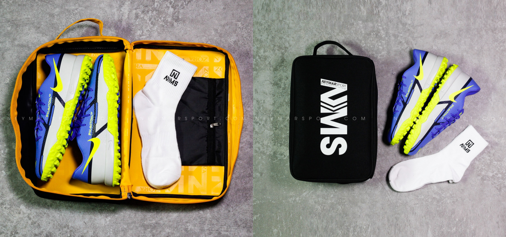 TÚI HỘP ĐỰNG GIÀY NEYMARSPORT Q2/2022 là mẫu túi mới nhất được Neymarsport thiết kế với sự đổi mới về màu sắc từ 1 màu thành 2 màu, rất nhiều tiện lợi, thời trang phù hợp cho người dùng có thể mang đi đá bóng. Túi hộp đa năng bên trong có ngăn túi nhỏ đựng đồ đạc như ví tiền, thẻ xe, chìa khóa... Ngoài ra, túi có thể đựng 1 đôi giày với thêm 1 bộ đồ.