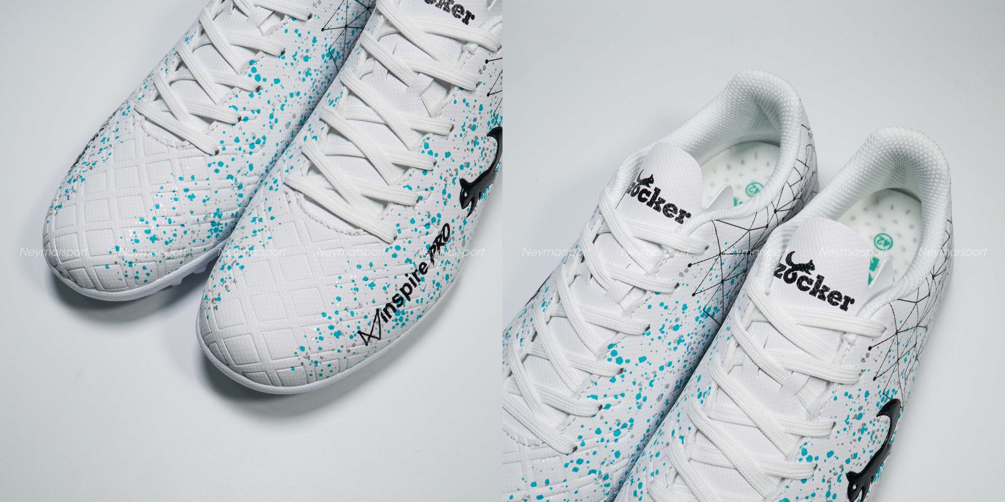 Giày đá bóng Zocker Inspire Pro - White là giày đá bóng đá sân cỏ nhân tạo cao cấp thương hiệu Zocker, được thiết kế phù hợp với cấu tạo bàn chân người Việt.