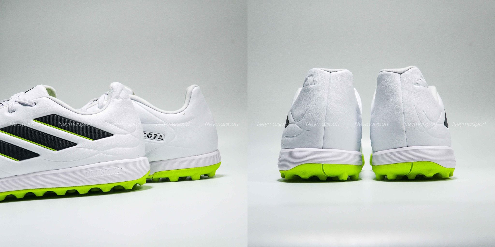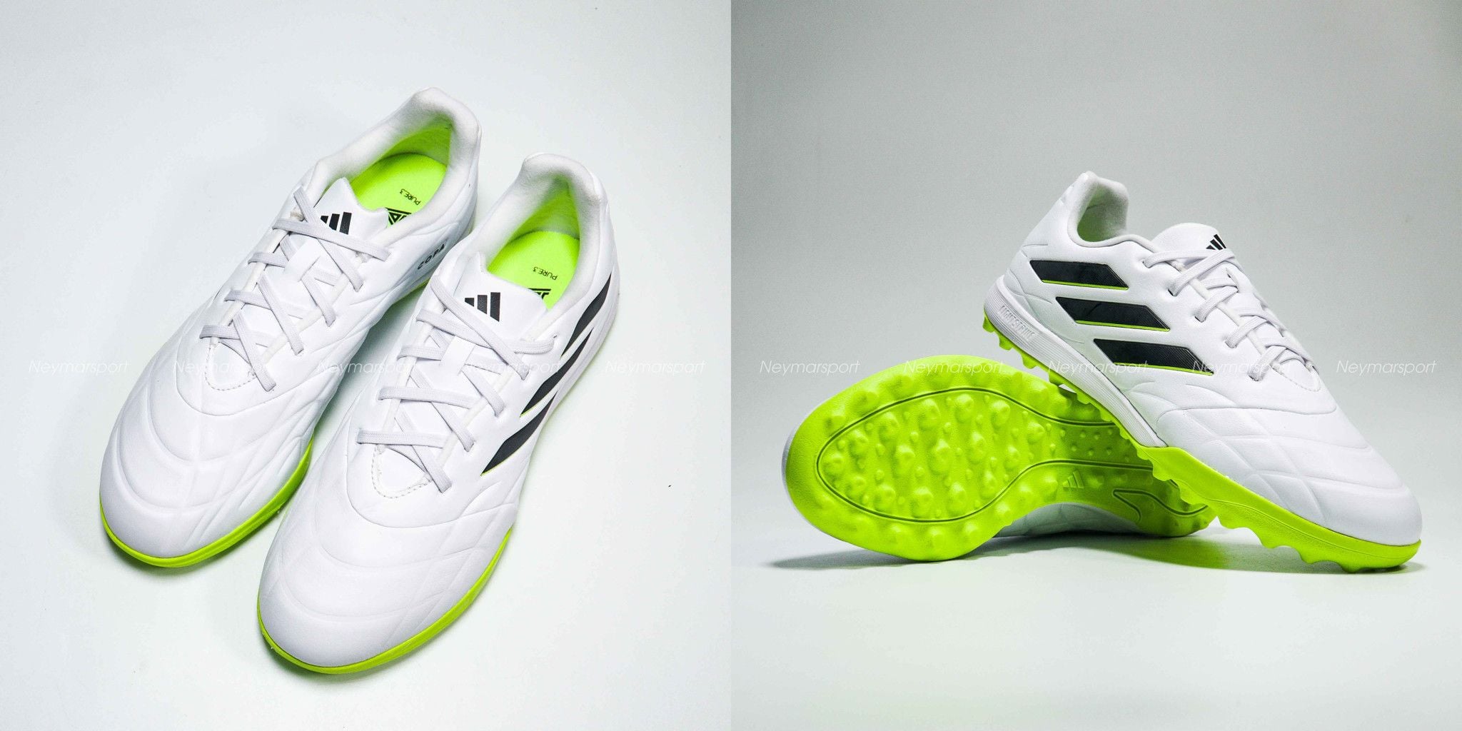 adidas Copa Pure .3 TF Crazyrush - Footwear White/Core Black/Lucid Lemon là phân khúc phổ thông dành cho sân cỏ nhân tạo 5-7 người. Phối màu Đen - Hồng - Trắng mang đậm chất cổ điển nhưng pha chút hiện đại. Nằm trong BST 'Crazyrush' với gam màu cơ bản là trắng, kết hợp phần đế màu xanh và logo 3 sọc màu màu đen nổi bật tạo cho phiên bản một thiết kế đơn giản nhưng không kém phần thu hút.. Đây cũng là dòng sản phẩm hướng tới các vị trí chơi kiểm soát và chắc chắn như trung vệ, tiền vệ chơi kỹ thuật. Form giày thực sự phù hợp cho các bàn chân bè.