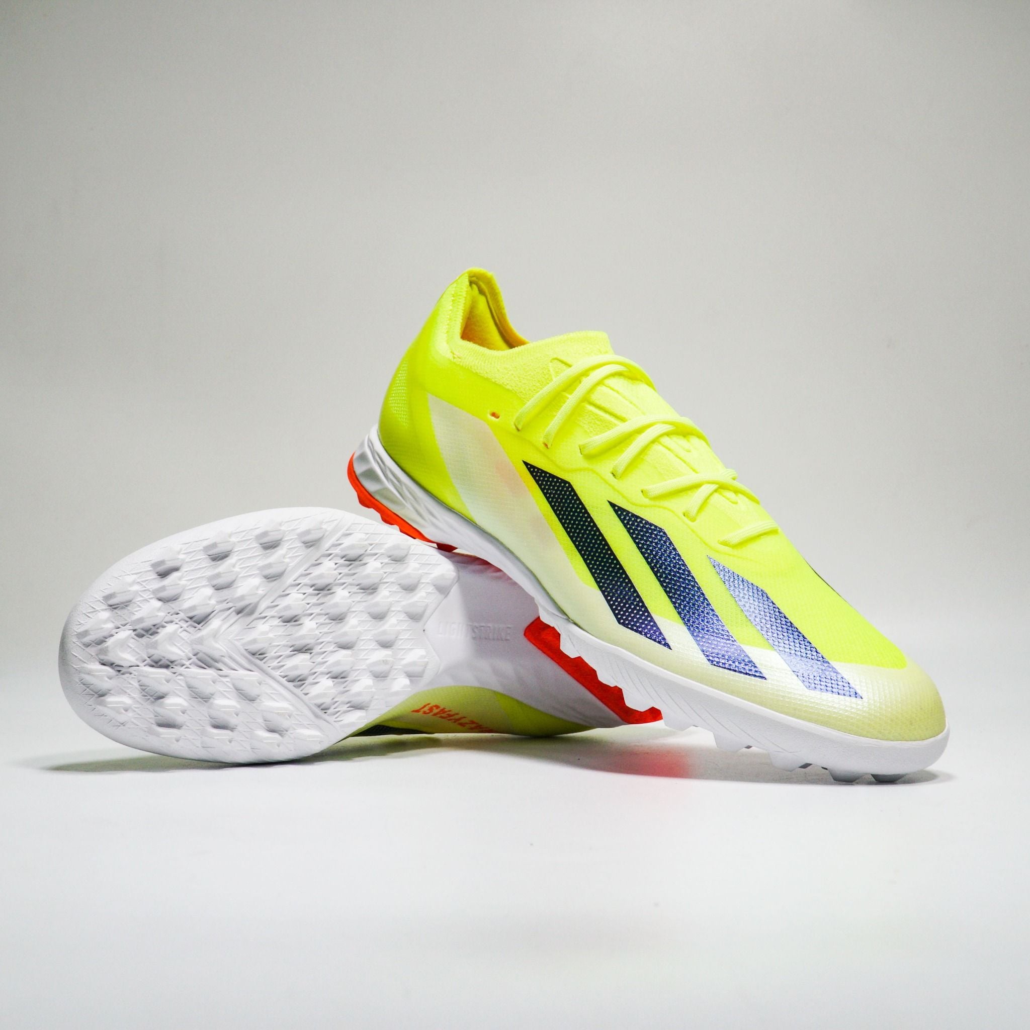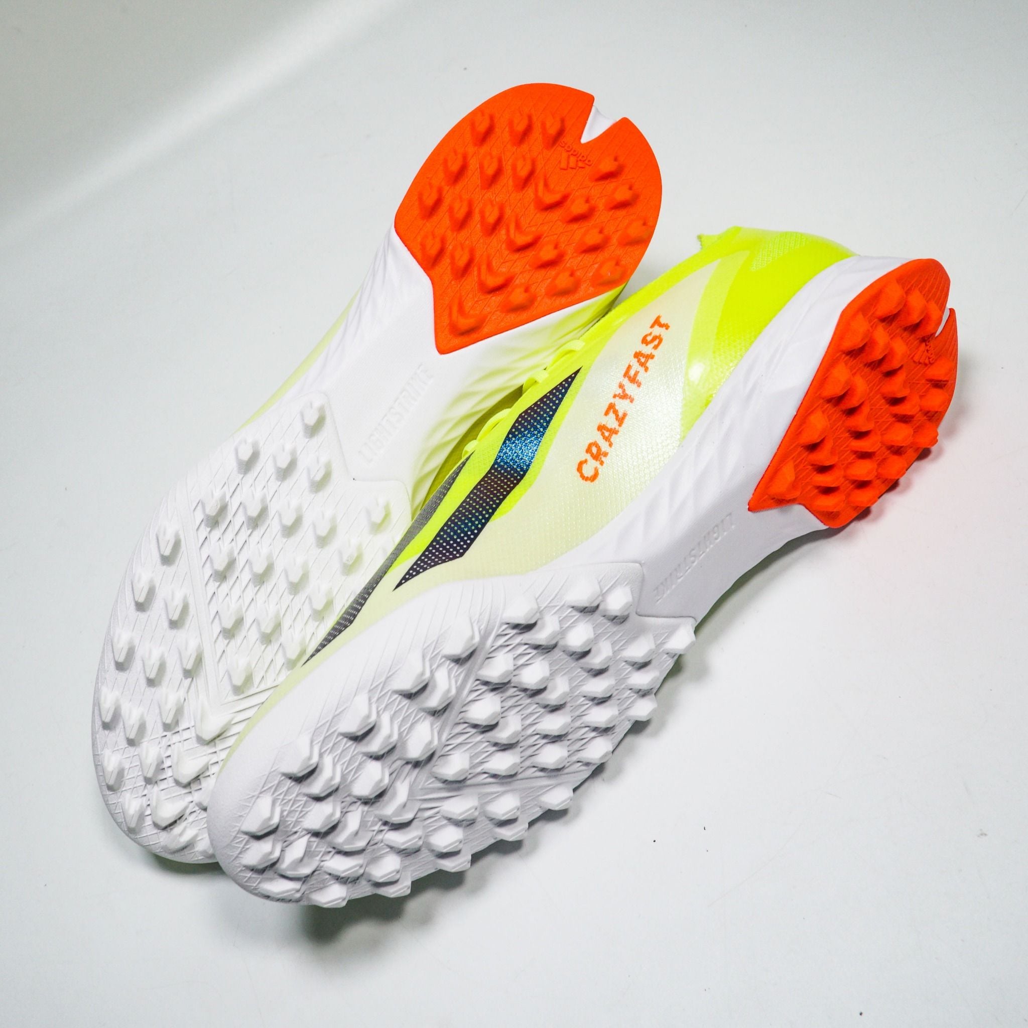 Phần đế adidas X Crazyfast Elite TF được trang bị bộ đệm Lightstrike EVA siêu êm ái kết hợp ghép 2 mảng mặt đinh cao su trong tác biệt hoàn toàn. Điều này tăng độ êm trong từng bước di chuyển của người chơi trên bề mặt sân nhân tạo, giảm tối đa phản lực tác động lên các khớp chân, gối của người chơi.