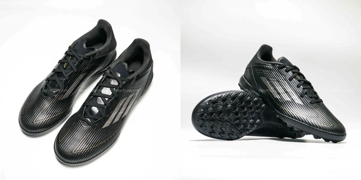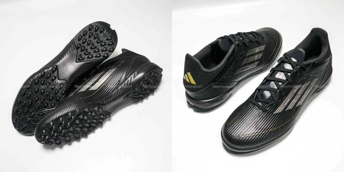 Giày đá bóng adidas F50 League TF Dark Spark - Core Black/Iron Metal/Gold Metallic IF1337 là phiên bản phổ thông dành chuyên cho sân cỏ nhân tạo 5-7 người. adidas F50 Dark Spark khoác lên mình gam màu Đen nổi bật, cá tính, cùng với sự kết hợp logo 3 sọc màu bạc giúp đôi giày trở nên mạnh mẽ hơn.
