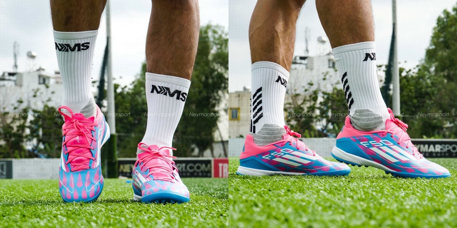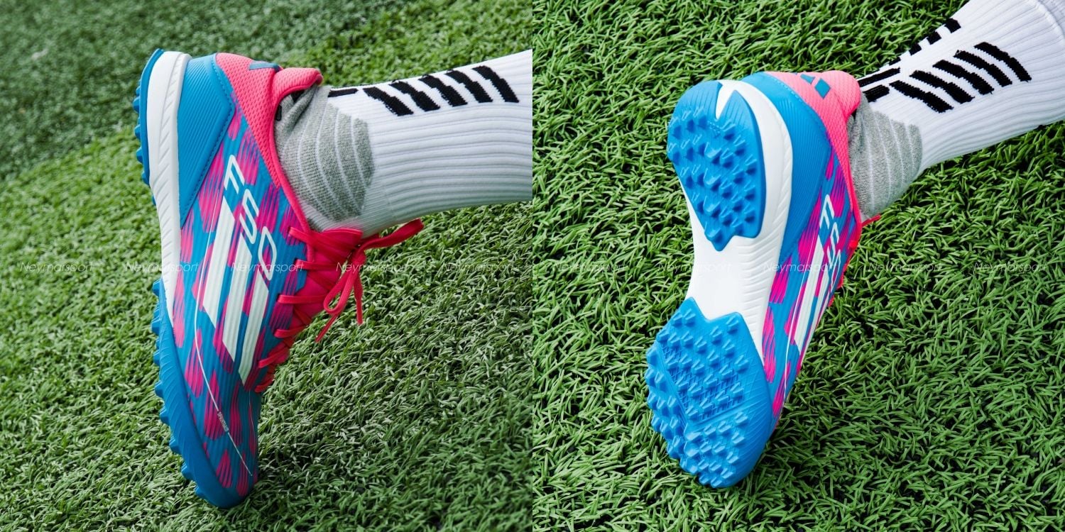 - Phần đế adidas F50 League TF được trang bị bộ đệm EVA siêu êm ái kết hợp ghép 2 mảng mặt đinh cao su trong tác biệt hoàn toàn. Điều này tăng độ êm trong từng bước di chuyển của người chơi trên bề mặt sân nhân tạo, giảm tối đa phản lực tác động lên các khớp chân, gối của người chơi.