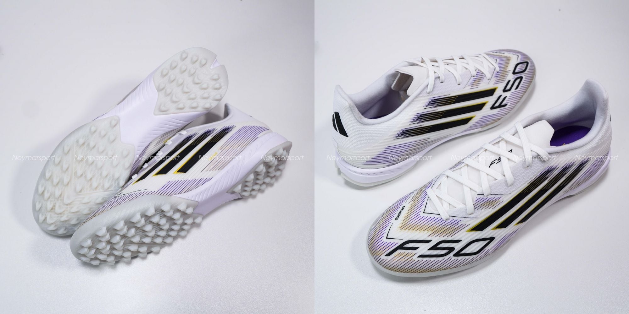 - Phần đế adidas F50 League TF được trang bị bộ đệm EVA siêu êm ái kết hợp ghép 2 mảng mặt đinh cao su trong tác biệt hoàn toàn. Điều này tăng độ êm trong từng bước di chuyển của người chơi trên bề mặt sân nhân tạo, giảm tối đa phản lực tác động lên các khớp chân, gối của người chơi.