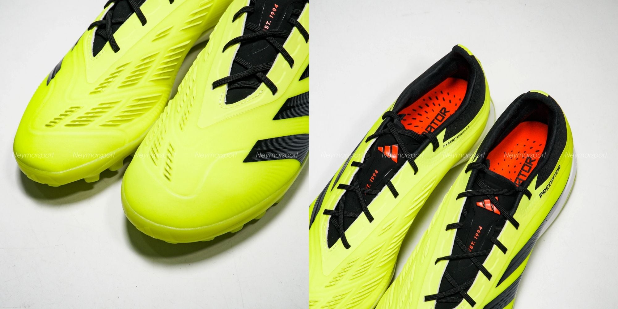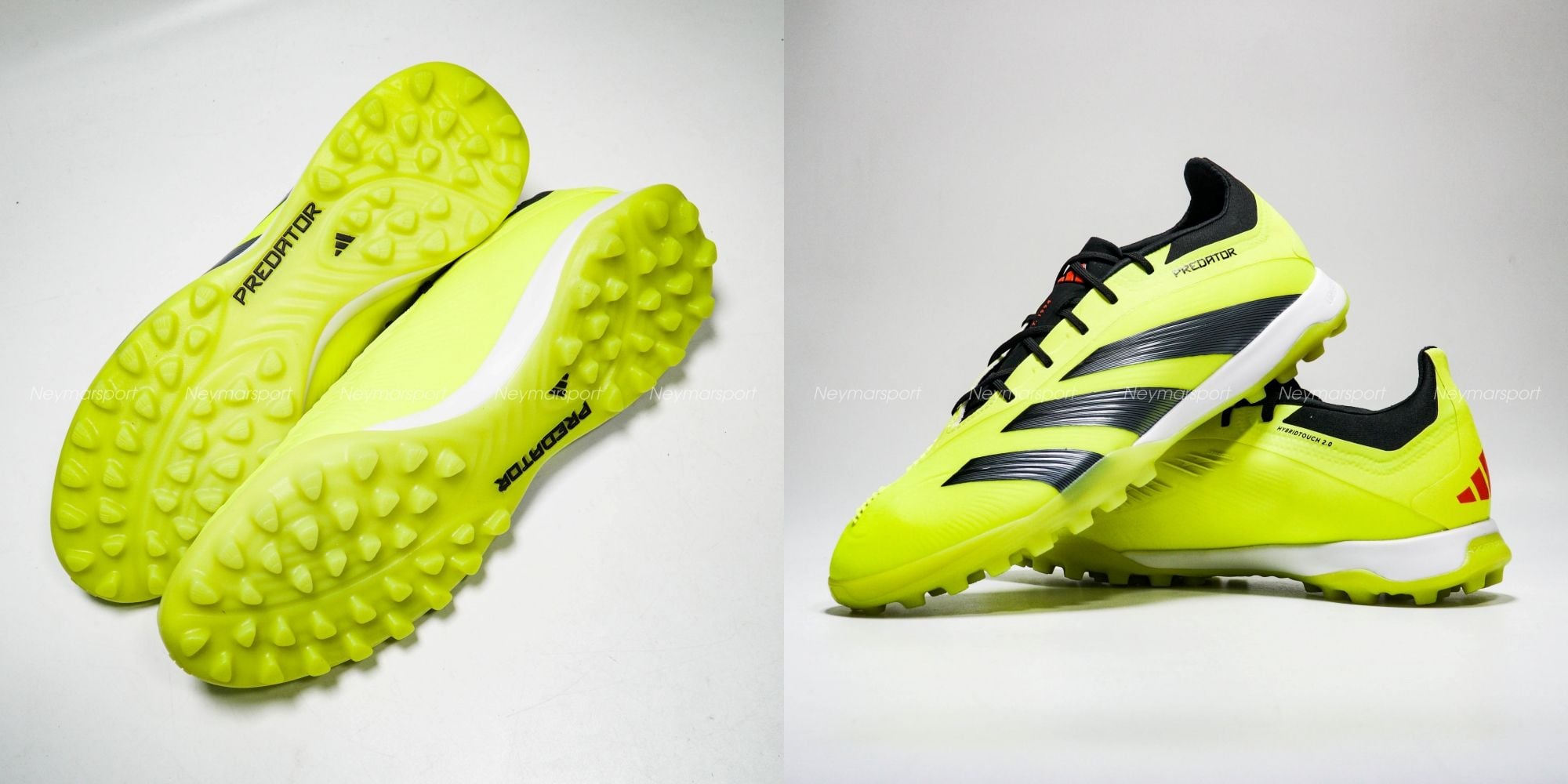 Giày đá bóng adidas Predator Elite TF Energy Citrus - Solar Yellow/Core Black/Solar Red IG7730 là mẫu giày cỏ nhân tạo phân khúc cao cấp nhất dành cho mặt sân cỏ nhân tạo 5 người. Adidas chọn "Team Solar Yellow/Core Black/Solar Energy" làm bảng màu chính cho dòng sản phẩm này. Giày đá banh Adidas Predator 24 ‘Energy Citrus’ rực rỡ với Yellow Solar làm tông màu chủ đạo, Core Black được áp dụng làm điểm nhấn trên phần cổ và lưỡi gà của giày, trong khi đó màu Solar Energy gây ấn tượng với các sắc độ của màu đỏ và được xem là một điểm liên kết với cái tên mạnh mẽ của BST lần này.