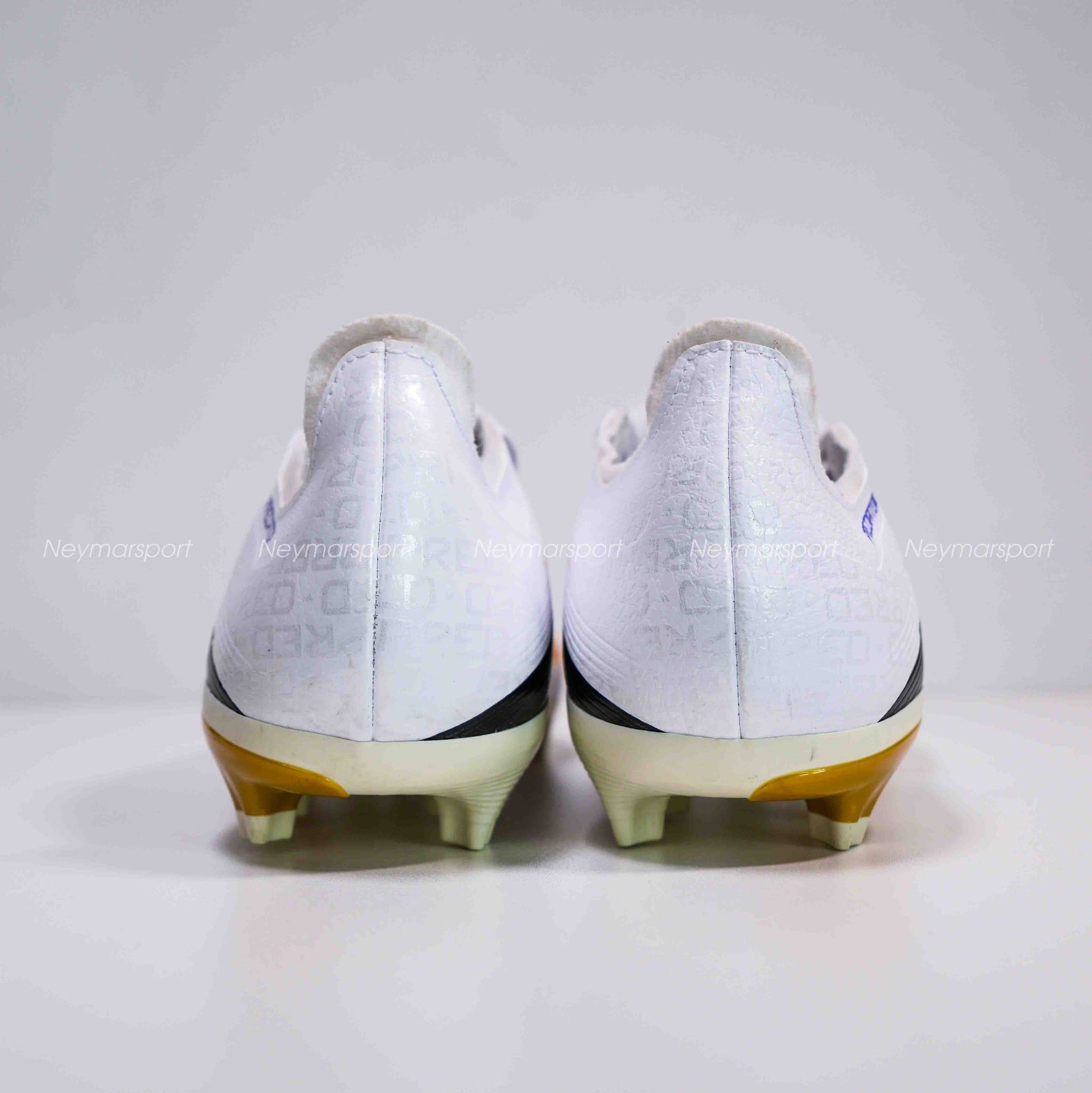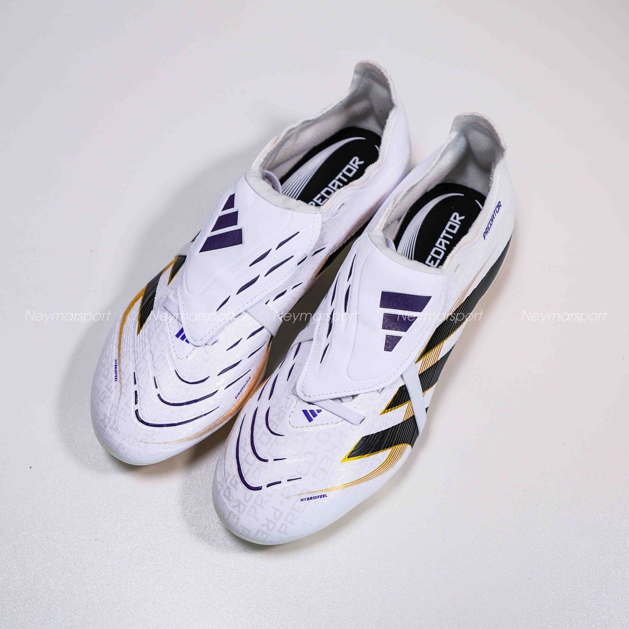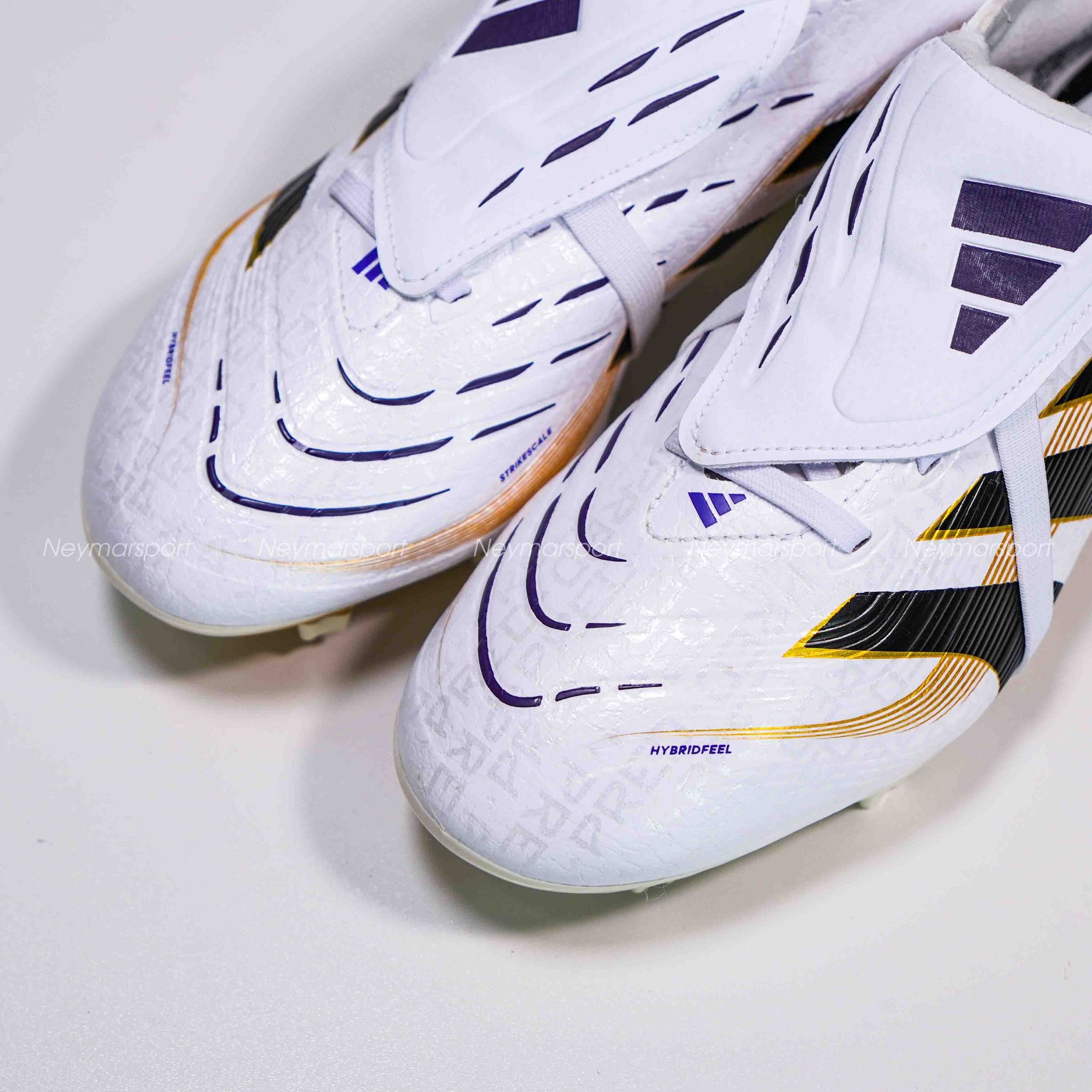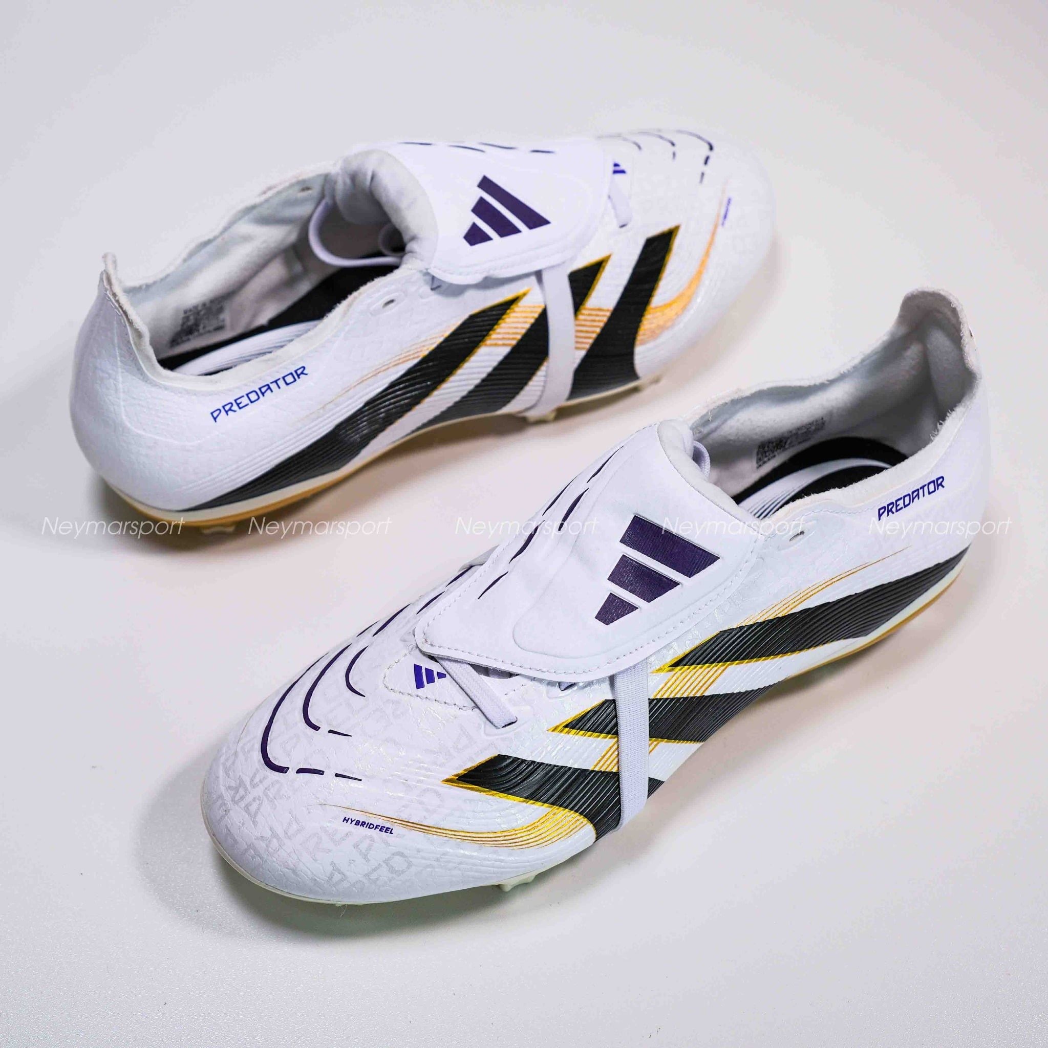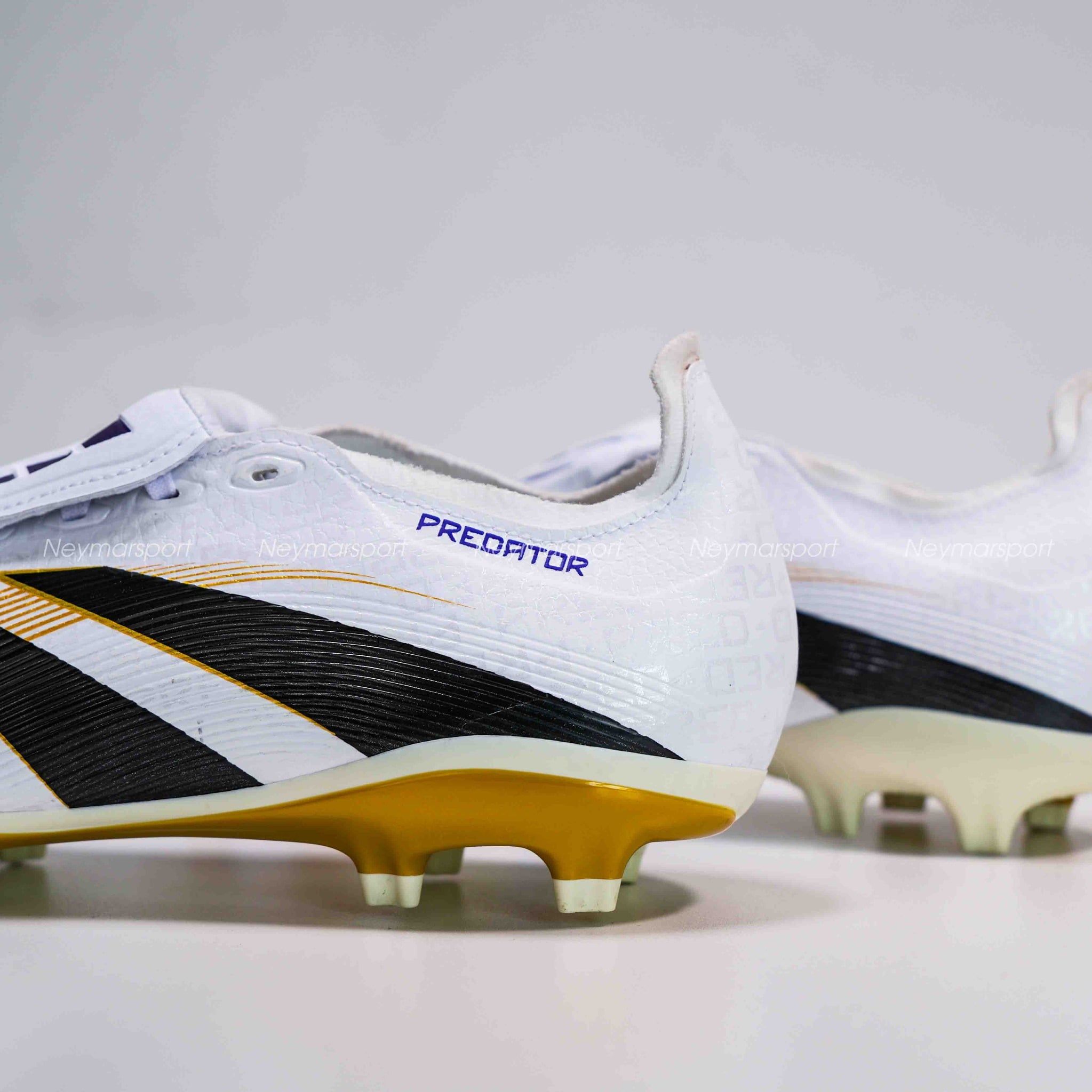 Predator 25 tiếp nối tinh thần đặc trưng của dòng Predator với thiết kế mạnh mẽ và đầy uy lực. Phối màu trắng – đen – vàng gold tạo nên tổng thể nổi bật, lấy cảm hứng từ huyền thoại Predator Accelerator 1998. Điểm nhấn thị giác nằm ở các đường sóng đen nổi bật trên nền trắng, kết hợp logo ba sọc màu vàng kim loại sang trọng.