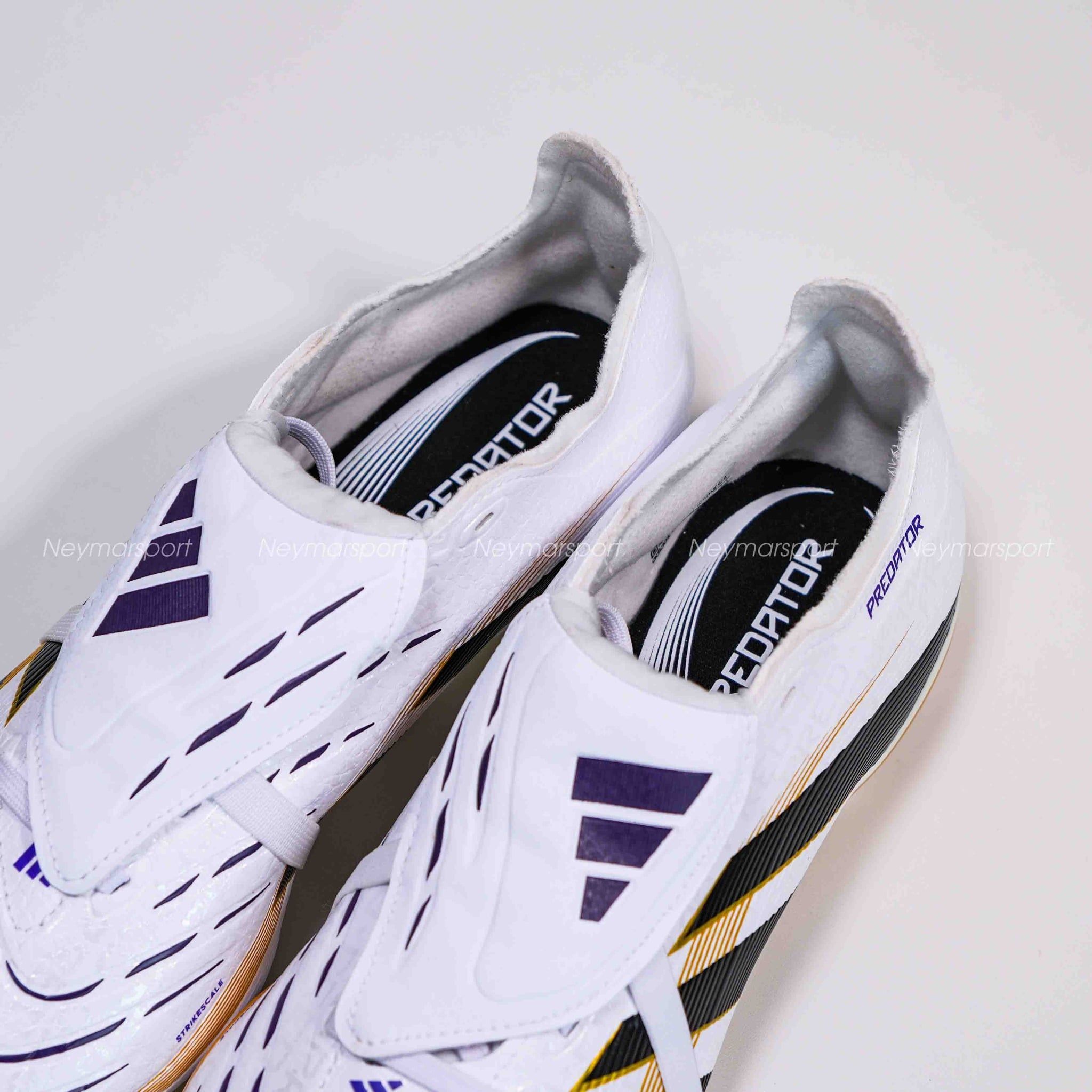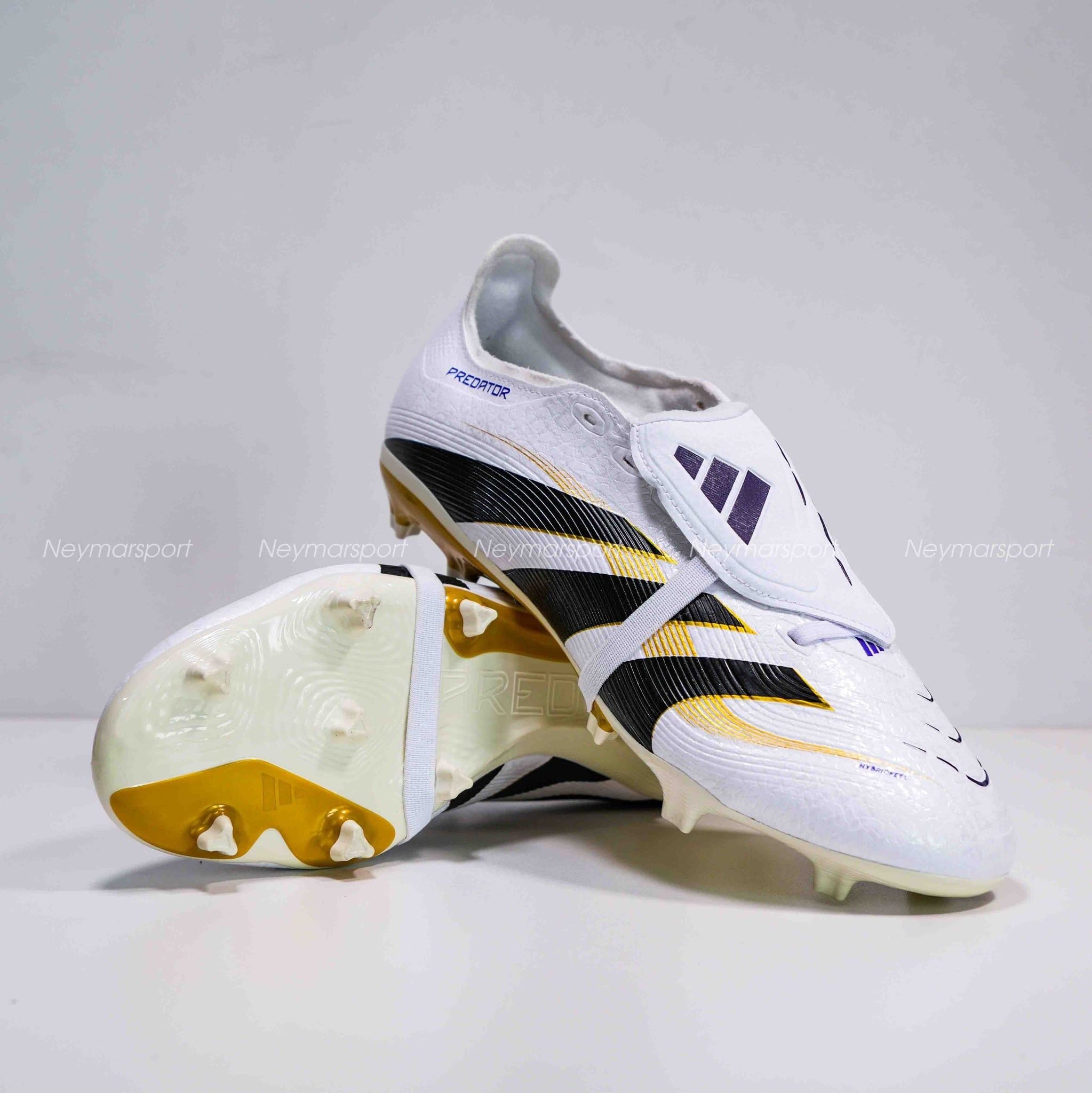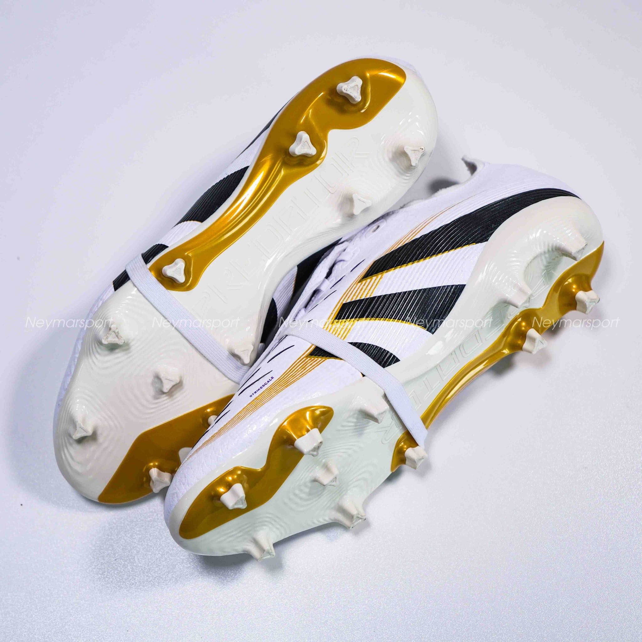 Giày đá bóng adidas Predator League Fold-over Tongue FG/AG Road to Glory - Footwear White/Core Black/Gold Metallic JI1114 là phiên bản phổ thông dành chuyên cho sân cỏ tự nhiên 11 người.