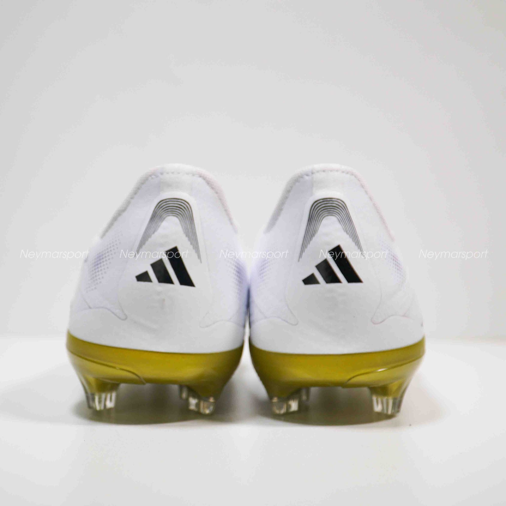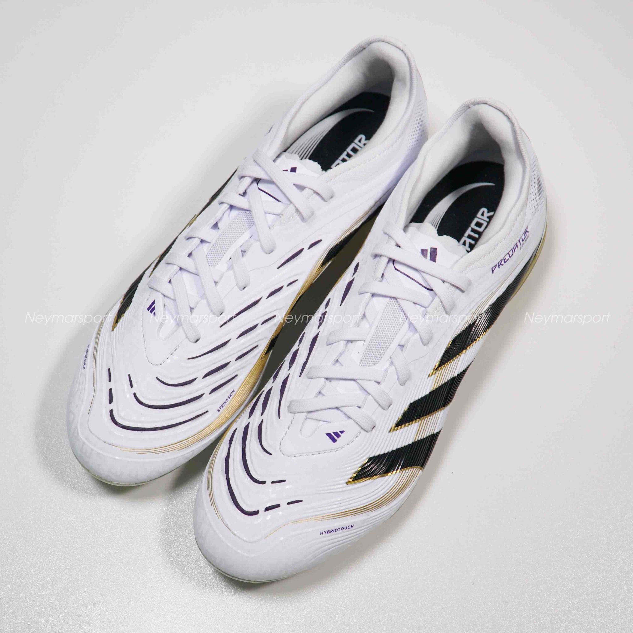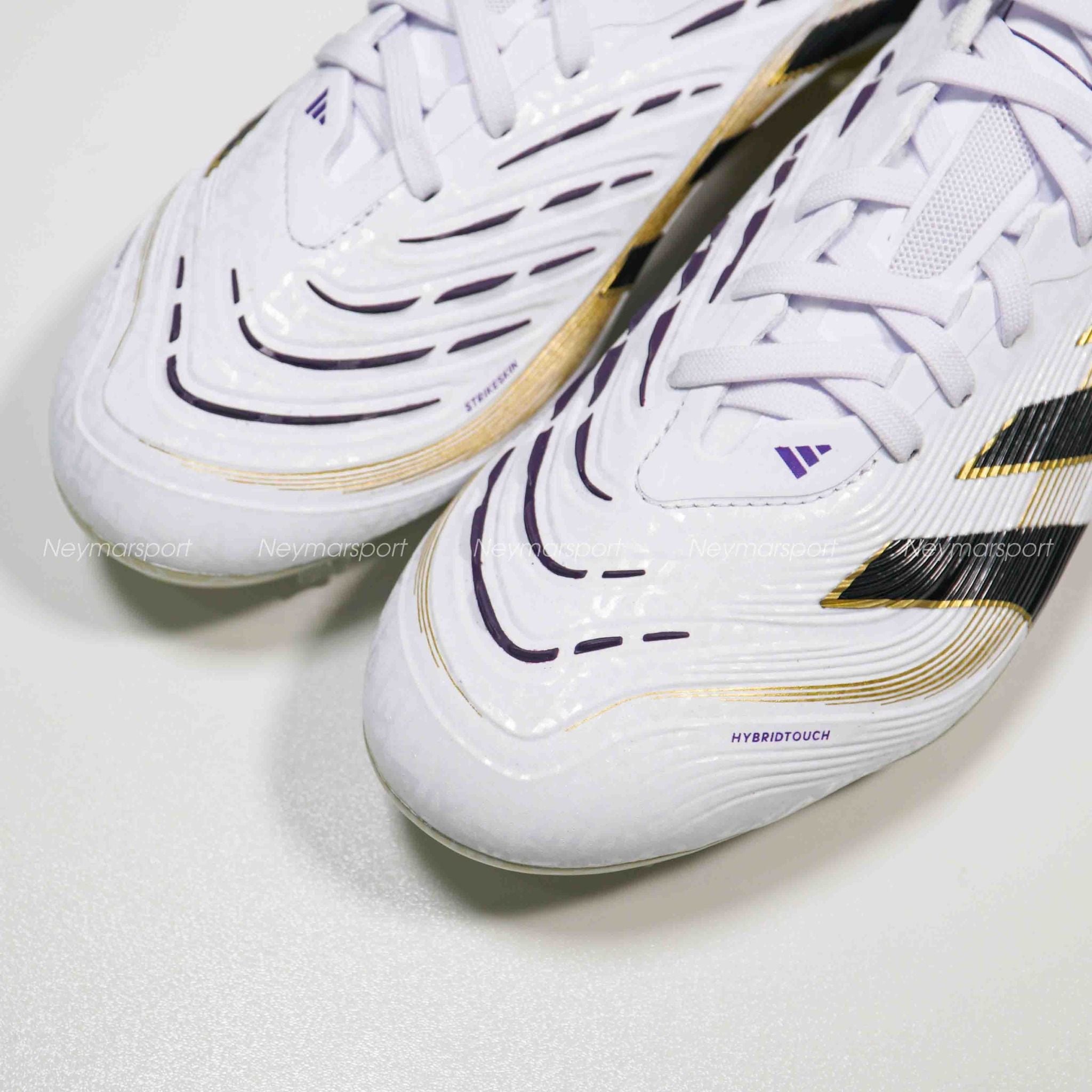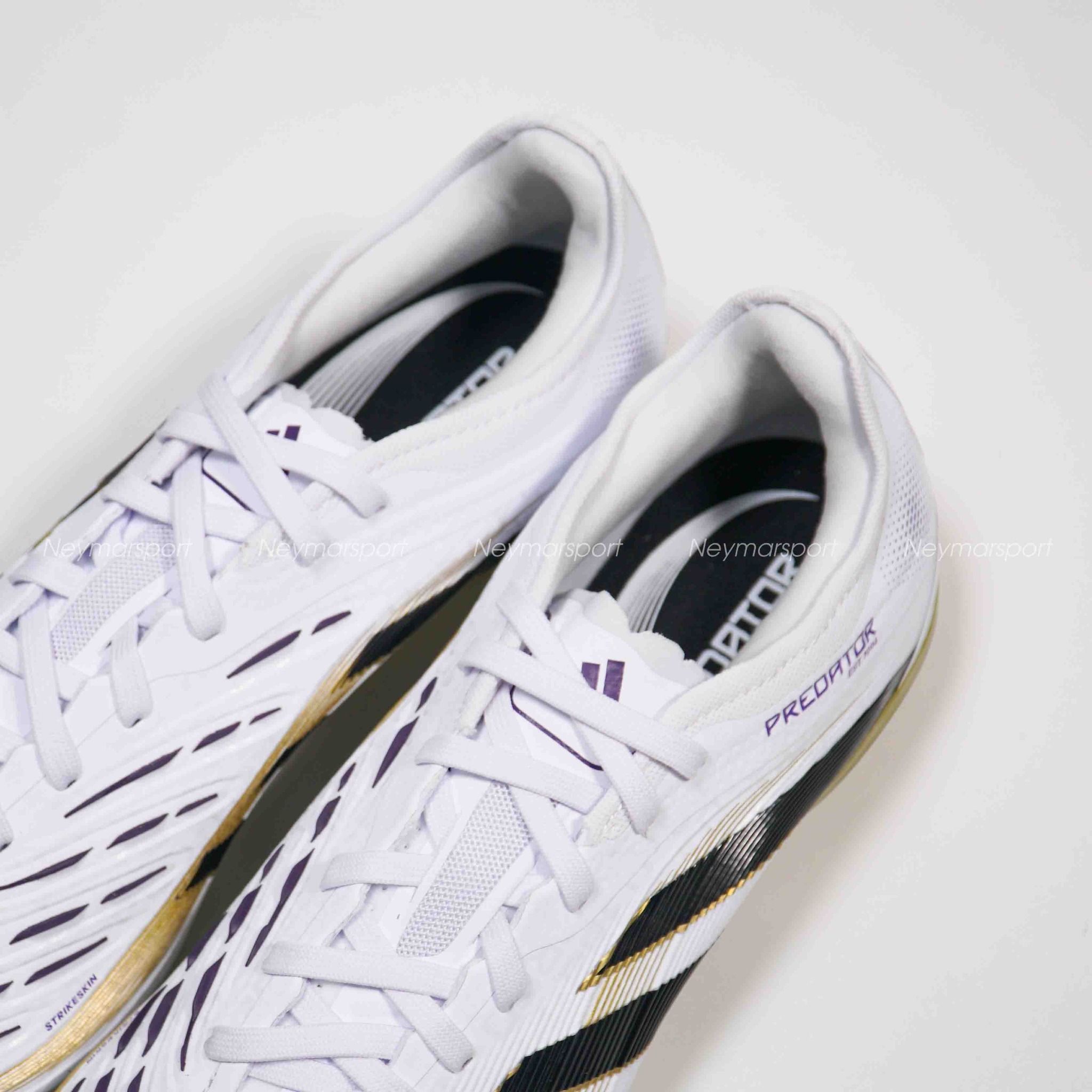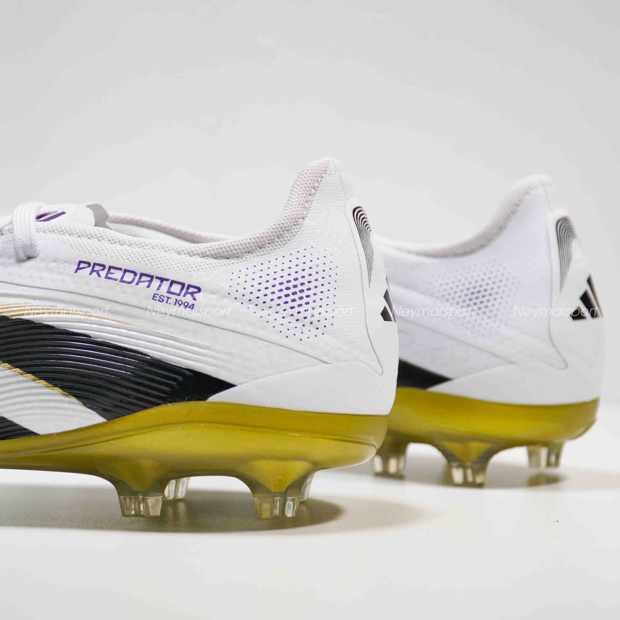 Predator 25 tiếp nối tinh thần đặc trưng của dòng Predator với thiết kế mạnh mẽ và đầy uy lực. Phối màu trắng – đen – vàng gold tạo nên tổng thể nổi bật, lấy cảm hứng từ huyền thoại Predator Accelerator 1998. Điểm nhấn thị giác nằm ở các đường sóng đen nổi bật trên nền trắng, kết hợp logo ba sọc màu vàng kim loại sang trọng.
