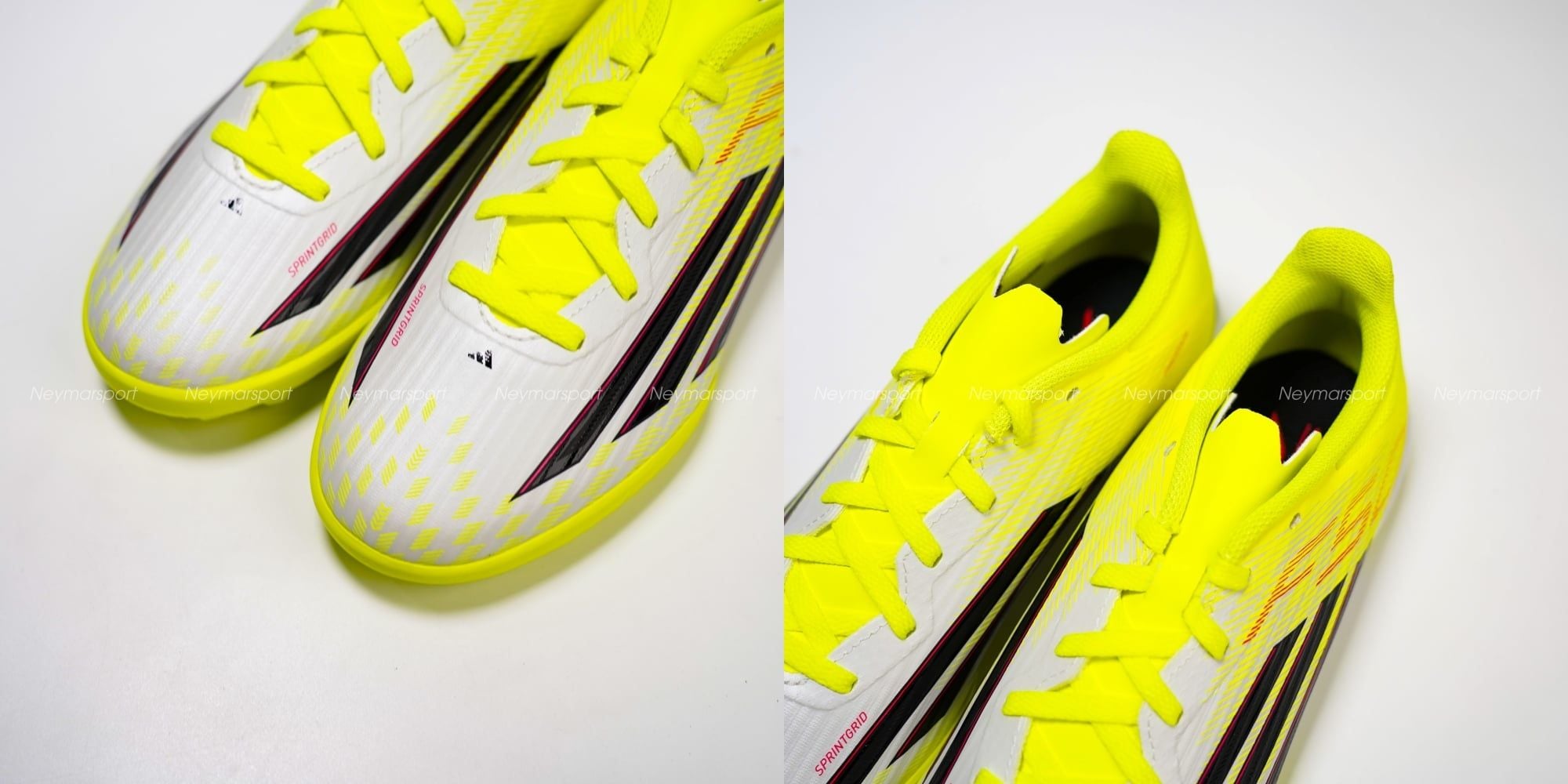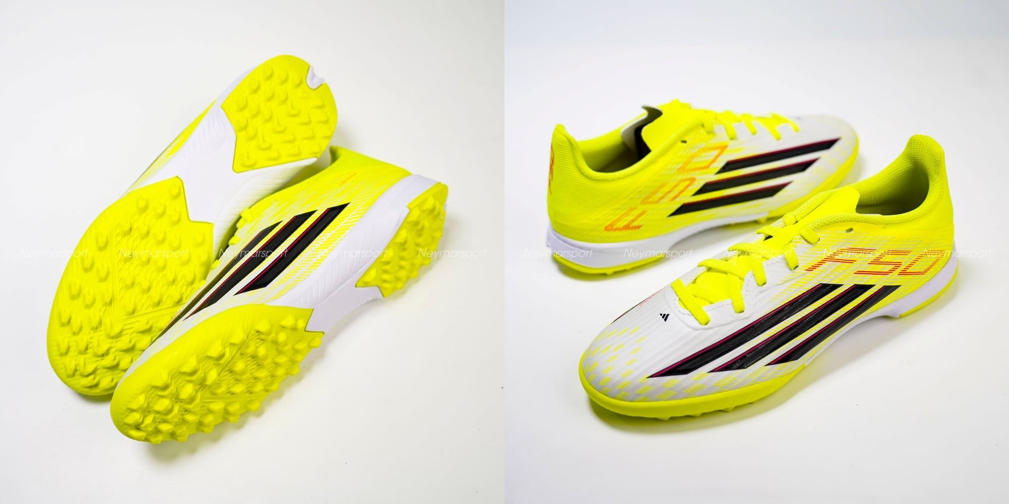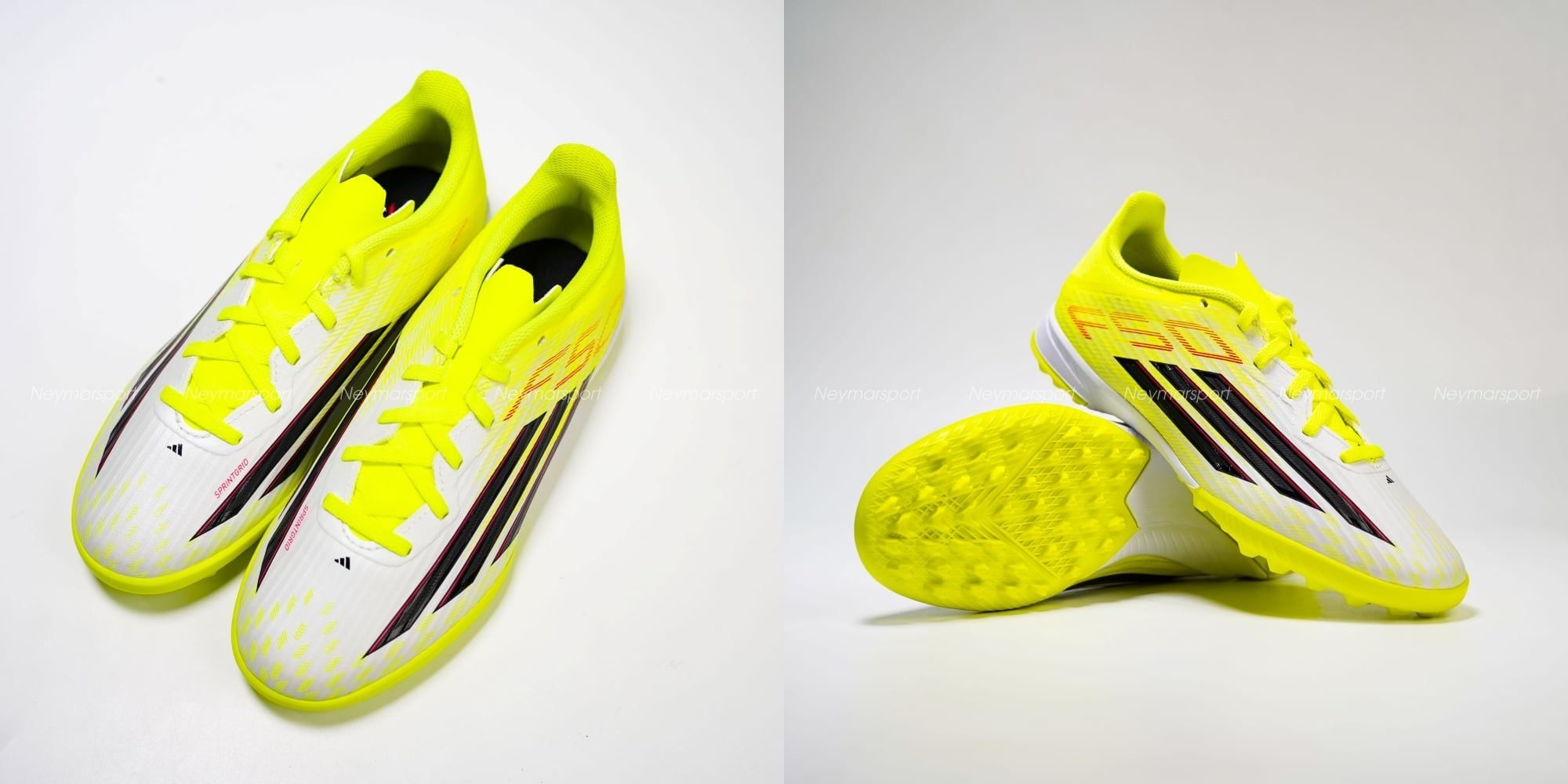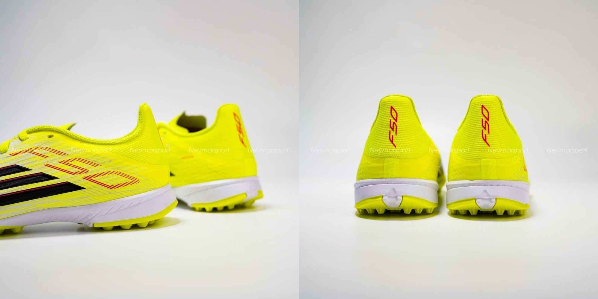 Với phối màu “Team Solar Yellow/Core Black/Lucid Red”, adidas F50 League TF 'Born For Goals' mang đến một diện mạo đầy năng động và nổi bật. Sự kết hợp giữa tông vàng chanh chủ đạo cùng các điểm nhấn màu đen và đỏ không chỉ tạo hiệu ứng thị giác mạnh mẽ, mà còn khơi gợi cảm hứng về tốc độ.