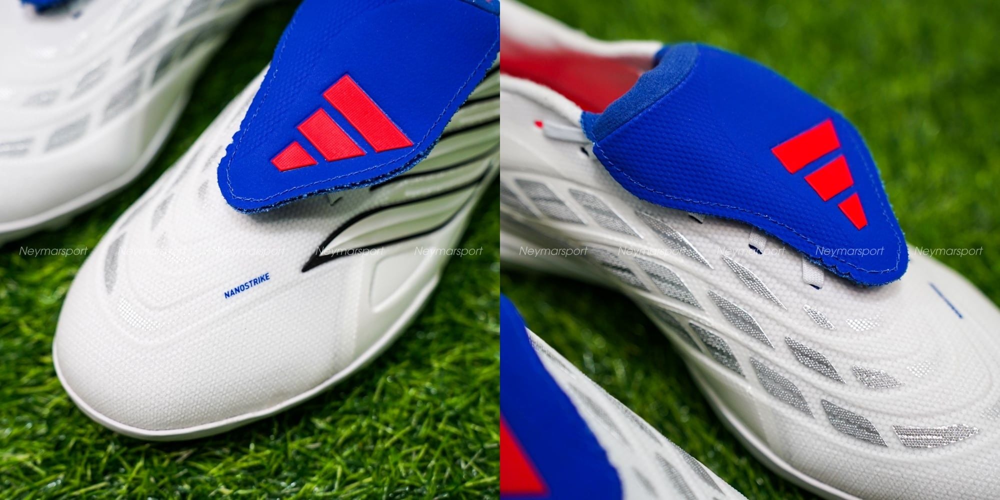 Lưỡi gà gập (Fold-over Tongue) cổ điển: Điểm nhấn đặc trưng mang tính biểu tượng của dòng Predator đã quay trở lại. Chúng không chỉ tăng tính thẩm mỹ mà còn giúp cố định dây giày, tạo vùng tiếp xúc bóng phẳng và rộng hơn ở mu bàn chân.