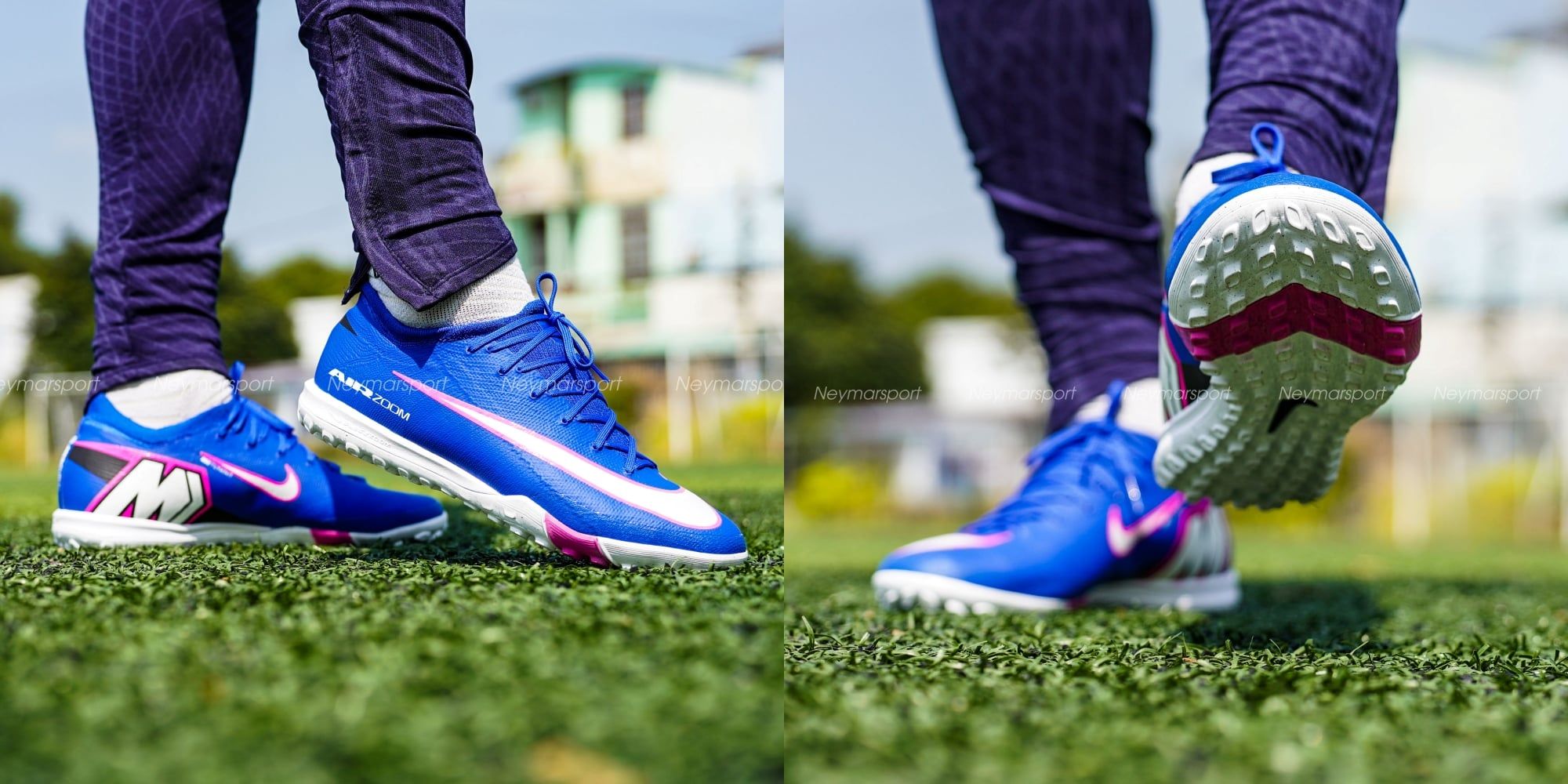 Nằm trong phân khúc cao cấp, mẫu giày đá bóng cỏ nhân tạo Nike Air Zoom Mercurial Vapor 16 Pro TF “Attack” khoác lên mình phối màu Racer Blue/White cực ngầu. Sự kết hợp giữa thân giày xanh dương đậm và bộ đế trắng thanh thoát, điểm xuyết thêm sắc hồng ở logo Swoosh tạo nên một tổng thể đầy tốc độ và cá tính cho người mang.