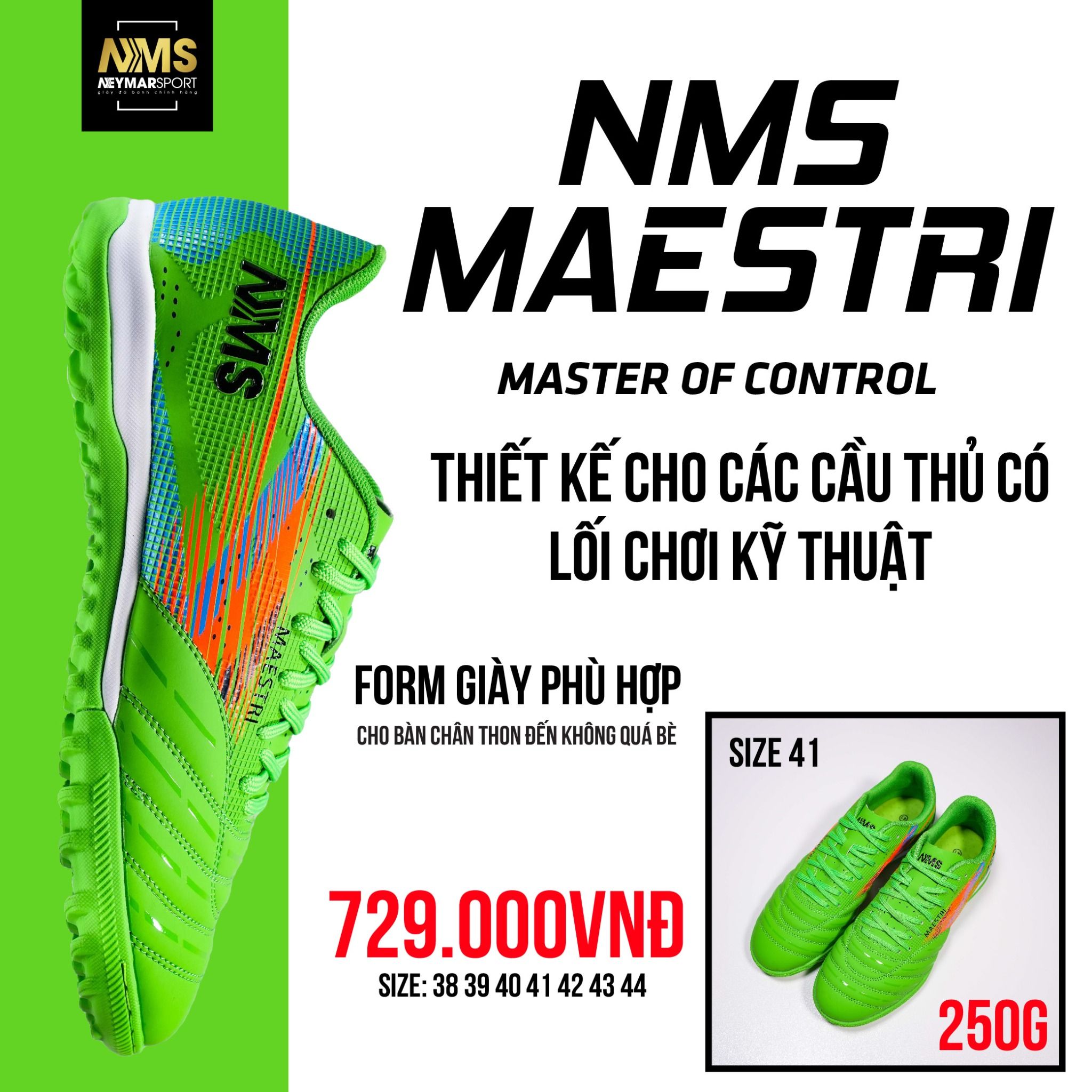 Nếu bạn là một người say mê những pha xử lý bóng mềm mại của Pirlo hay những chạm bóng tinh tế của Zidane thì đôi giày này sẽ dành cho bạn. "MAESTRI" trong tiếng Ý có nghĩa là "nhạc trưởng", 1 bậc thầy về kiểm soát bóng, 1 thủ lĩnh dẫn dắt lối chơi.