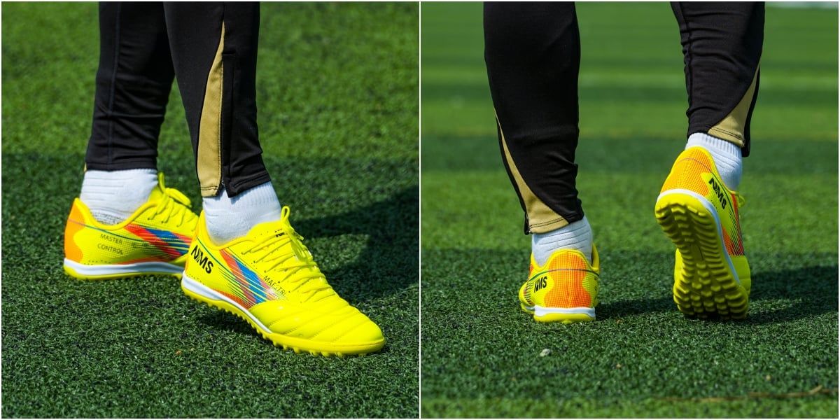 NMS MAESTRI 1.0 là một thiết kế hiện đại pha lẫn truyền thống, Toàn bộ đôi giày là 1 khối liền mạch với lưỡi gà được may bán phần 50% (xu hướng giày đá bóng mới nhất hiện tại), giúp người chơi dễ dàng xỏ vào và không bị xộc xệch trong suốt trận đấu. Phần mũi giày với chất liệu MICROFIBER cao cấp được tạo hình với những được vân nổi và xử lý "mềm như da tự nhiên", không chỉ tạo cảm giác êm ái mà còn mang lại khả năng kiểm soát bóng vượt trội. Bạn sẽ bất ngờ về độ mềm của giày ngay từ lần xỏ vào đầu tiên.