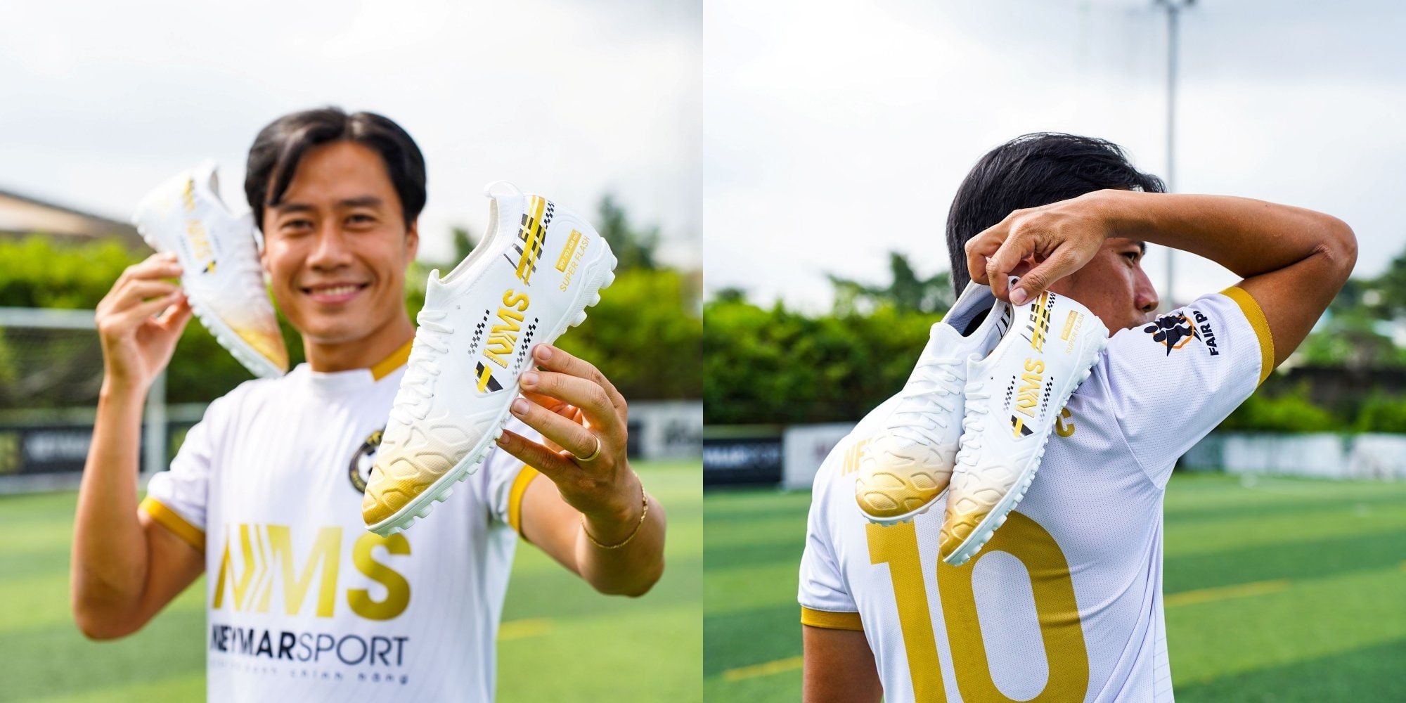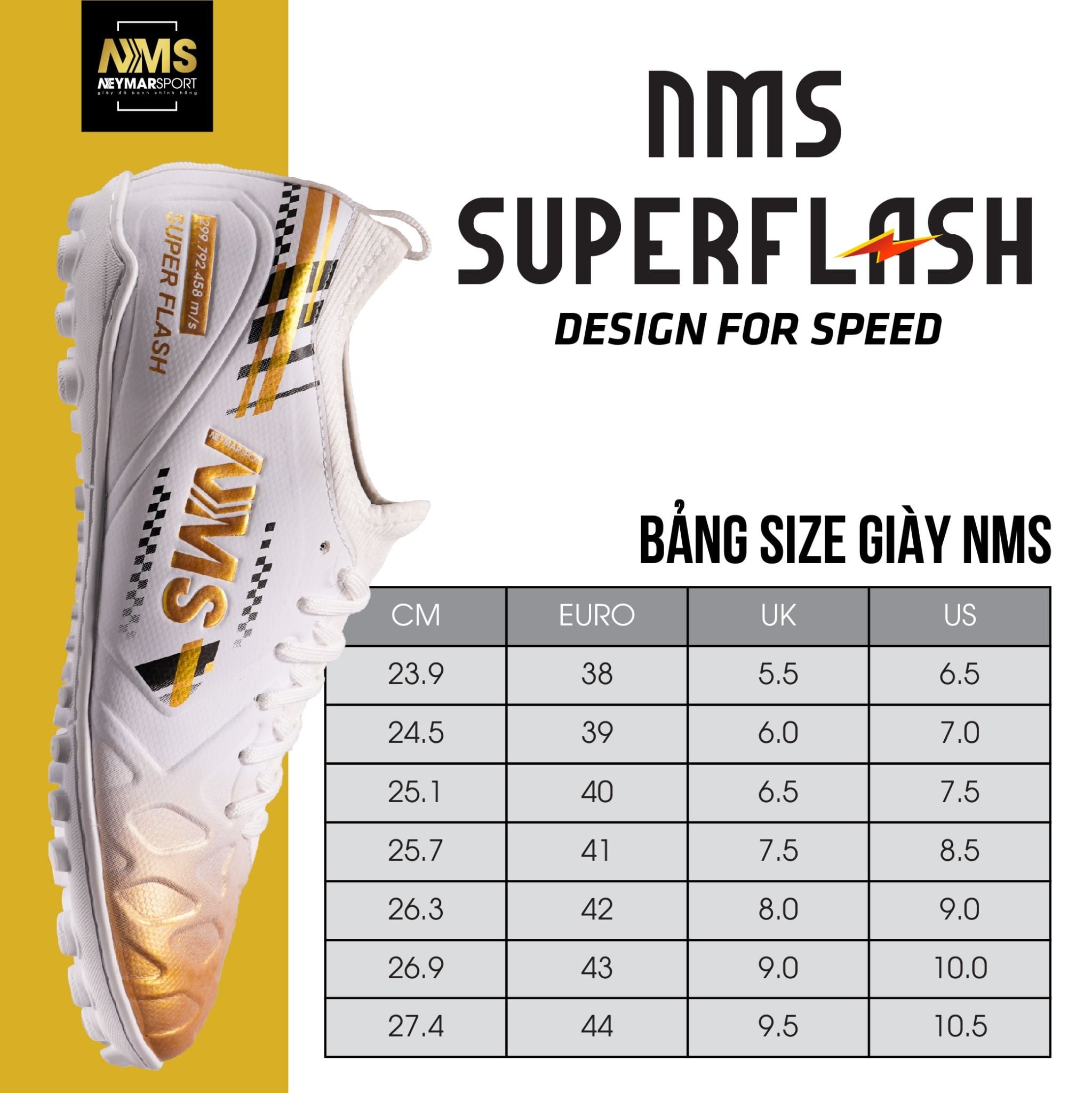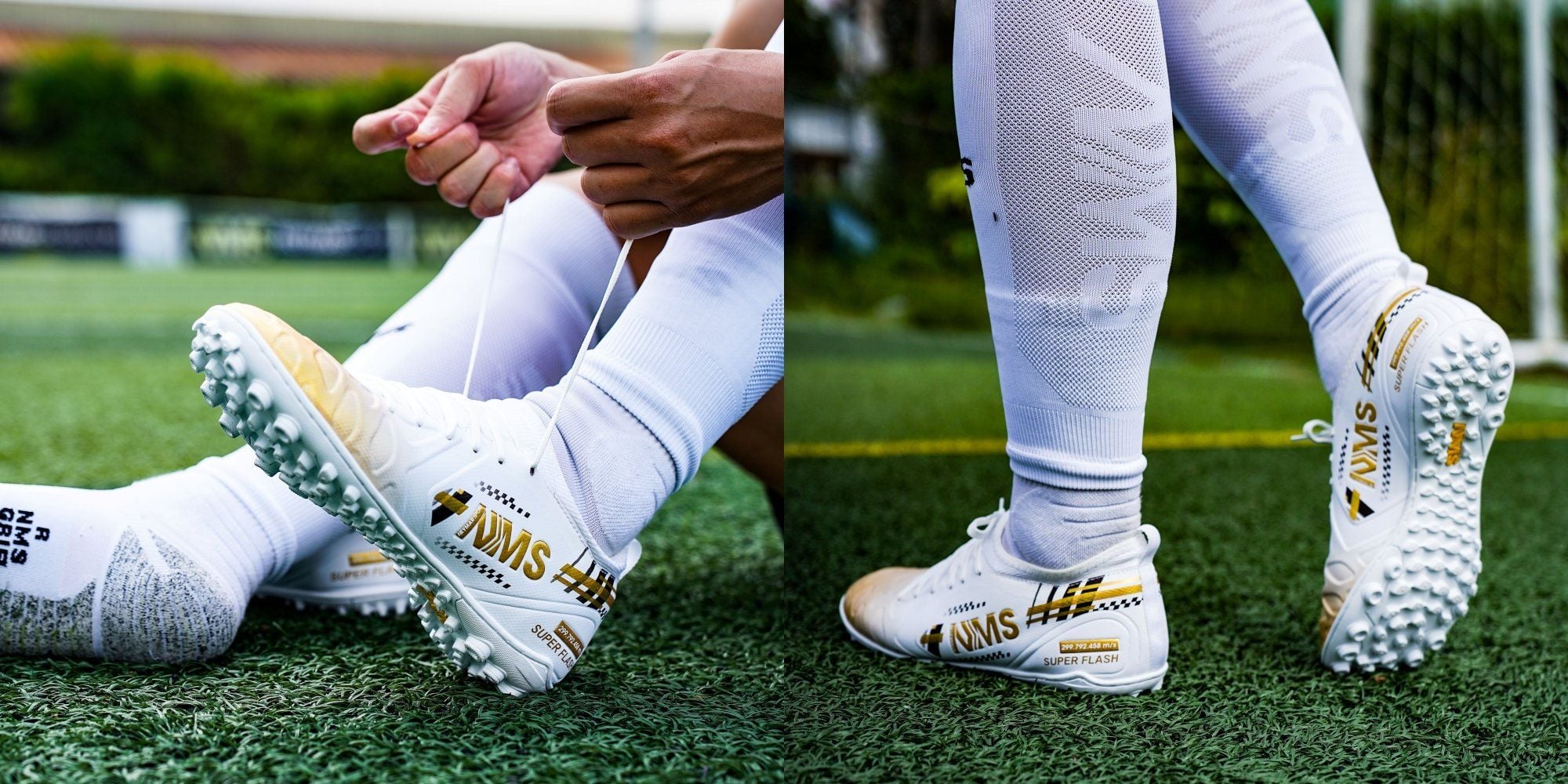 Giày đá bóng cỏ nhân tạo NMS SUPER FLASH TF - White/Gold