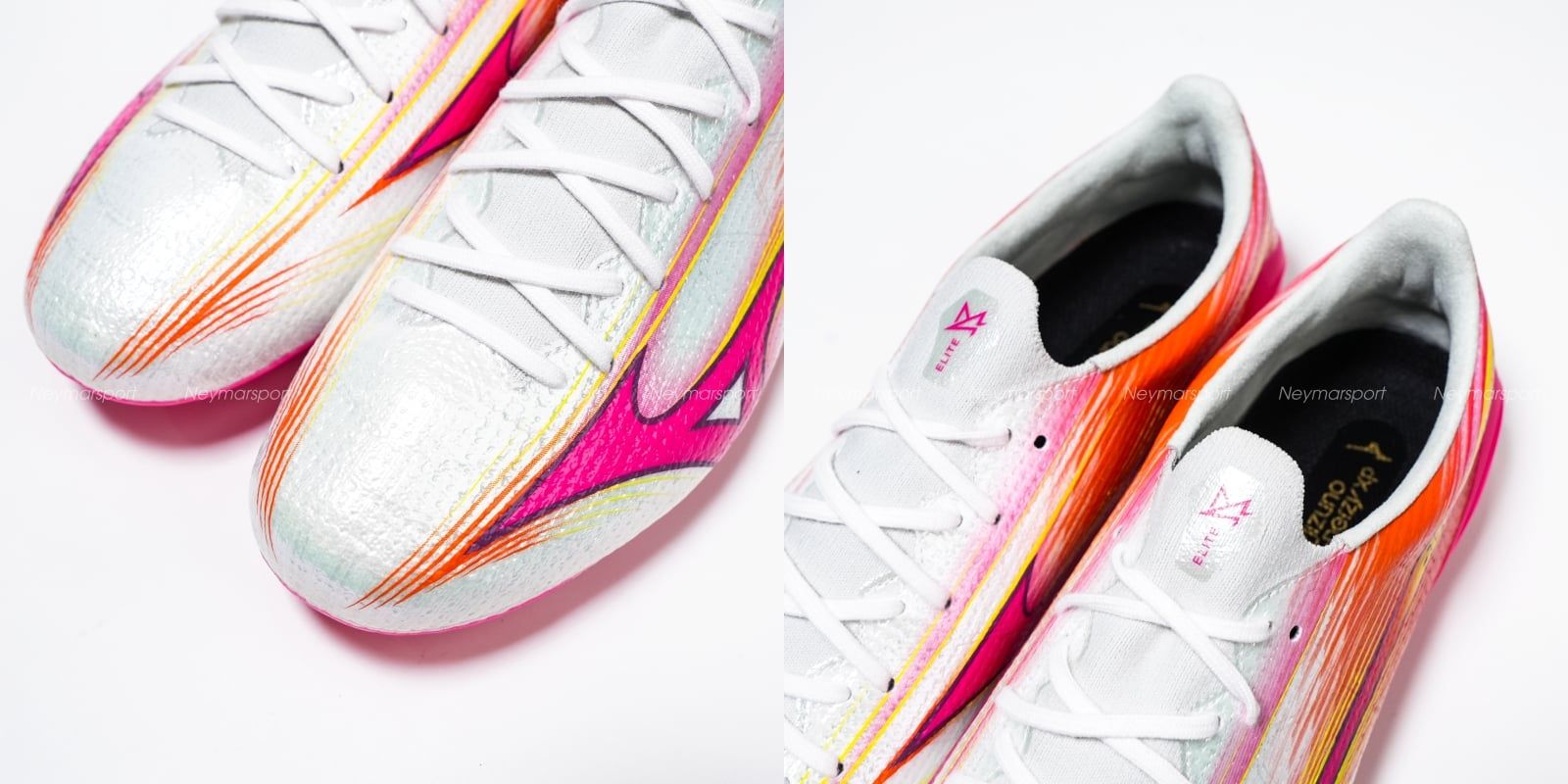 Mizuno vừa tạo nên một cơn sốt thực sự với bộ sưu tập ‘Blazing Flair’, mang đến diện mạo táo bạo và tràn đầy năng lượng cho sân cỏ. Đúng như tên gọi, thiết kế này gây ấn tượng mạnh bởi sự kết hợp độc đáo giữa các tông màu White, Pink Tetra và Fuchsia Purple, tạo nên một tổng thể đầy cuốn hút và mới mẻ.