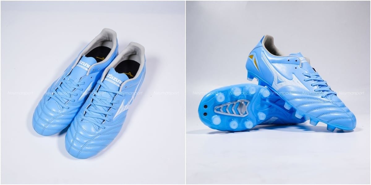 Giày đá bóng cỏ tự nhiên Mizuno Morelia Neo IV Pro FG Unity Sky - Sky Blue/White P1GA263425 là mẫu giày chuyên cho sân cỏ tự nhiên 11 người. Mẫu giày này được các cầu thủ đánh giá rất cao vì sự toàn diện, bền bỉ và hỗ trợ các cầu thủ rất tốt. Những cầu thủ có lối chơi thiên về tốc độ và mong muốn một đôi giày nhẹ, êm ái, cảm giác bóng tốt không thể bỏ qua