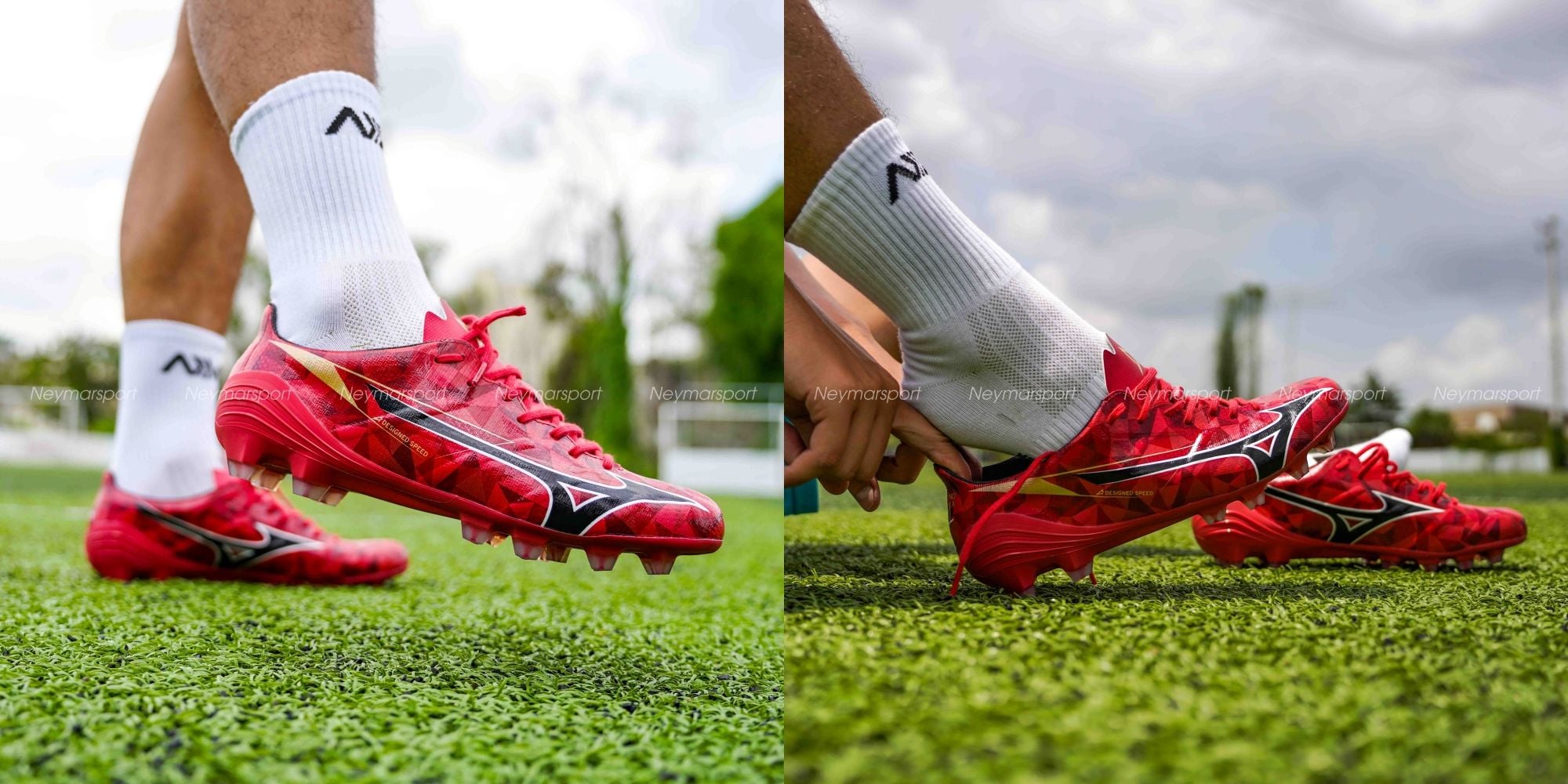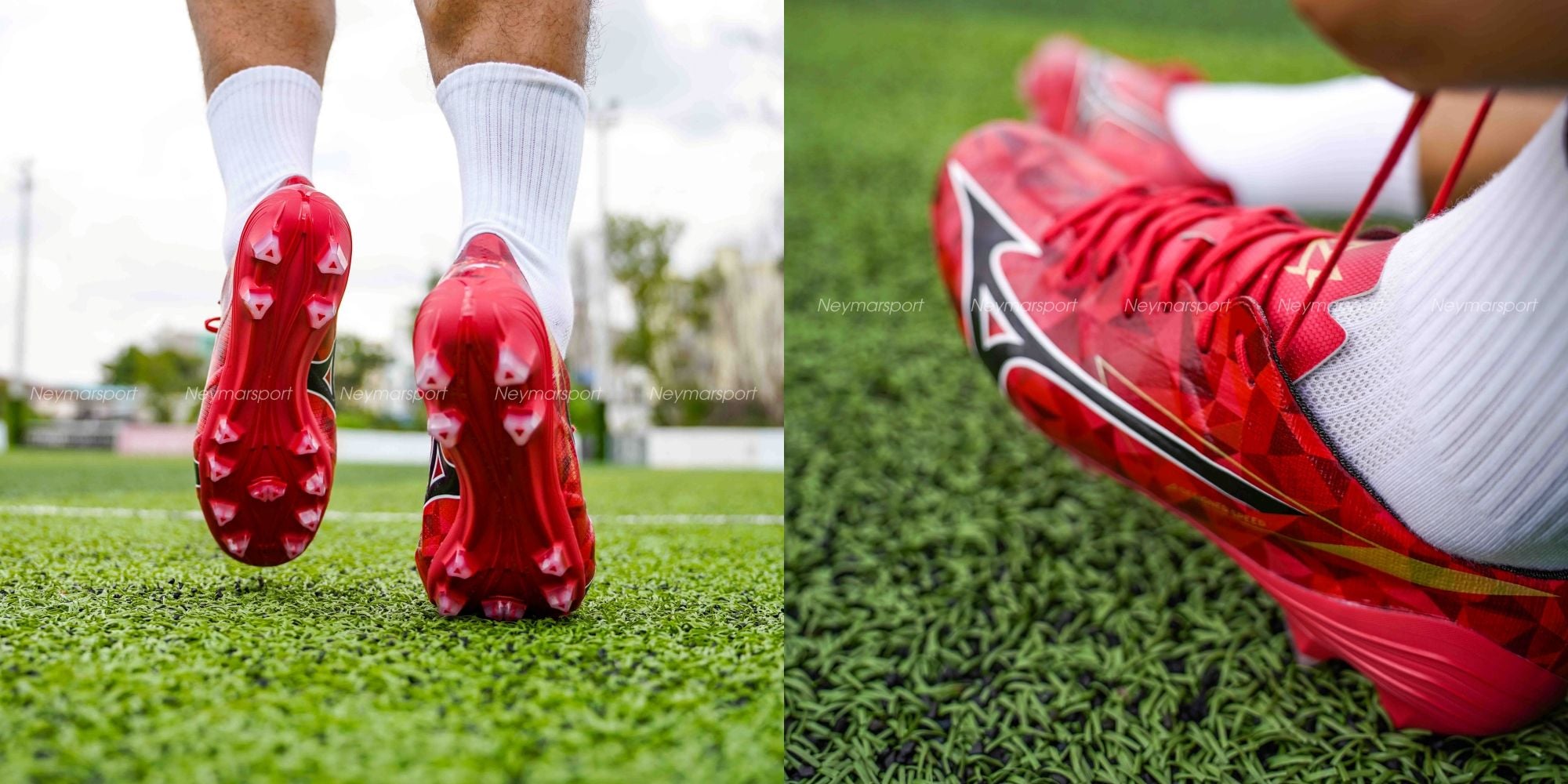 - Mizuno Alpha: Với thiết kế kỹ thuật thông minh, giày đá banh Mizuno giúp ôm chân chắc chắn và ổn định nhờ cấu trúc nhiều lớp, phù hợp cho cầu thủ tốc độ chân rộng muốn tối ưu hiệu suất trên sân.