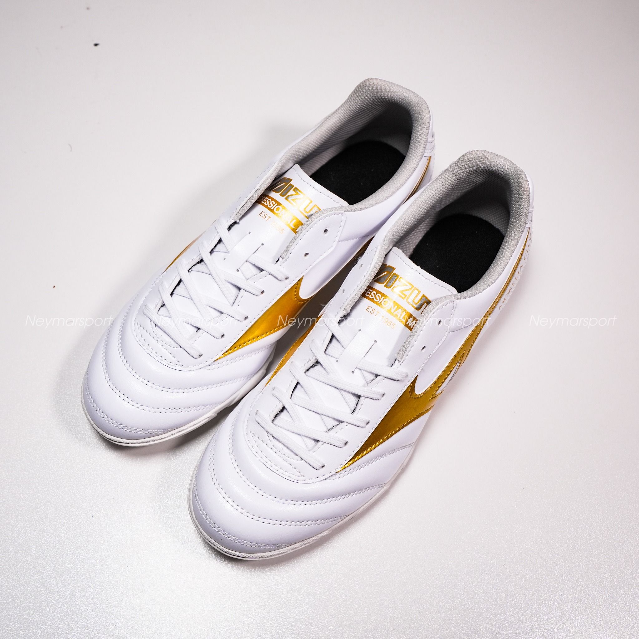 Giày đá bóng cỏ nhân tạo Mizuno Morelia II Club AS TF - White/Gold P1GD260850