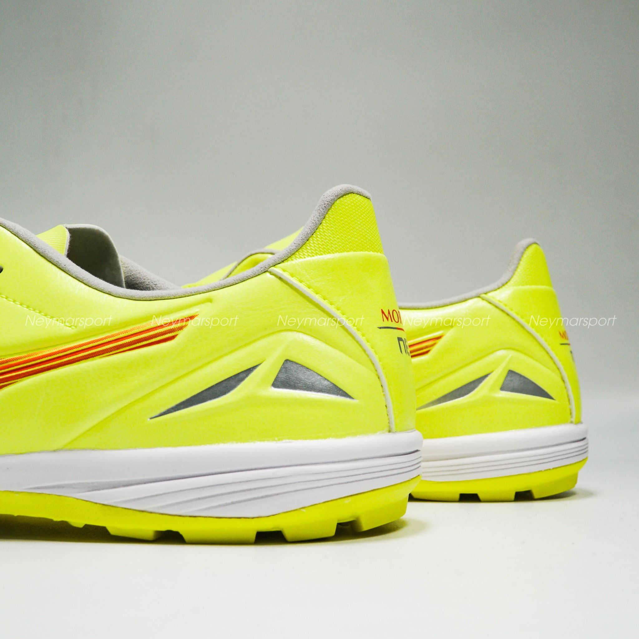 Giày đá bóng Mizuno Morelia Neo IV Pro TF Dyna - Safety Yellow/Fiery Coral P1GD243445 là mẫu giày chuyên cho sân cỏ nhân tạo 5-7 người. Mẫu giày này được các cầu thủ đánh giá rất cao vì sự toàn diện, bền bỉ và hỗ trợ các cầu thủ rất tốt. Những cầu thủ có lối chơi thiên về tốc độ và mong muốn một đôi giày nhẹ, êm ái, cảm giác bóng tốt không thể bỏ qua Giày đá bóng Mizuno Morelia Neo IV Pro TF Dyna - Safety Yellow/Fiery Coral P1GD243445.
