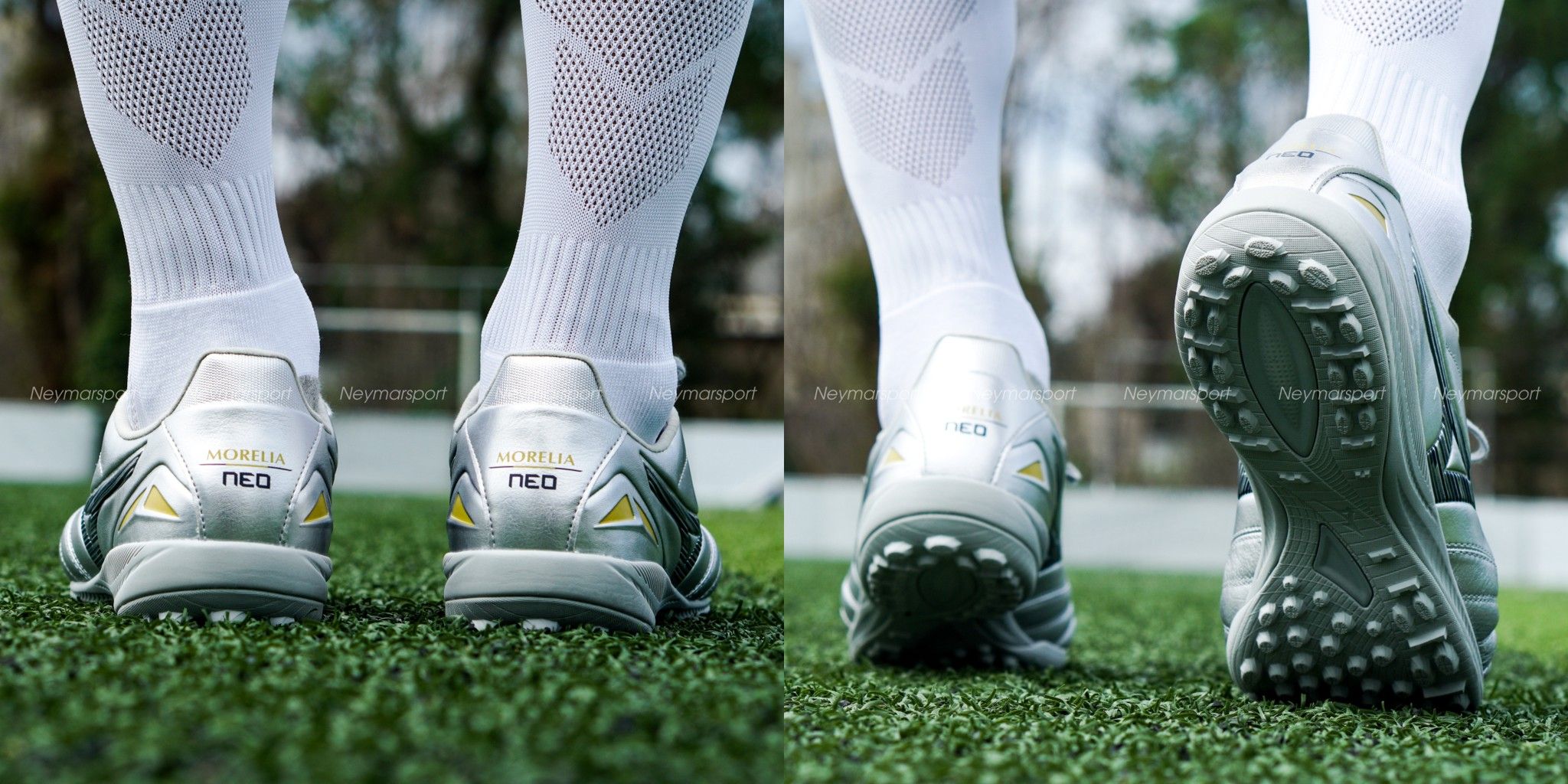- Là mẫu giày thuộc phân khúc cao cấp, Morelia Neo IV Pro AS được trang bị lớp đệm giảm chấn cao cấp, tạo sự êm ái thoải mái cho các cầu thủ trong suốt trận đấu dù mặt sân không được đảm bảo.