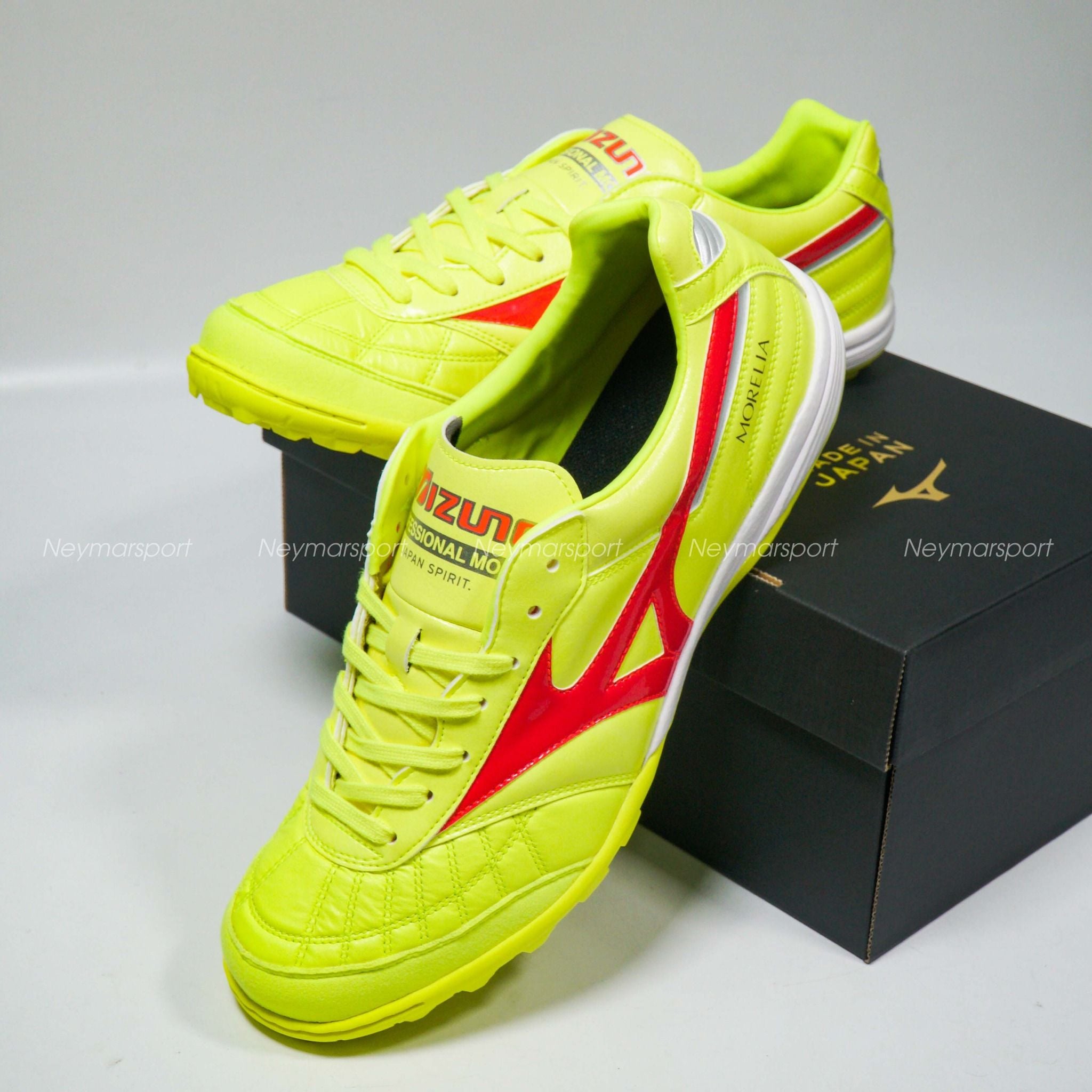 Giày đá bóng Mizuno Morelia Sala Made in Japan TF Dyna - Safety Yellow/Fiery Coral Q1GB240045 là dòng sản phẩm cao cấp nhất của MIZUNO dành cho sân cỏ nhân tạo 5-7 người được sản xuất tại Nhật Bản.