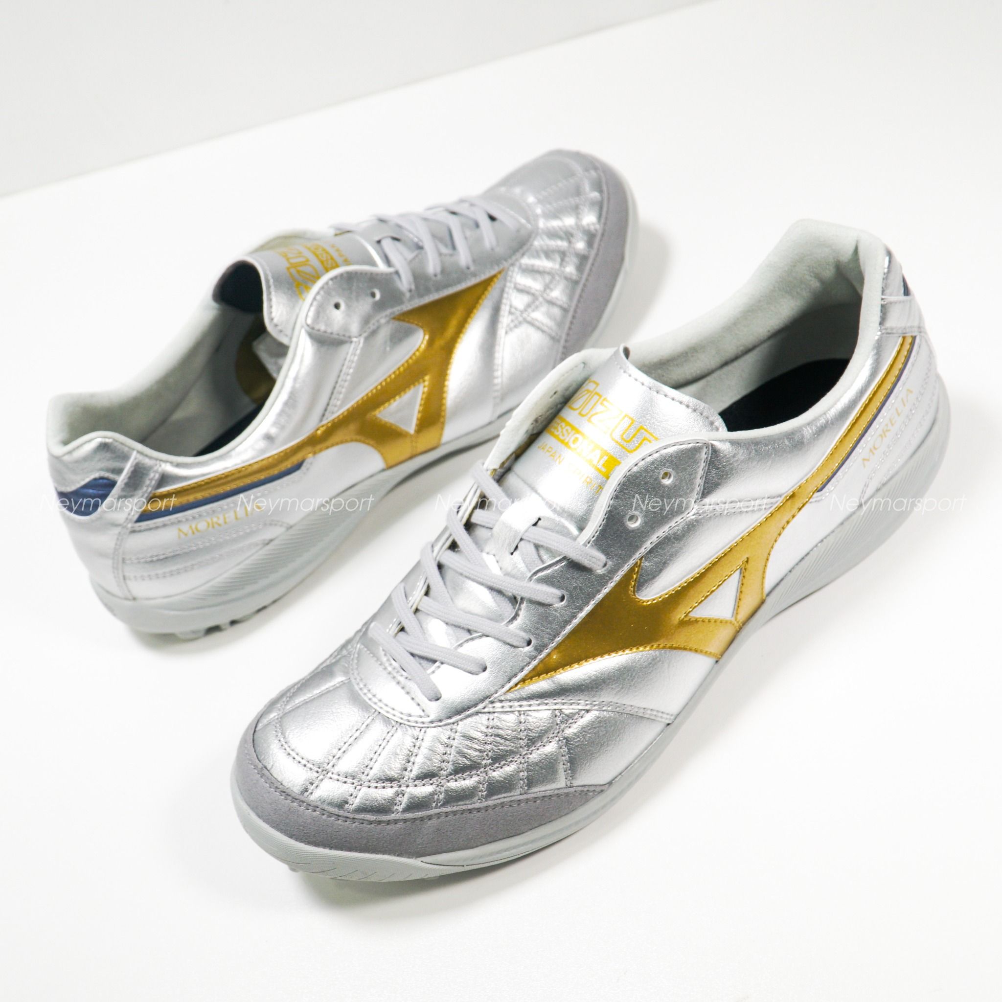 Giày đá bóng Mizuno Morelia Sala MADE IN JAPAN TF Platinum Silver - Galaxy Silver/Cool Gray Q1GB251104 là dòng sản phẩm cao cấp nhất của MIZUNO dành cho sân cỏ nhân tạo 5-7 người được sản xuất tại Nhật Bản.