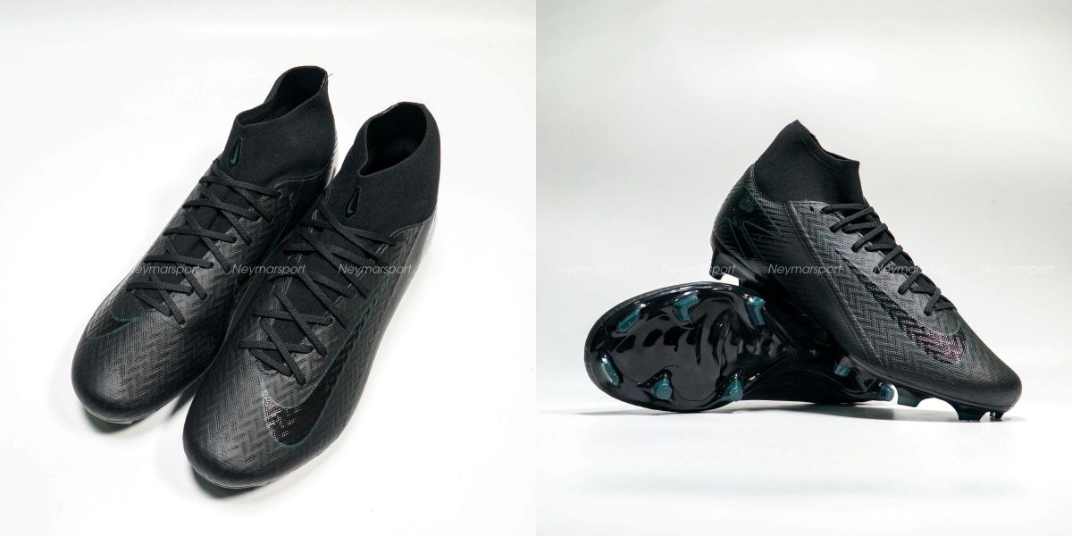 Giày đá bóng Nike Air Zoom Mercurial Superfly 10 Academy MG Shadow - Black/Deep Jungle FQ1456-002 là phiên bản giày phổ thông dành chuyên cho sân cỏ tự nhiên 11 người. Nike Mercurial 2024 'Shadow' là điểm nhấn của bộ sưu tập, với thiết kế tối giản nhưng vẫn giữ được nét đặc trưng của dòng giày tốc độ. Phiên bản này được khoác lên mình màu đen chủ đạo, điểm xuyết bởi những đường viền màu xanh lục đậm (Deep Jungle) trên logo Swoosh và dòng chữ "AIR", tạo nên sự tương phản ấn tượng.