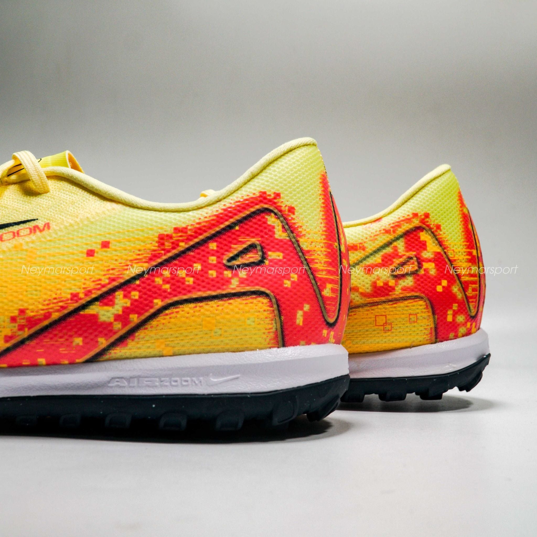 Giày đá bóng Nike Air Zoom Mercurial Vapor 16 Academy TF Mbappé Personal Edition - Laser Orange/Armory Navy FQ8384-800 là mẫu giày phổ thông dành cho sân cỏ nhân taọ 5-7 người. Nike Mercurial Mbappe 2024-25 gây ấn tượng mạnh mẽ ngay từ cái nhìn đầu tiên với phối màu chủ đạo là cam sáng (Lt Laser Orange) kết hợp cùng các chi tiết màu xanh navy đậm (Armory Navy) đầy tinh tế. Sự kết hợp táo bạo này không chỉ mang đến vẻ ngoài nổi bật, thu hút mọi ánh nhìn trên sân cỏ mà còn thể hiện rõ cá tính mạnh mẽ, đầy tốc độ của Kylian Mbappé.