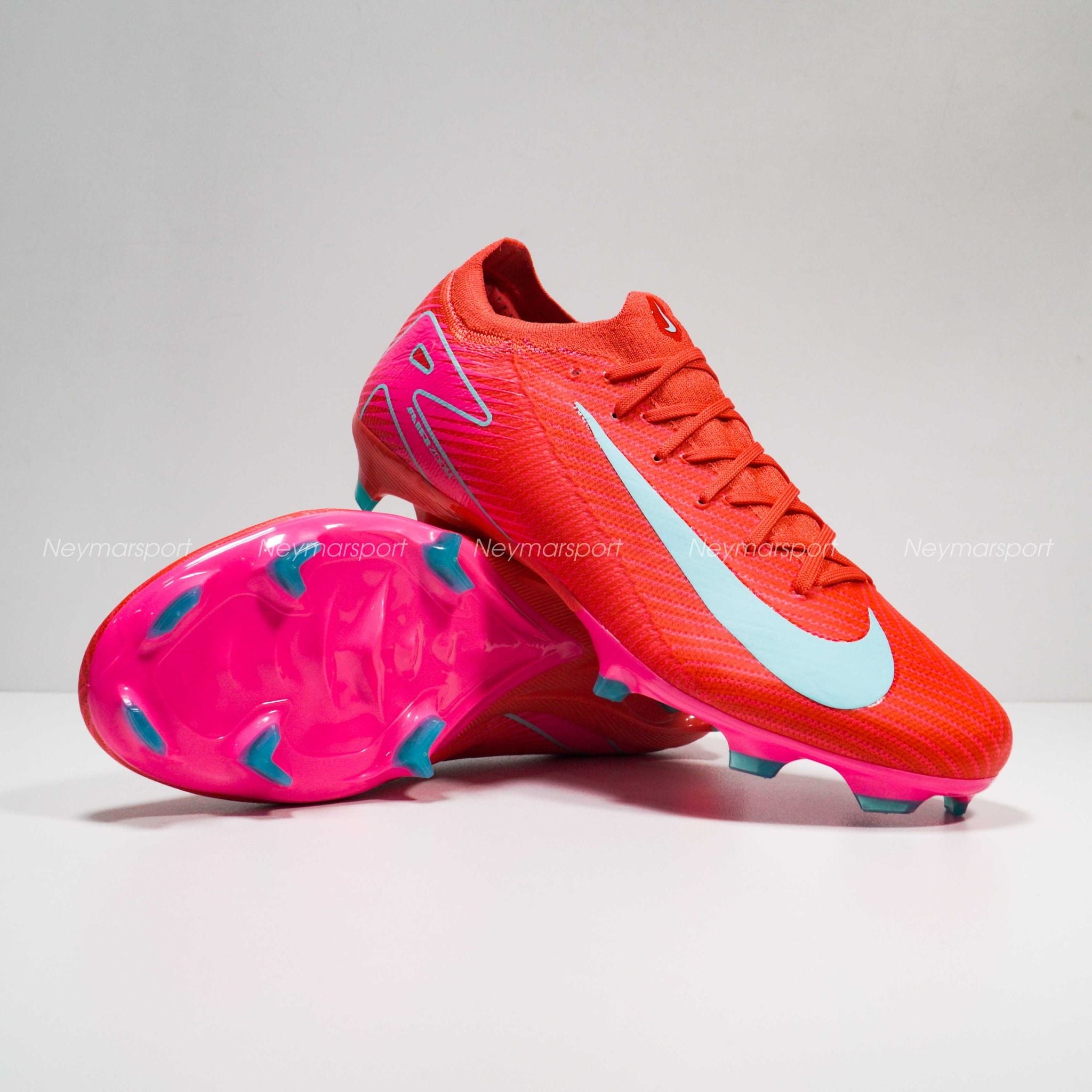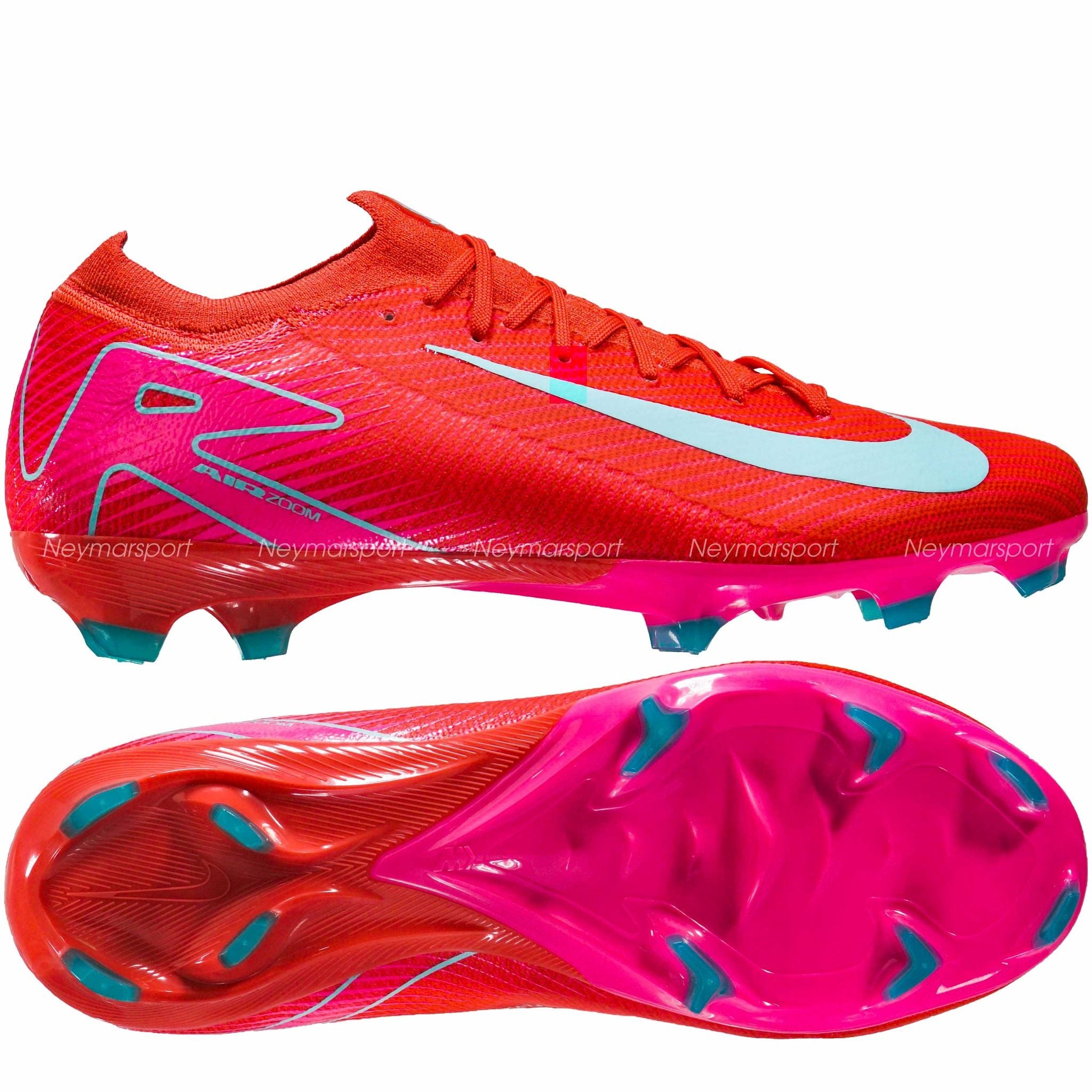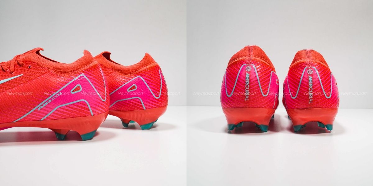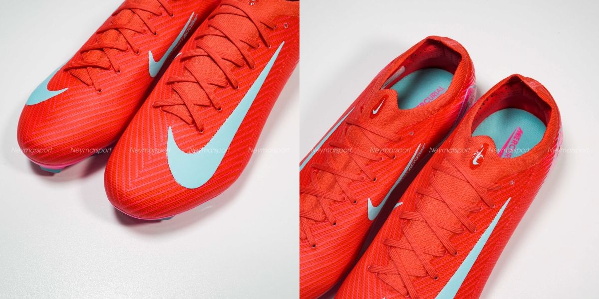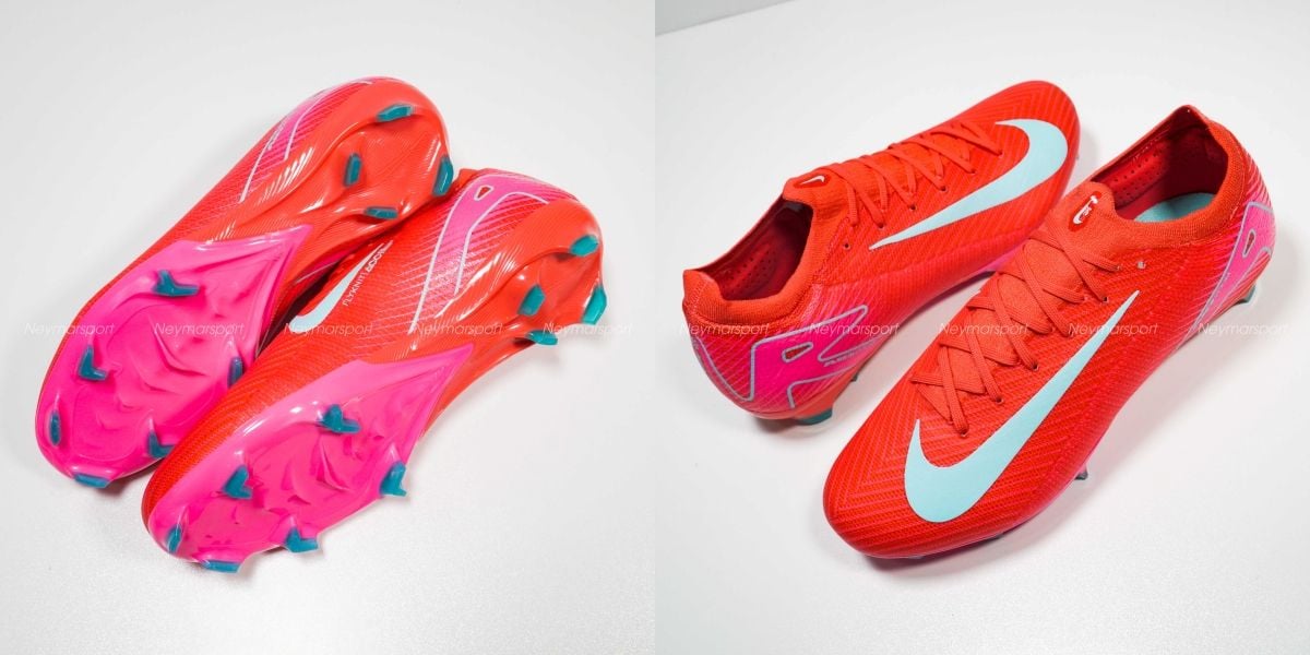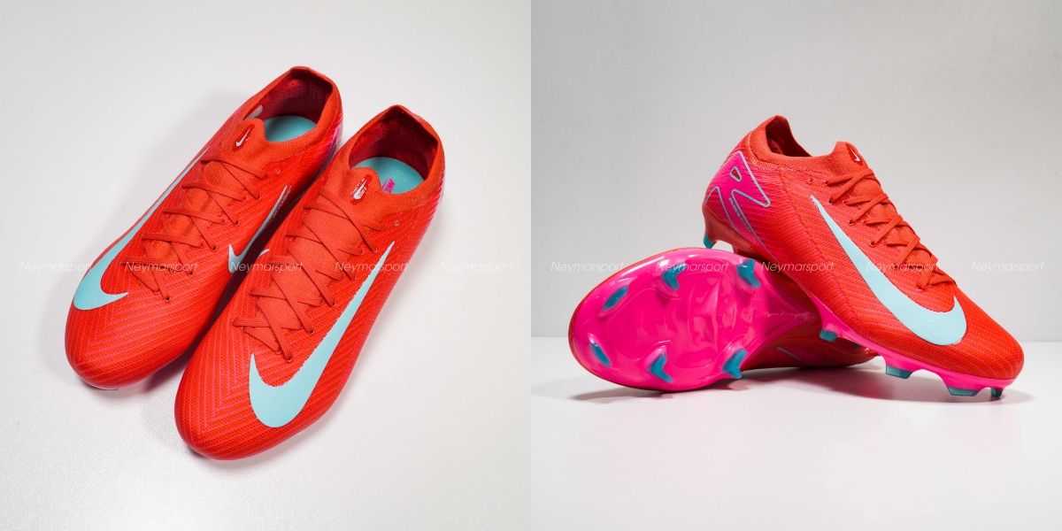 Giày đá bóng Nike Air Zoom Mercurial Vapor 16 Elite FG Mad Energy - Ember Glow/Aurora Green FQ1457-800 là mẫu giày cao cấp dành cho sân cỏ tự nhiên 11 người. Phối màu Ember Glow/Aurora Green mang đến cho Nike Mercurial 2025 một vẻ ngoài đầy cá tính và thu hút. Swoosh màu xanh bạc hà nổi bật trên nền hồng đỏ chủ đạo, tạo nên sự tương phản mạnh mẽ, khẳng định phong cách riêng biệt cho người mang. Đây chắc chắn sẽ là lựa chọn hoàn hảo cho những cầu thủ ưa thích sự nổi bật và muốn thể hiện cá tính trên sân cỏ.