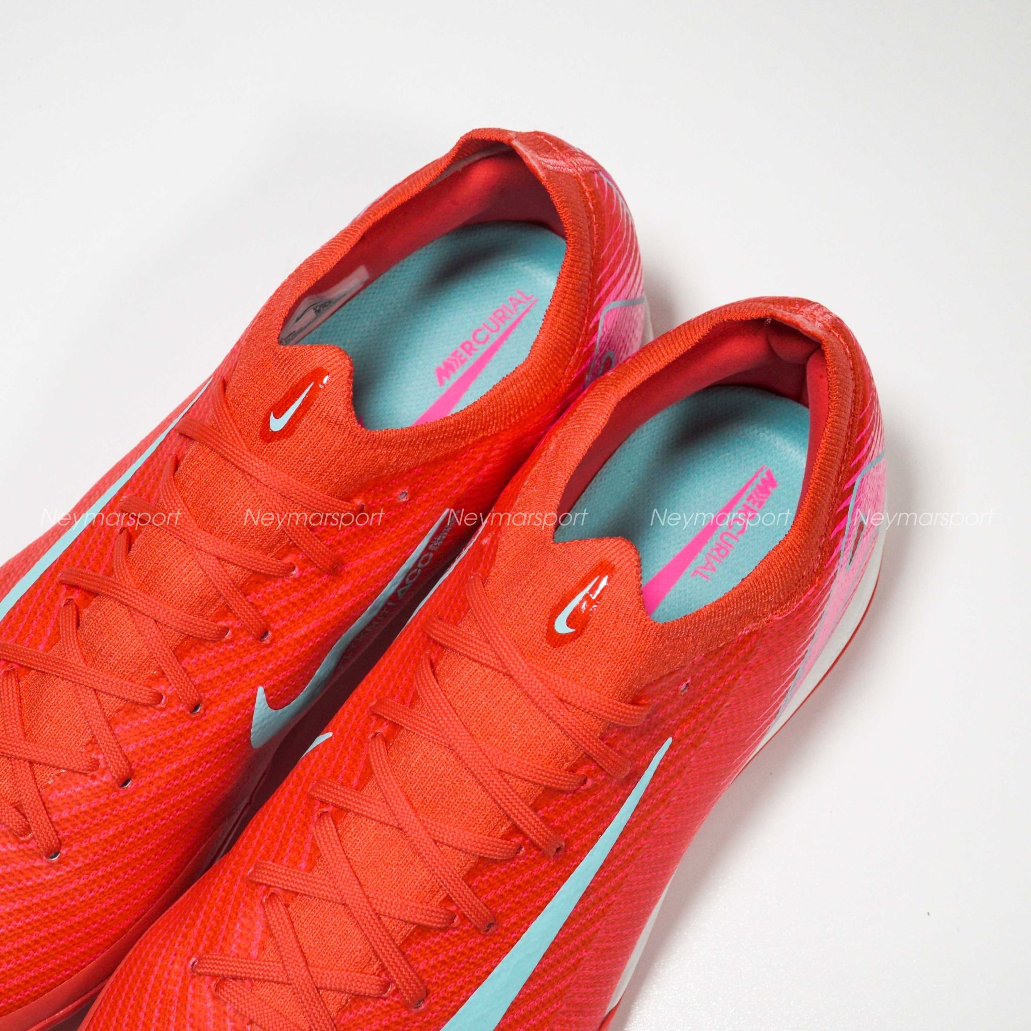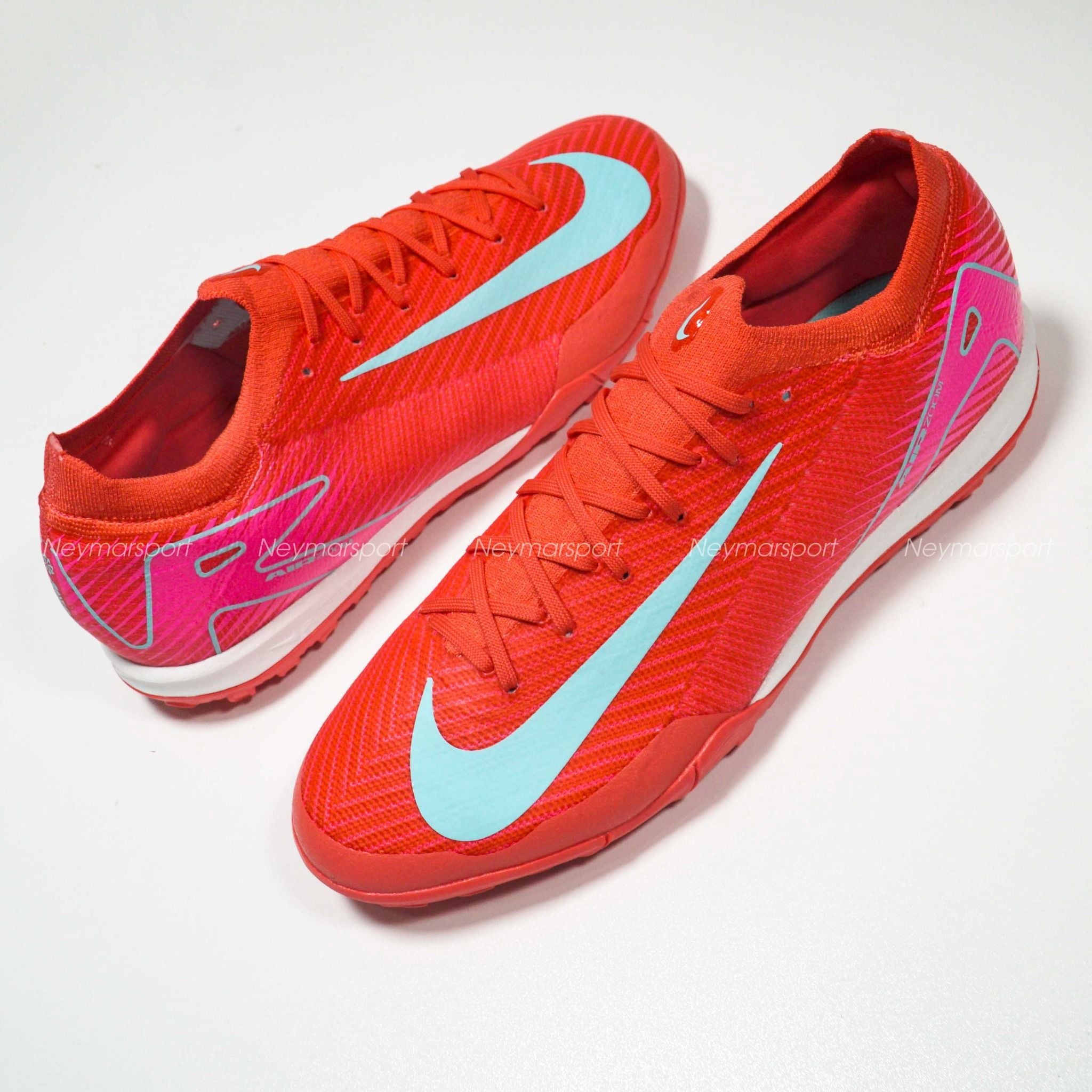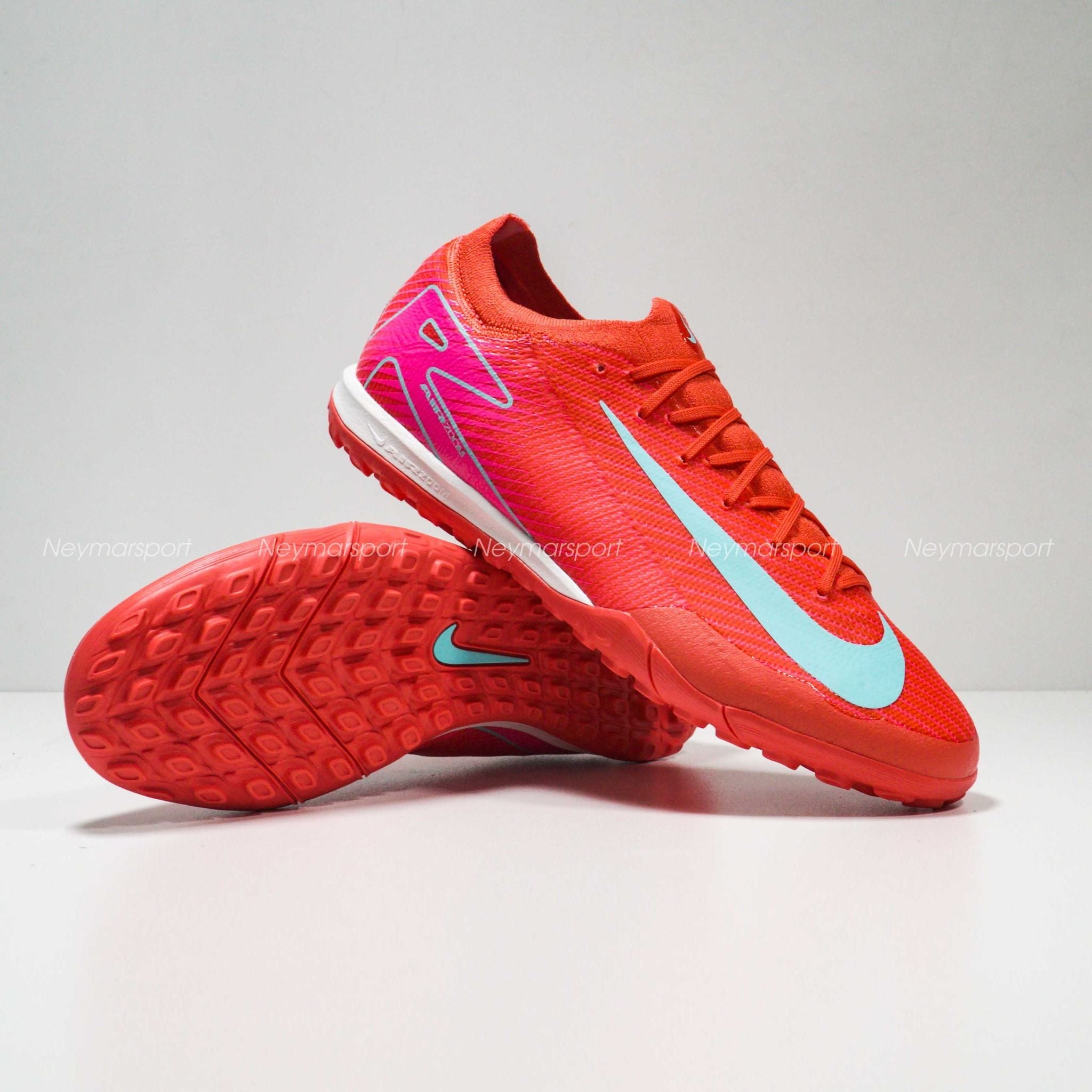 Giày đá bóng Nike Air Zoom Mercurial Vapor 16 Pro TF Mad Energy - Ember Glow/Aurora Green FQ8687-800 là mẫu giày cao cấp dành cho sân cỏ nhân taọ 5-7 người. Phối màu Ember Glow/Aurora Green mang đến cho Nike Mercurial 2025 một vẻ ngoài đầy cá tính và thu hút. Swoosh màu xanh bạc hà nổi bật trên nền hồng đỏ chủ đạo, tạo nên sự tương phản mạnh mẽ, khẳng định phong cách riêng biệt cho người mang. Đây chắc chắn sẽ là lựa chọn hoàn hảo cho những cầu thủ ưa thích sự nổi bật và muốn thể hiện cá tính trên sân cỏ.