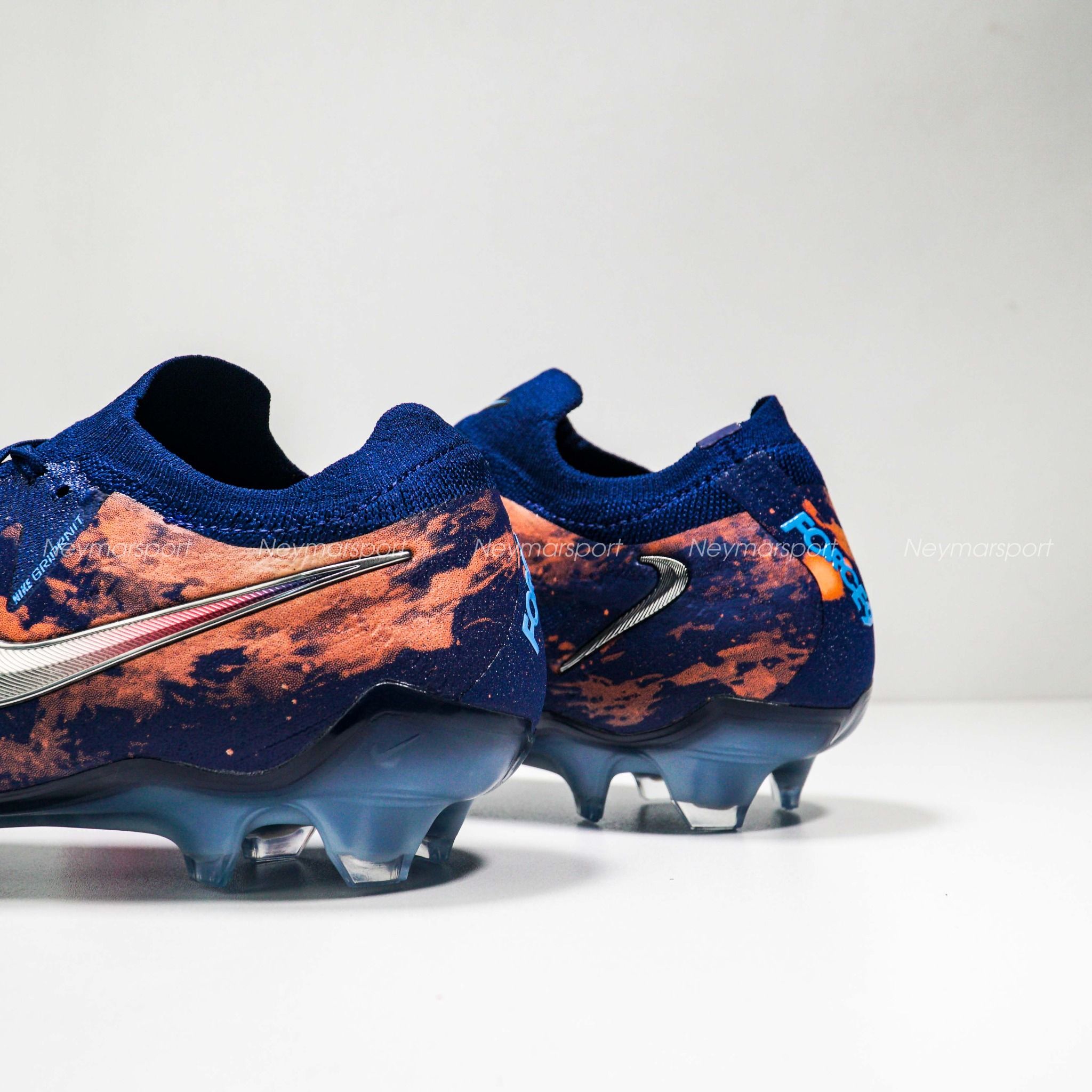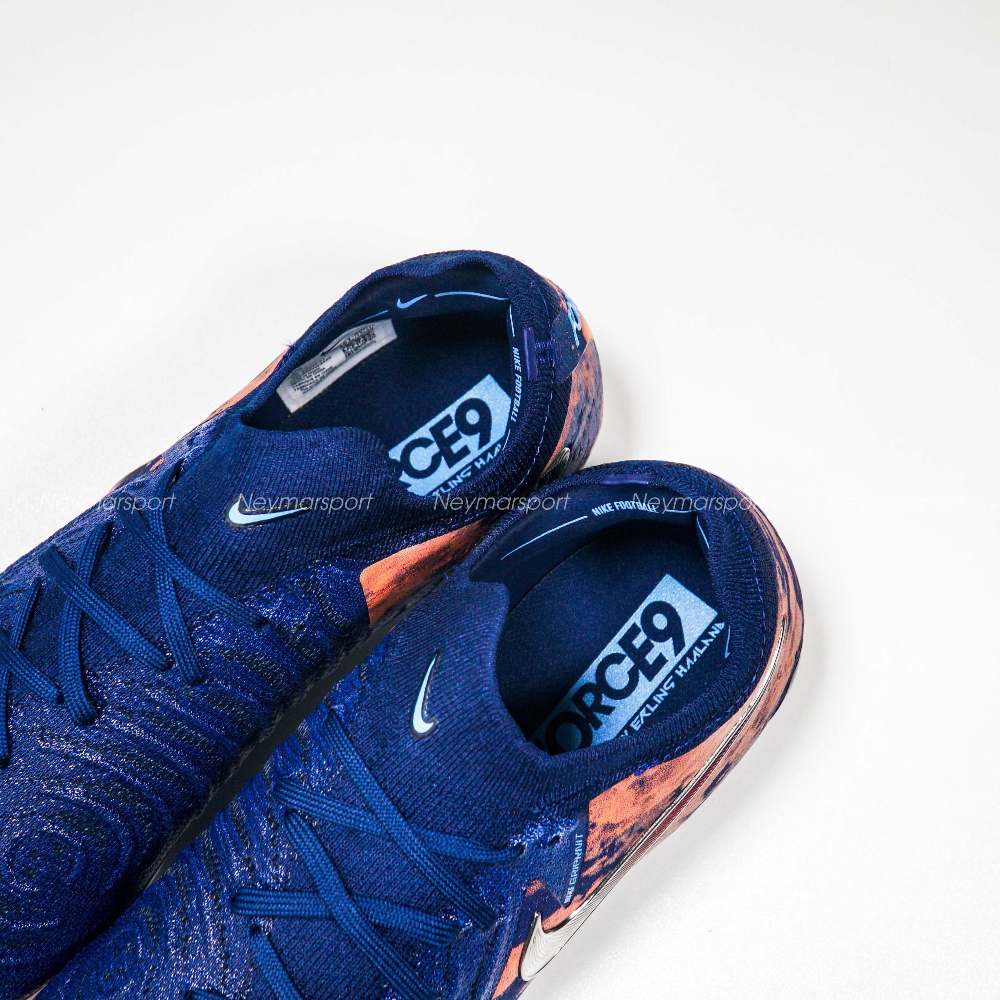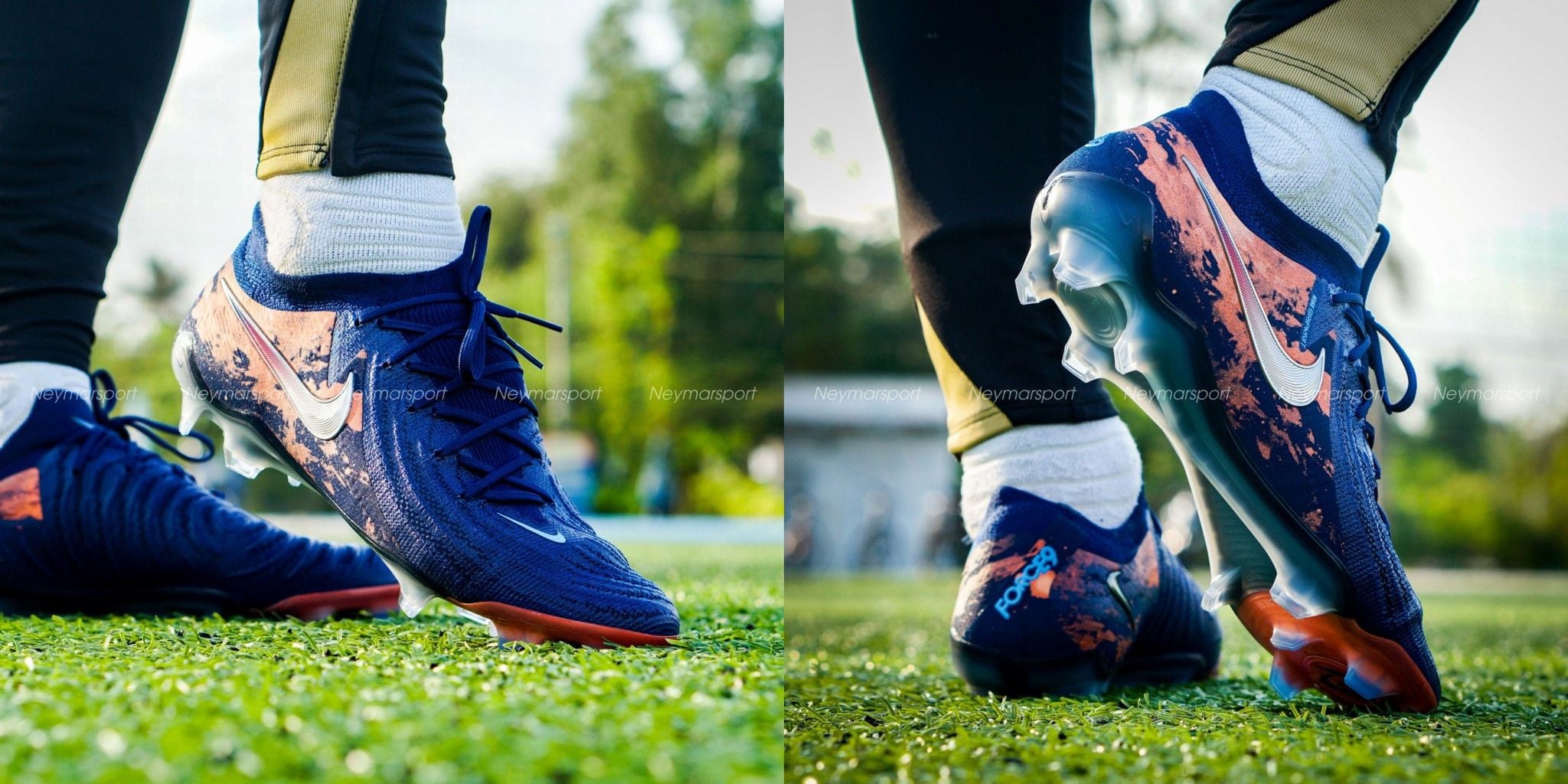 Giày đá bóng Nike Phantom GX II Elite FG Erling Haaland Personal Edition - Blue Void/Chrome LIMITED EDITION HF6361-400 là phiên bản cao cấp dành chuyên cho sân cỏ tự nhiên 11 người. Phiên bản Phantom GX 2 Haaland 2025 sở hữu phối màu "Blue Void/Chrome" đầy mê hoặc. Sắc xanh biển đậm ("Blue Void") tượng trưng cho băng giá, kết hợp cùng các chi tiết màu chrome sáng bóng và điểm nhấn màu đỏ rực rỡ, tạo nên một tổng thể vừa mạnh mẽ, vừa tinh tế. Điểm nhấn đặc biệt nằm ở logo Swoosh chrome chuyển dần sang màu đỏ ở phần đuôi, cùng họa tiết "núi lửa" đỏ rực trên thân giày, lấy cảm hứng từ núi lửa Beerenberg – ngọn núi lửa đang hoạt động duy nhất tại Na Uy.