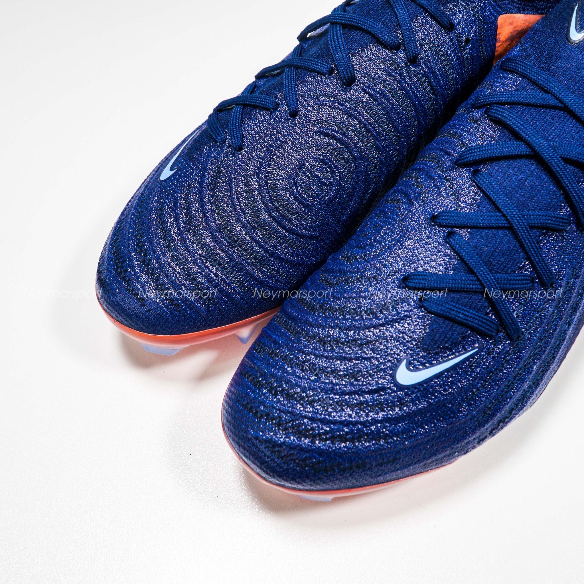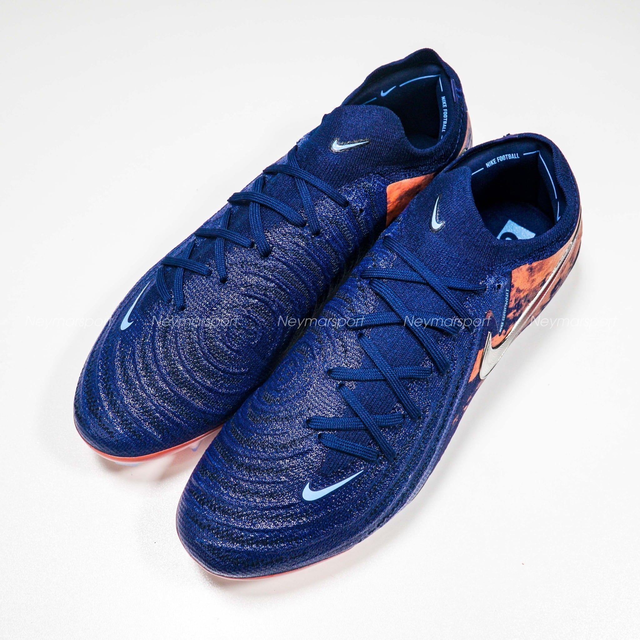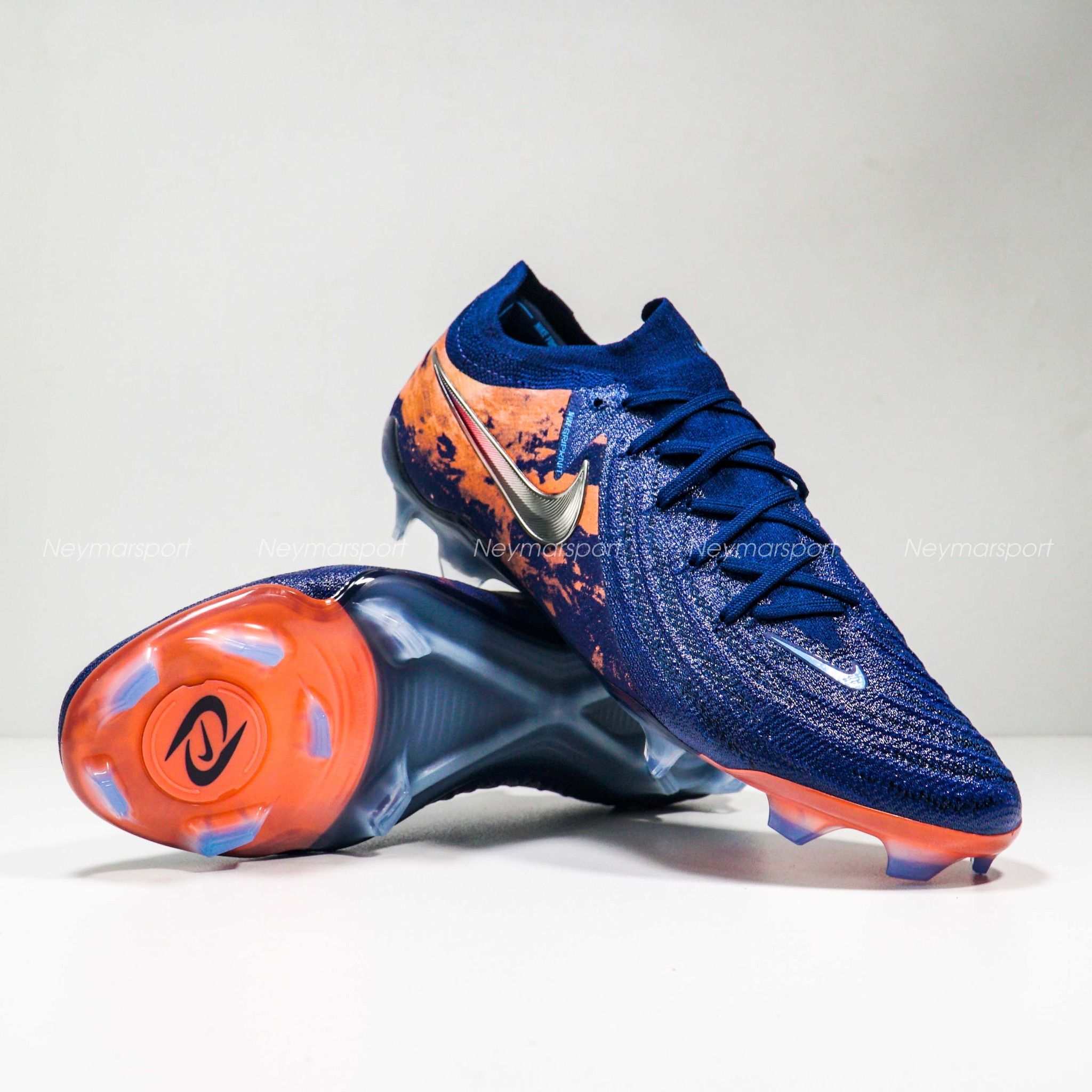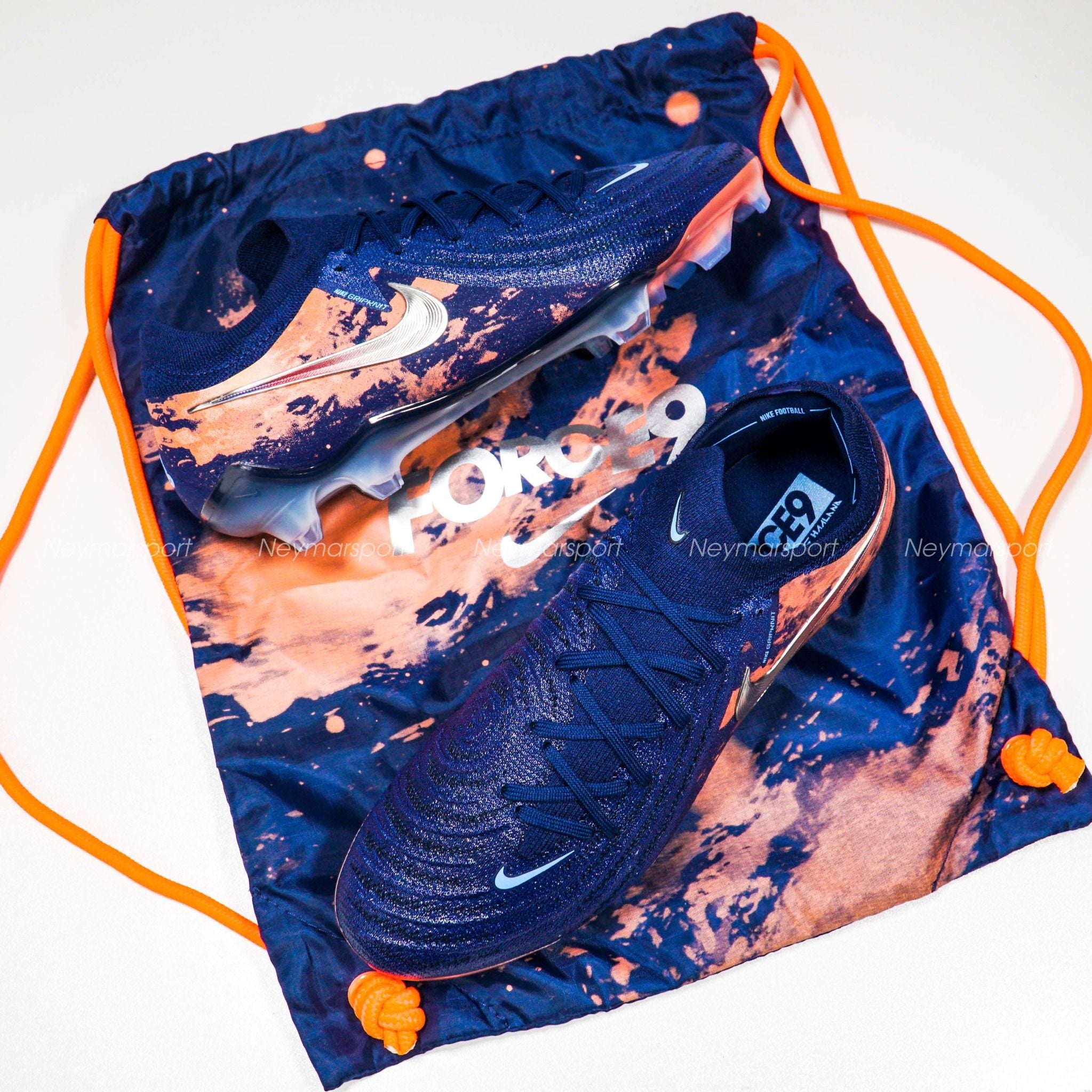 Giày đá bóng Nike Phantom GX II Elite FG Erling Haaland Personal Edition - Blue Void/Chrome LIMITED EDITION HF6361-400 là phiên bản cao cấp dành chuyên cho sân cỏ tự nhiên 11 người. Phiên bản Phantom GX 2 Haaland 2025 sở hữu phối màu "Blue Void/Chrome" đầy mê hoặc. Sắc xanh biển đậm ("Blue Void") tượng trưng cho băng giá, kết hợp cùng các chi tiết màu chrome sáng bóng và điểm nhấn màu đỏ rực rỡ, tạo nên một tổng thể vừa mạnh mẽ, vừa tinh tế. Điểm nhấn đặc biệt nằm ở logo Swoosh chrome chuyển dần sang màu đỏ ở phần đuôi, cùng họa tiết "núi lửa" đỏ rực trên thân giày, lấy cảm hứng từ núi lửa Beerenberg – ngọn núi lửa đang hoạt động duy nhất tại Na Uy.