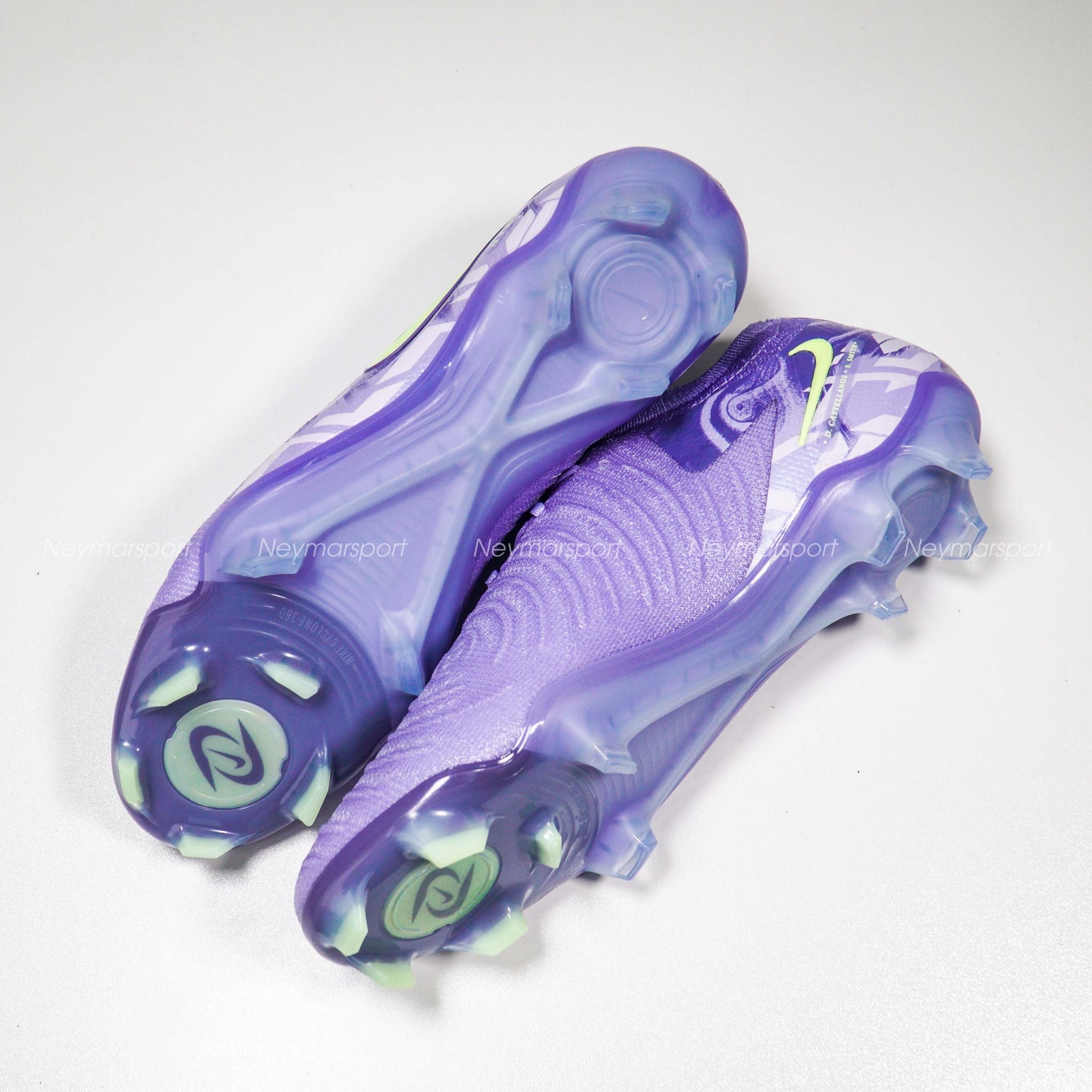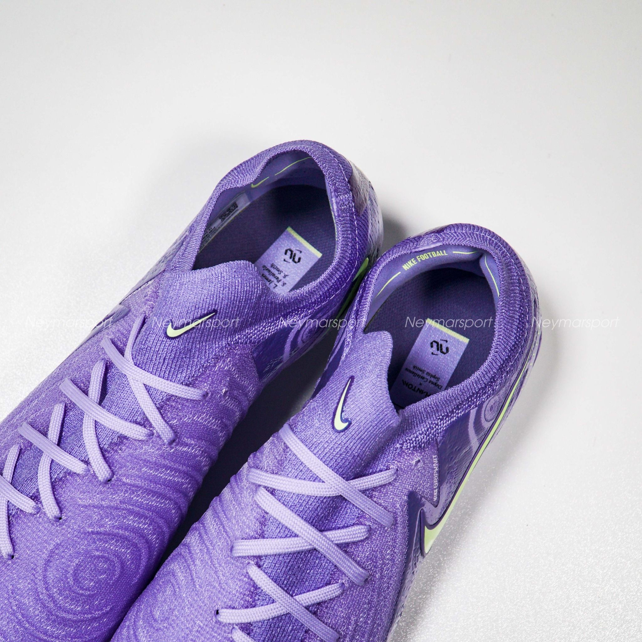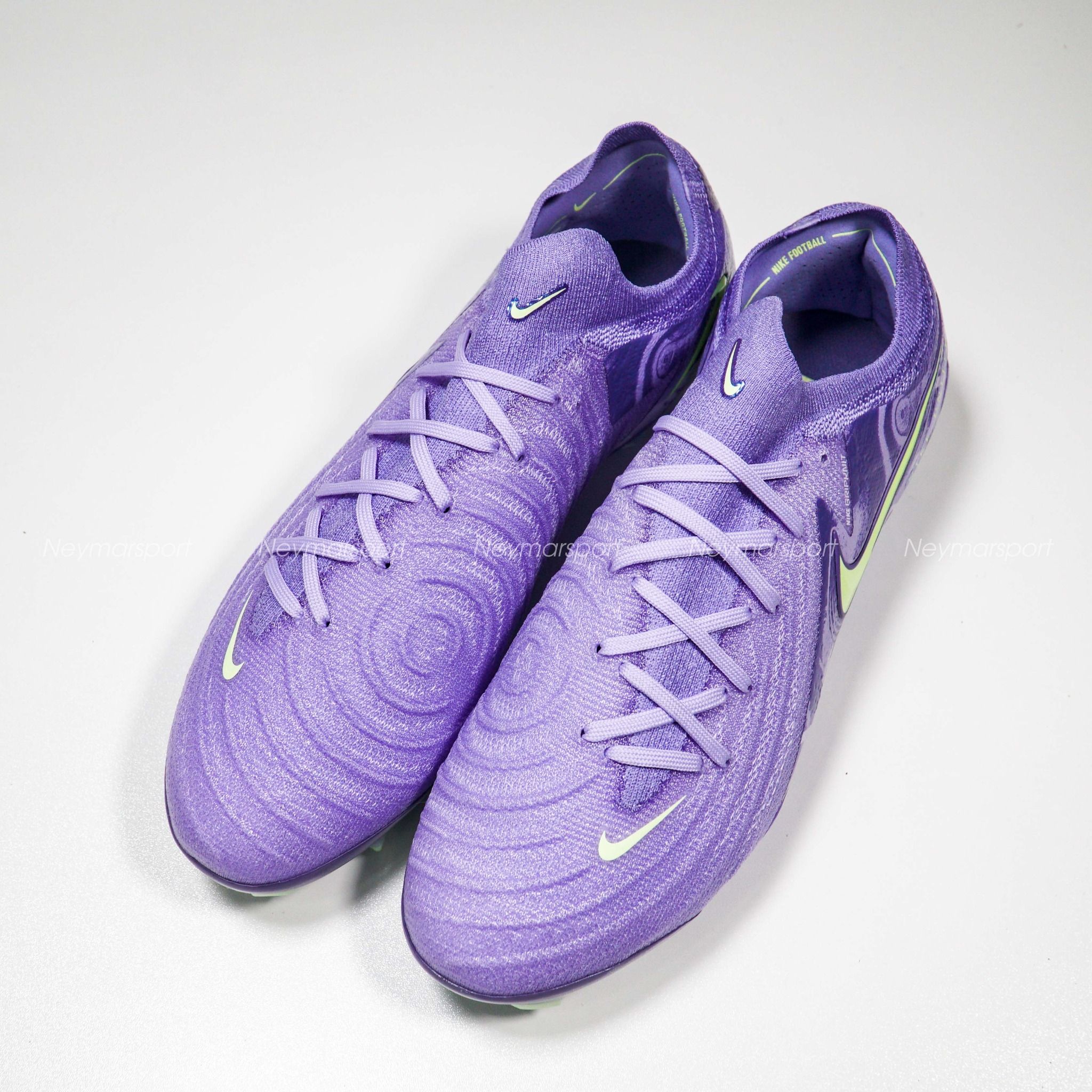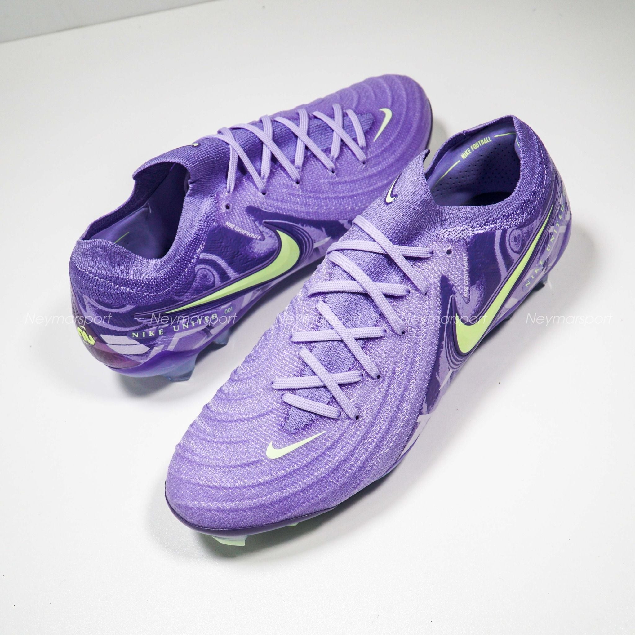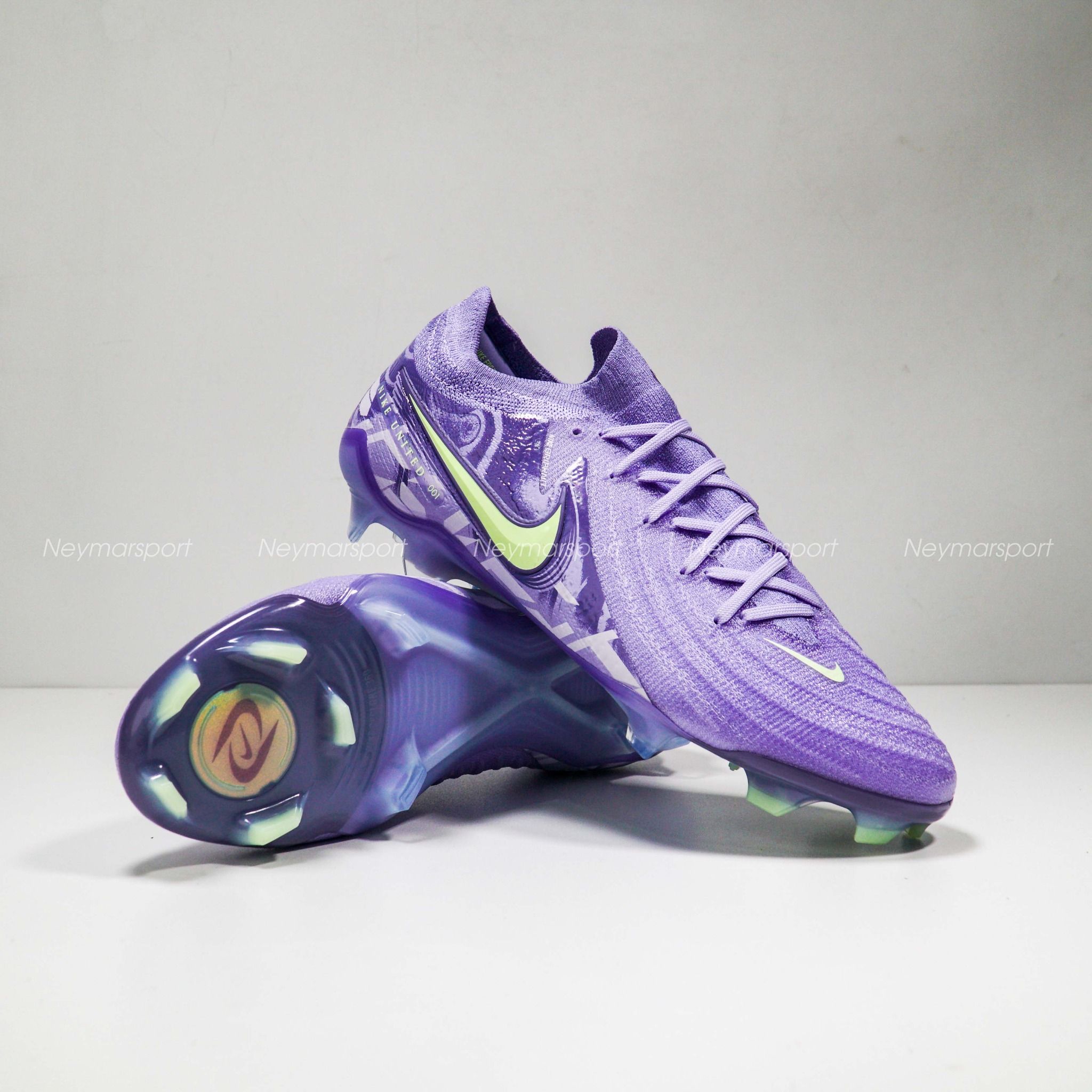 Giày đá bóng Nike Phantom GX II Elite FG United - Purple Agate/Barely Volt HF1597-5000 là phiên bản cao cấp dành chuyên cho sân cỏ tự nhiên 11 người. khoác lên mình gam màu "Purple Agate/Barely Volt" (tím oải hương/xanh volt nhạt) đầy ấn tượng trên cả ba dòng giày. Sắc tím oải hương chủ đạo kết hợp cùng các điểm nhấn xanh volt tạo nên một tổng thể hài hòa, phản ánh nguồn năng lượng mạnh mẽ của bóng đá nữ. Chi tiết dòng chữ "Nike United" màu xanh volt nổi bật trên thân giày càng làm tăng thêm sức hút cho thiết kế. Biểu tượng Swoosh đặc trưng của Nike cũng được phóng to, thể hiện sự đoàn kết và nâng đỡ lẫn nhau của phái nữ.