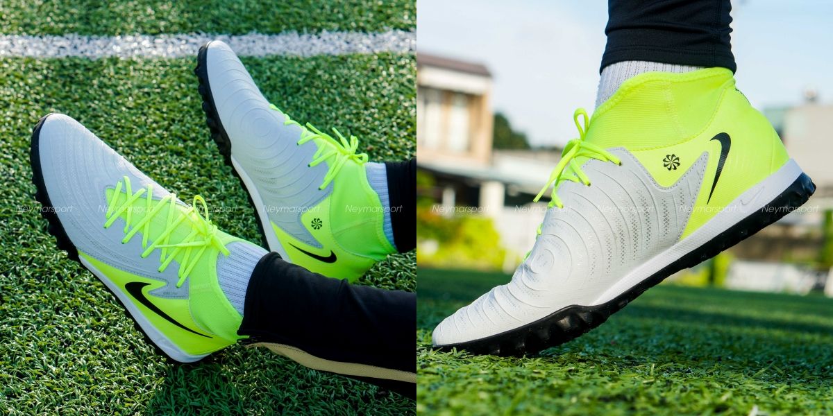 Giày đá bóng Nike Phantom Luna II Academy TF Mad Voltage - Metallic Silver/Black/Volt FJ2566-003 là mẫu giày phổ thông dành cho sân cỏ nhân tạo 5-7 người. Màu bạc được sử dụng ở phần mũi giày nhằm làm nổi bật phần upper xoắn ốc, trong khi gót giày được bao phủ bằng màu vàng volt đầy năng lượng giúp tạo nên điểm nhấn nổi bật. Và cuối cùng, logo Swoosh với sắc đen tương phản càng làm đôi giày thêm ấn tượng.