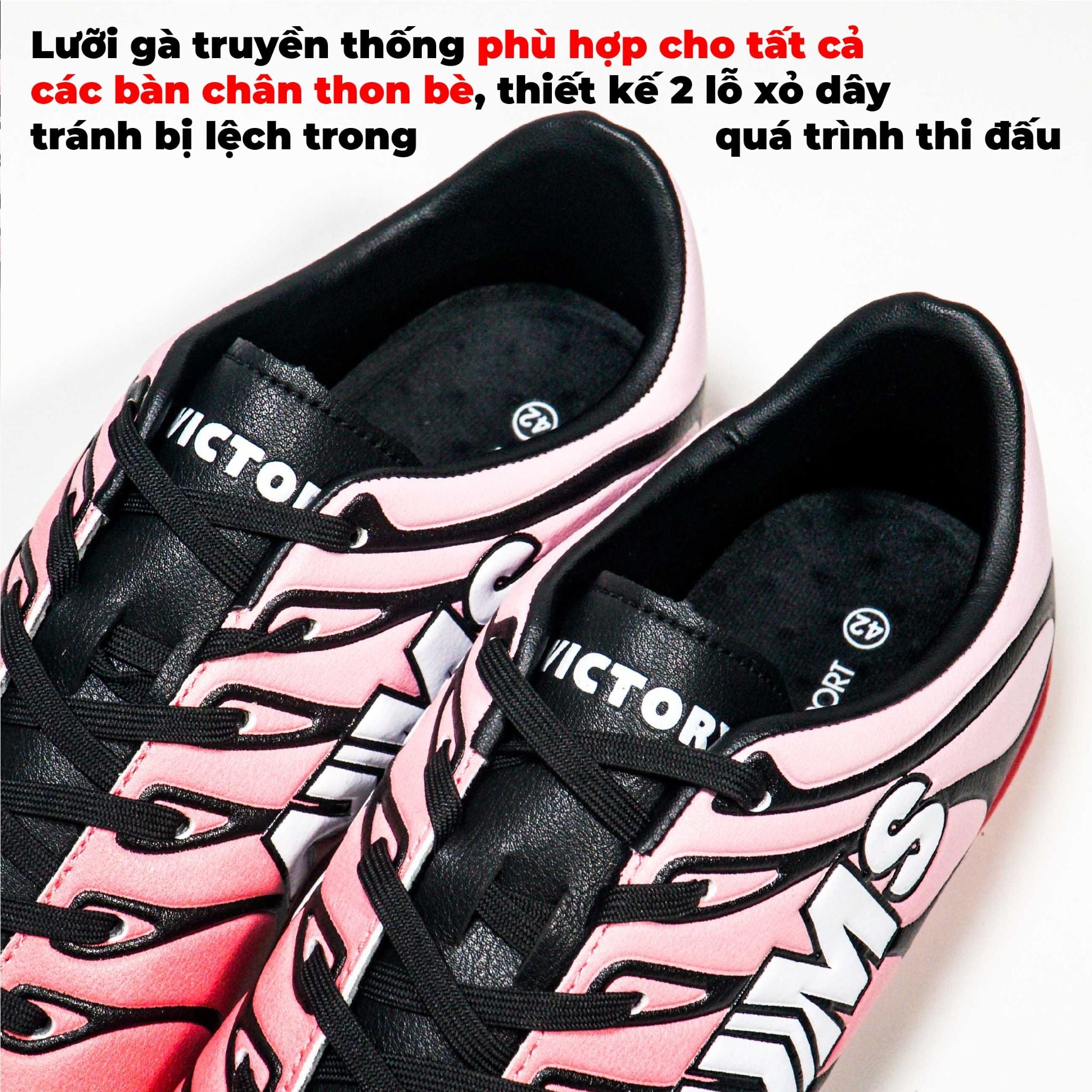 - Lưỡi gà truyền thống phù hợp cho tất cả các bàn chân thon bè, thiết kế 2 lỗ xỏ dây tránh bị lệch trong quá trình thi đấu (Neymarsport đã thiết kế để NMS VICTORY dễ mang hơn, không bó bề ngang như phiên bản cũ)
