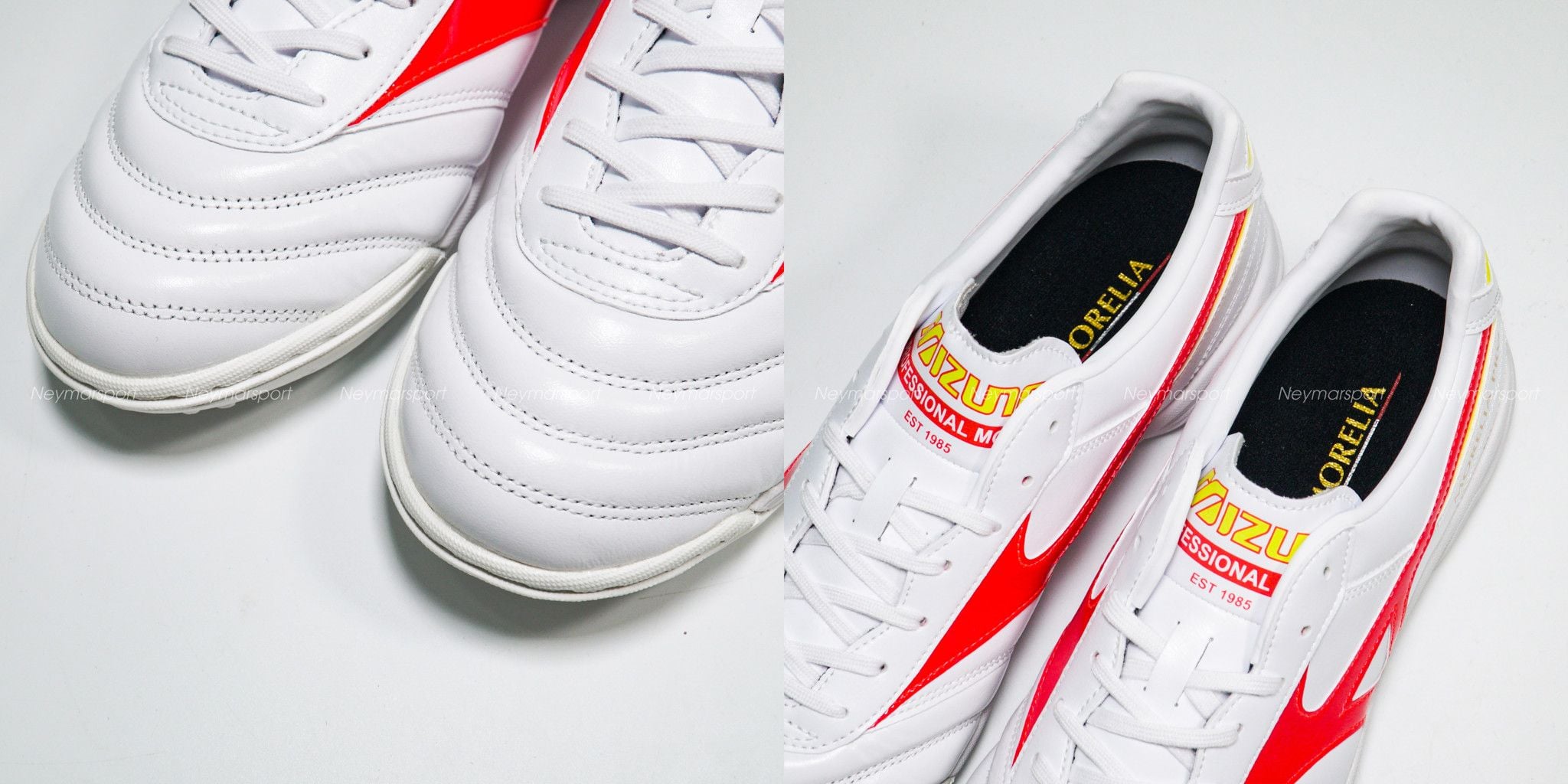 - Chất liệu da Kangaroo siêu mềm đã được Mizuno sử dụng hiệu quả ở phần Upper giày, hỗ trợ tối đa cho các cầu thủ khi nhận bóng, đi bóng, những pha sút mu uy lực và tạo cảm giác như đi chân trần.